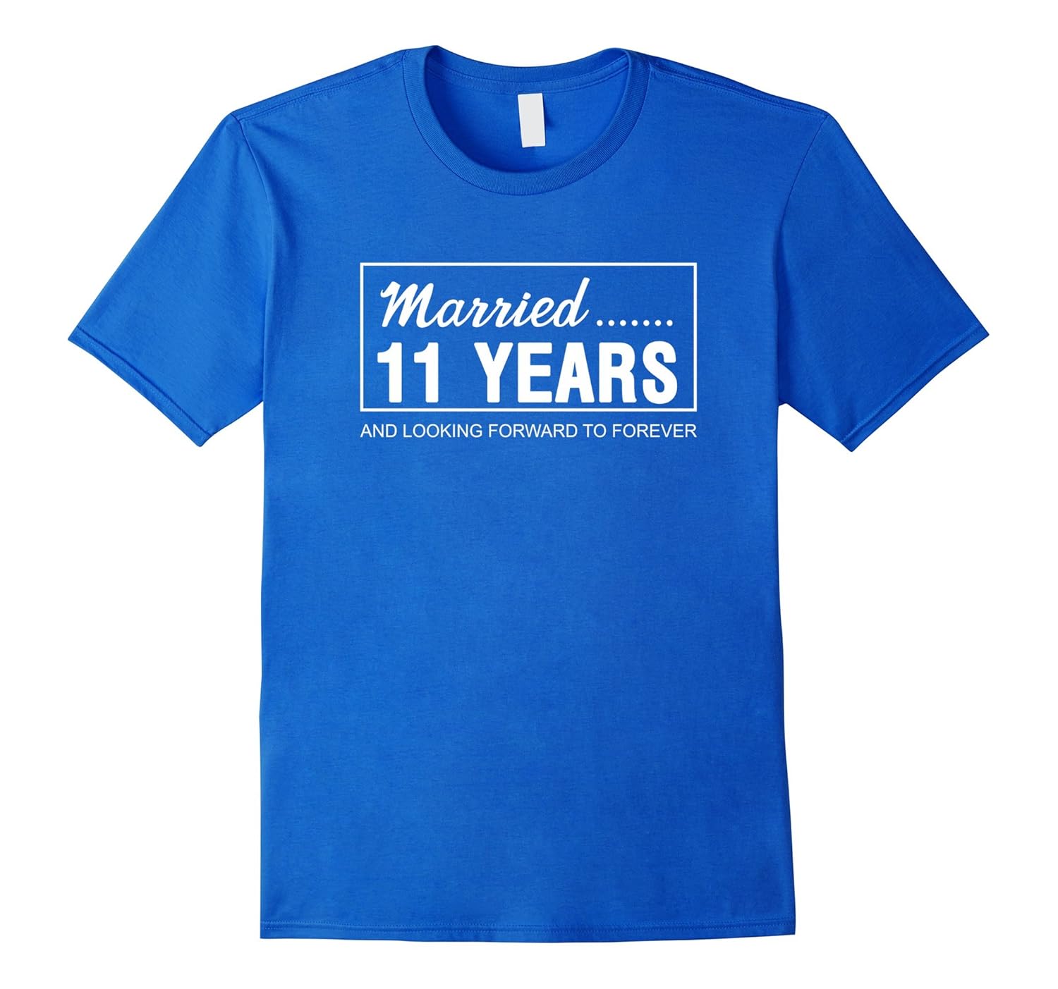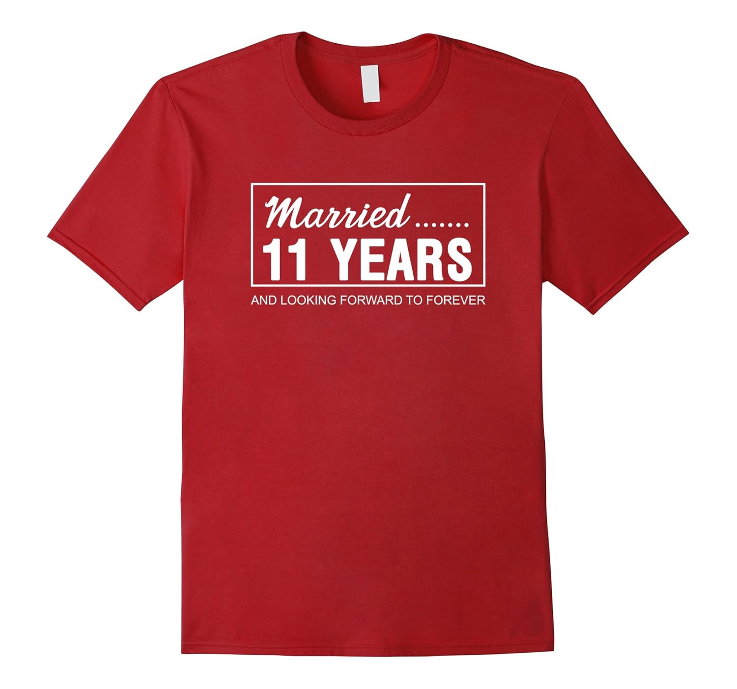 Solid colors: 100% Cotton; Heather Grey: 90% Cotton, 10% Polyester; All Other Heathers: 65% Cotton, 35% Polyester, Imported, Machine wash cold with like colors, dry low heat, Perfect 11th wedding anniversary gift for him, her, or couples. Great wedding anniversary t-shirt gift for celebrating the 11 years of marriage. Every husband or wife will love to wear this 11th wedding anniversary gift t-shirt on the 11th anniversary. This 11th wedding anniversary t-shirt says, Married 11 Years and Looking Forward to Forever. Great 11 years of marriage gifts idea for a husband, wife, or couples paper year anniversary, Christmas, or birthday. Lightweight, Classic fit, Double-needle sleeve and bottom hem