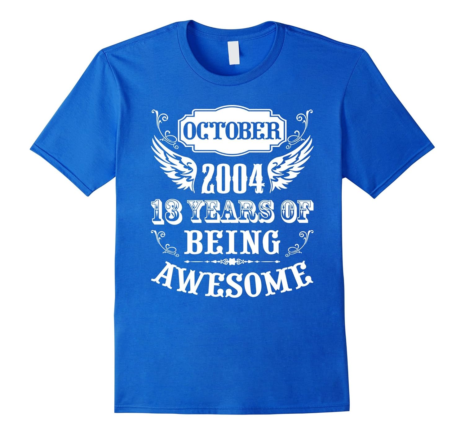 Solid colors: 100% Cotton; Heather Grey: 90% Cotton, 10% Polyester; All Other Heathers: 65% Cotton, 35% Polyester, Imported, Machine wash cold with like colors, dry low heat, October 2004 13 Years of being Awesome Funny Birthday T-shirt is a Perfect shirt for young girls at age of 13 and for boys too. Cool and funny vintage college sports school style t-shirt design for teens and ideal as a present for thirteen year olds. This clothes make a perfect gift tee for all teens born in 2004 it is a great Thirteenth birthday gift tee shirt for boys and for girls so make a happy birthday for your son or daughter with one of these tees and celebrate their 13th birthday party with t, Lightweight, Classic fit, Double-needle sleeve and bottom hem