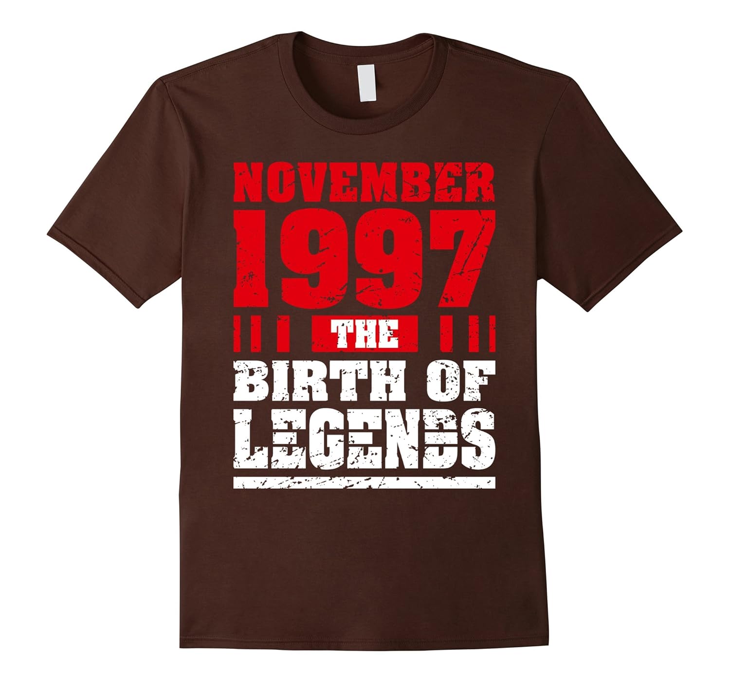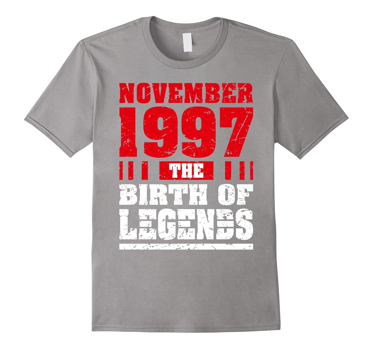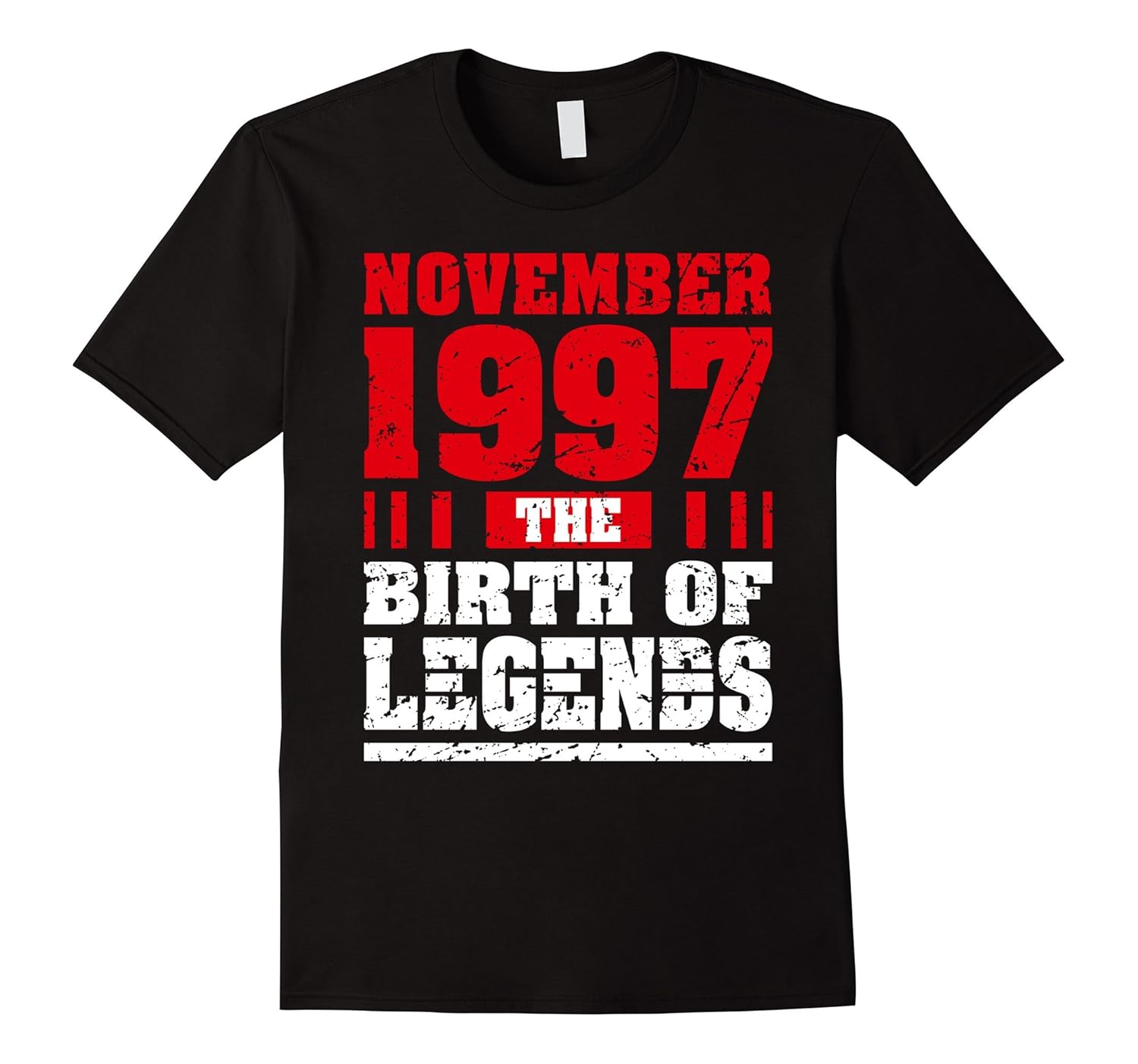 Solid colors: 100% Cotton; Heather Grey: 90% Cotton, 10% Polyester; All Other Heathers: 65% Cotton, 35% Polyester, Imported, Machine wash cold with like colors, dry low heat, Look for a cute gift for your 20-year-old men or woman who is 20 years of being awesome and is an adult totally awesome since November 1997 also as well aged then this cool and also one of the best vintage t-shirts for an adult born in November 97 . Cool addition present for birthday for him and for her age of 20 established November 1997 The Birth of Legends T Shirt with an awesome distressed graphics as for adults men and for women born in 1997 in November for sons and daughters b-day. Lightweight, Classic fit, Double-needle sleeve and bottom hem
