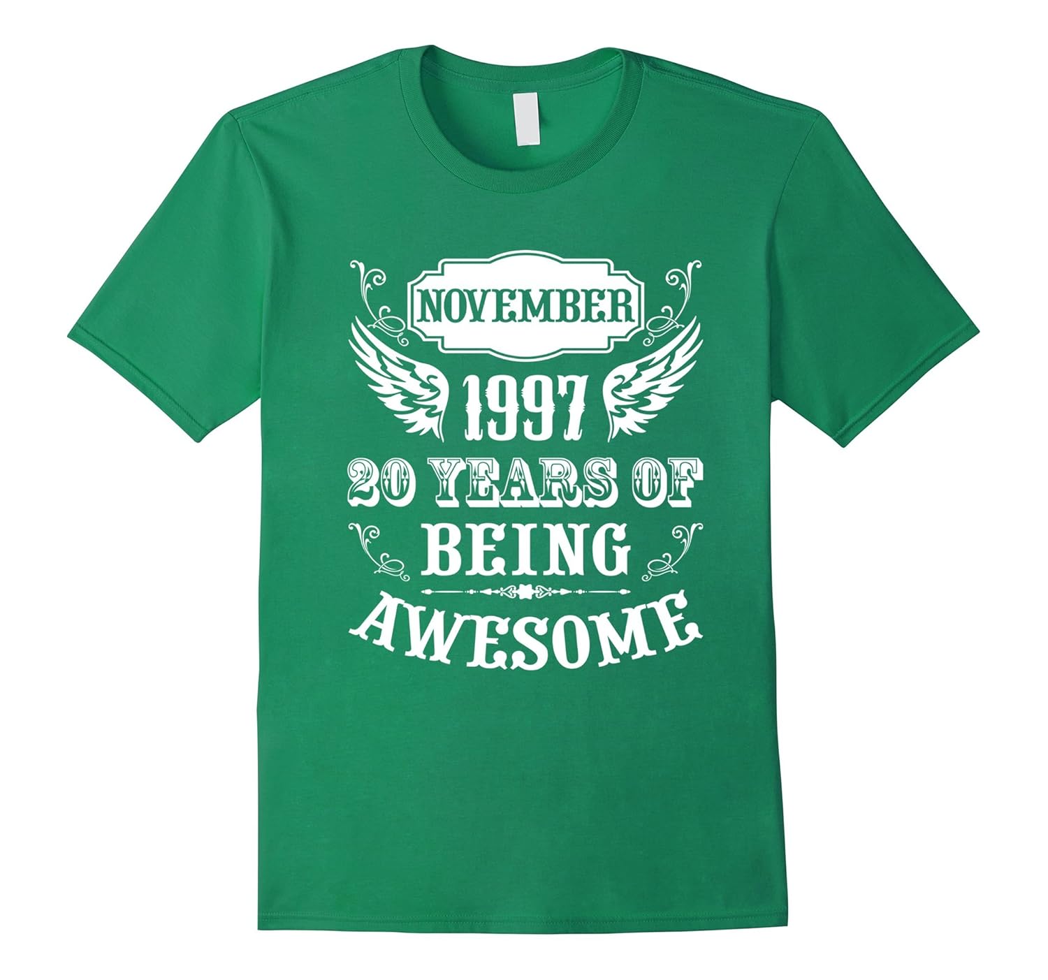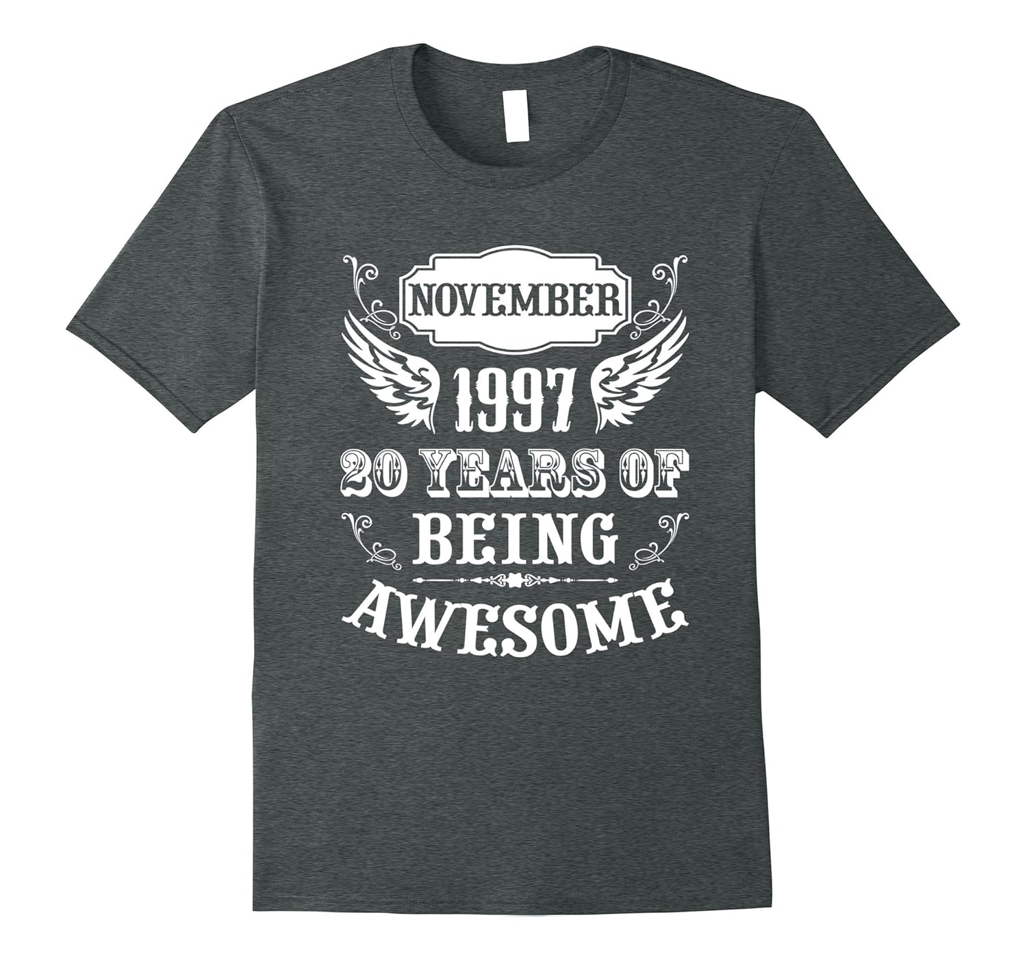 Solid colors: 100% Cotton; Heather Grey: 90% Cotton, 10% Polyester; All Other Heathers: 65% Cotton, 35% Polyester, Imported, Machine wash cold with like colors, dry low heat, November 1997 20 Years Of Being Awesome shirt is perfect for 20th Birthday Gift for a boy or a girl an official adult Age Of 20 Year Old man woman T Shirt and is one of the best 20th anniversary gifts for her and him. November 1997 Funny Birthday T-shirt is awesome shirt for young girls and also boys at age of 20 because of a cool and funny vintage style t-shirt design for adults ideal as a present for twenty year olds as birthday gifts for women and for men. Lightweight, Classic fit, Double-needle sleeve and bottom hem
