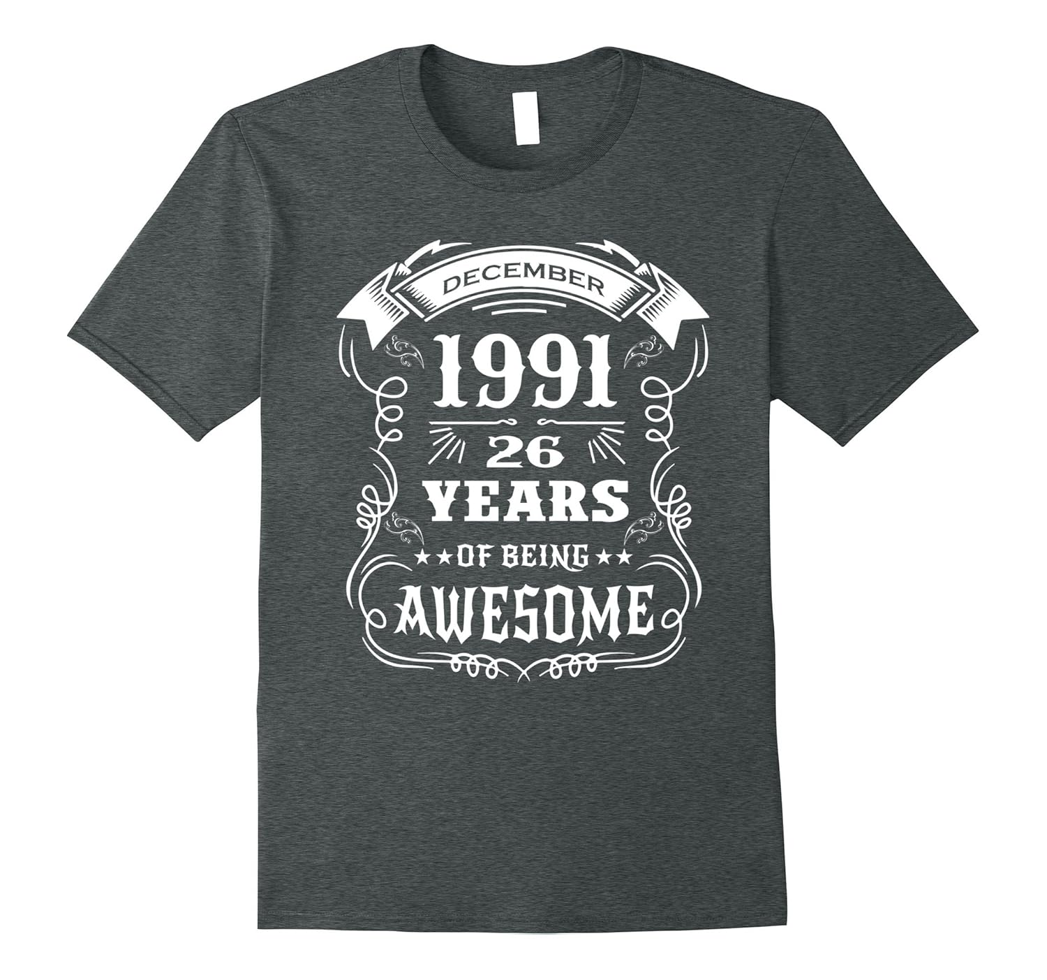 Solid colors: 100% Cotton; Heather Grey: 90% Cotton, 10% Polyester; All Other Heathers: 65% Cotton, 35% Polyester, Imported, Machine wash cold with like colors, dry low heat, This shirt is perfect gift for friends family member in their birthday party, Funny shirt for 26 years old, 26th birthday gifts for women, Great 26th birthday gift, 26th birthday gift ideas, classic vintage since 1991, original since 1991, Born in December 1991 26 years of being awesome, December Birthday Gift, Birthday Gift For Mother And Father, Gift For Grandma, Gift For Grandpa, Geek Tshirt, Nerd Tshirt, Funny Christmas Gift Tshirt, great holiday shirt, thanksgiving, made in 1991, Lightweight, Classic fit, Double-needle sleeve and bottom hem