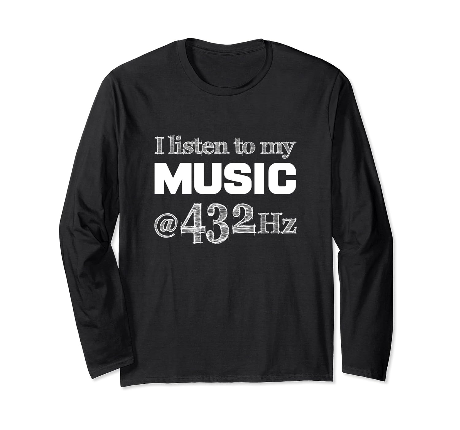 Solid colors: 100% Cotton; Heather Grey: 90% Cotton, 10% Polyester; All Other Heathers: 50% Cotton, 50% Polyester; Imported; Machine wash cold with like colors, dry low heat; This fun: I Listen to my music at 432 Hz long sleeve shirt will resonate with anyone who knows the power of sound for healing and deep meditation at this frequency. Its the sound of om!; If you have a Tibetan Chakra Crystal Singing Bowl or listen to a relaxing music CD via headphones, youll love this shirt. The 432 hertz vibration can help with sleep and relaxation like a therapeutic tuner on our brainwaves and DNA!; Lightweight, Classic fit, Double-needle sleeve and bottom hem