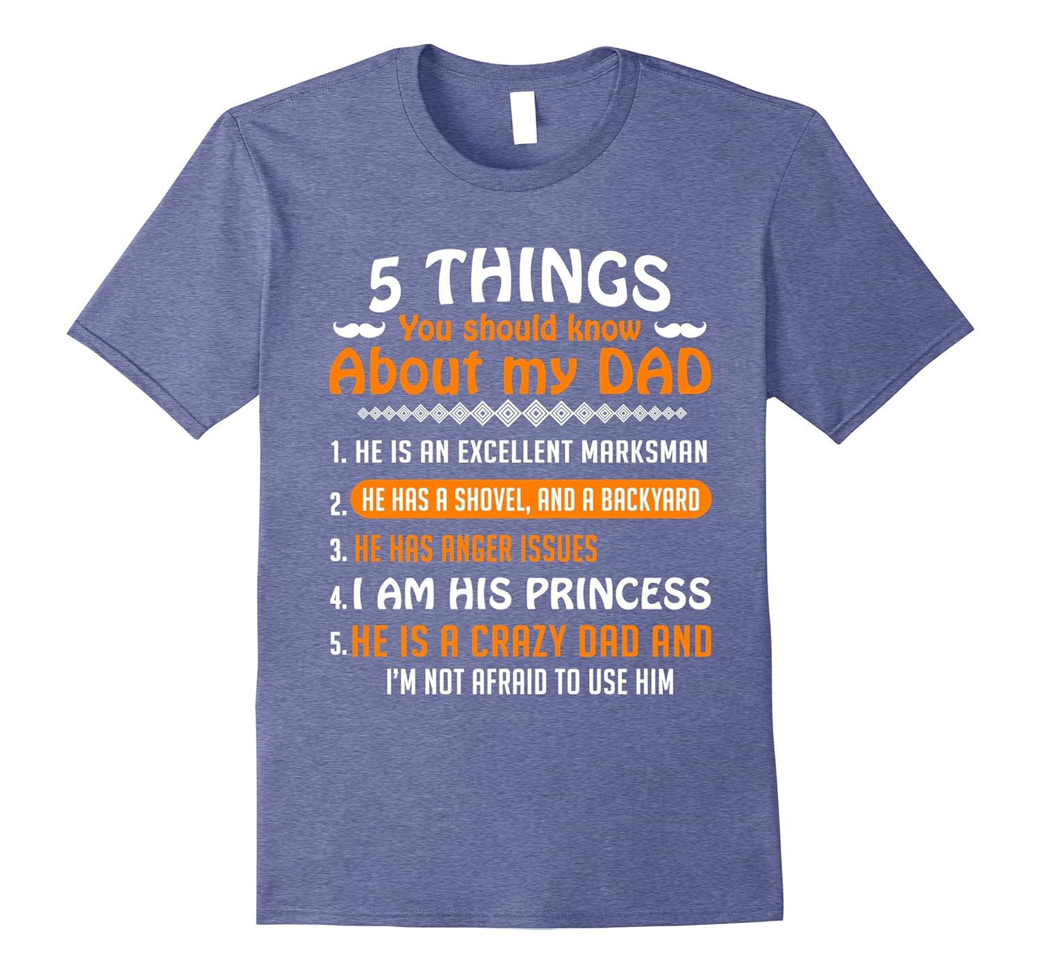 Solid colors: 100% Cotton; Heather Grey: 90% Cotton, 10% Polyester; All Other Heathers: 65% Cotton, 35% Polyester, Imported, Machine wash cold with like colors, dry low heat, 5 Things You Should Know about My Dad T Shirt Funny Gifts idea, Gifts idea for your daughter, son, sisters, granddaughter, members family… Lightweight, Classic fit, Double-needle sleeve and bottom hem