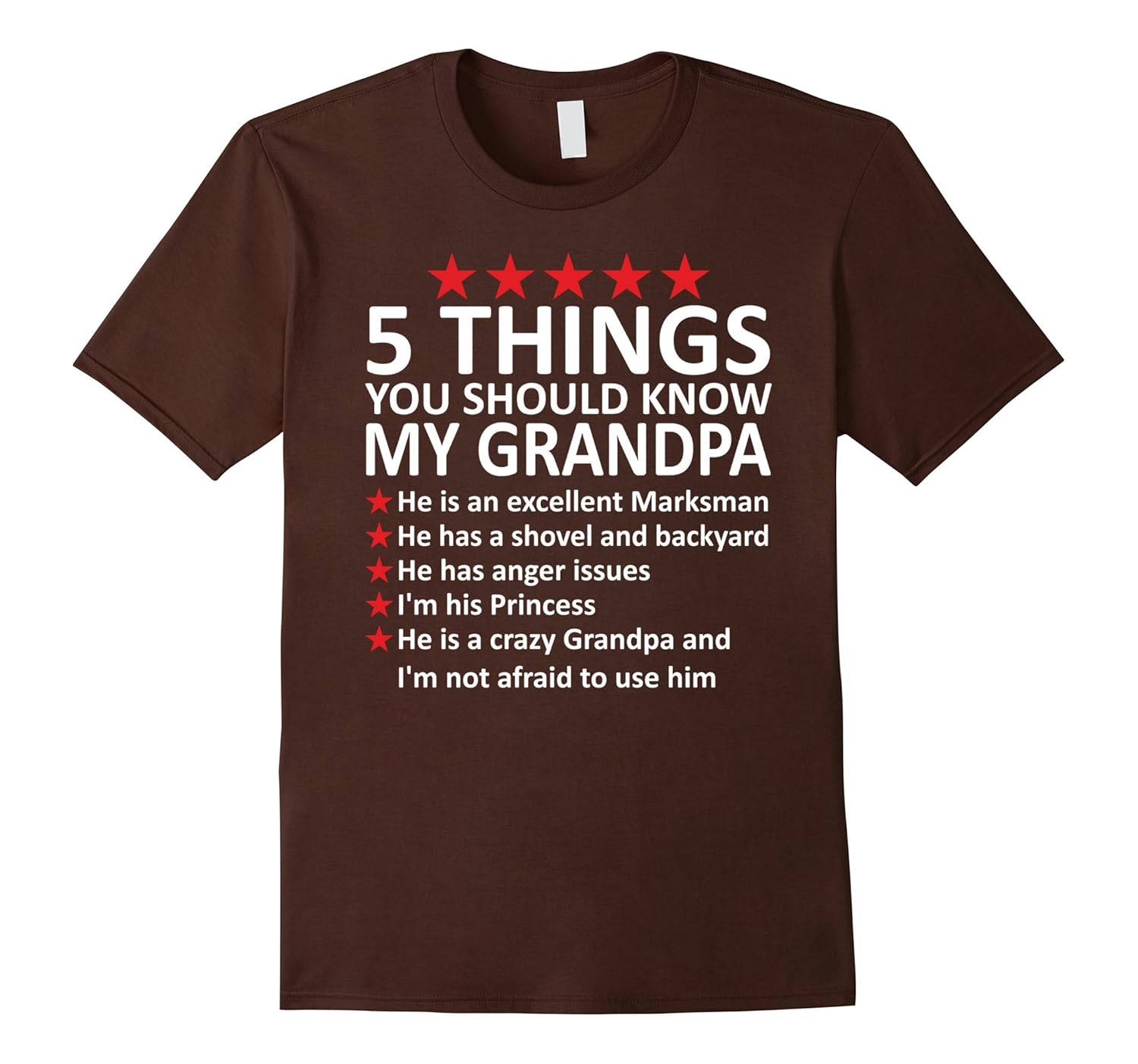 Solid colors: 100% Cotton; Heather Grey: 90% Cotton, 10% Polyester; All Other Heathers: 65% Cotton, 35% Polyester, Imported, Machine wash cold with like colors, dry low heat, Funny 5 things you should know about my grandpa tee shirts, Lightweight, Classic fit, Double-needle sleeve and bottom hem