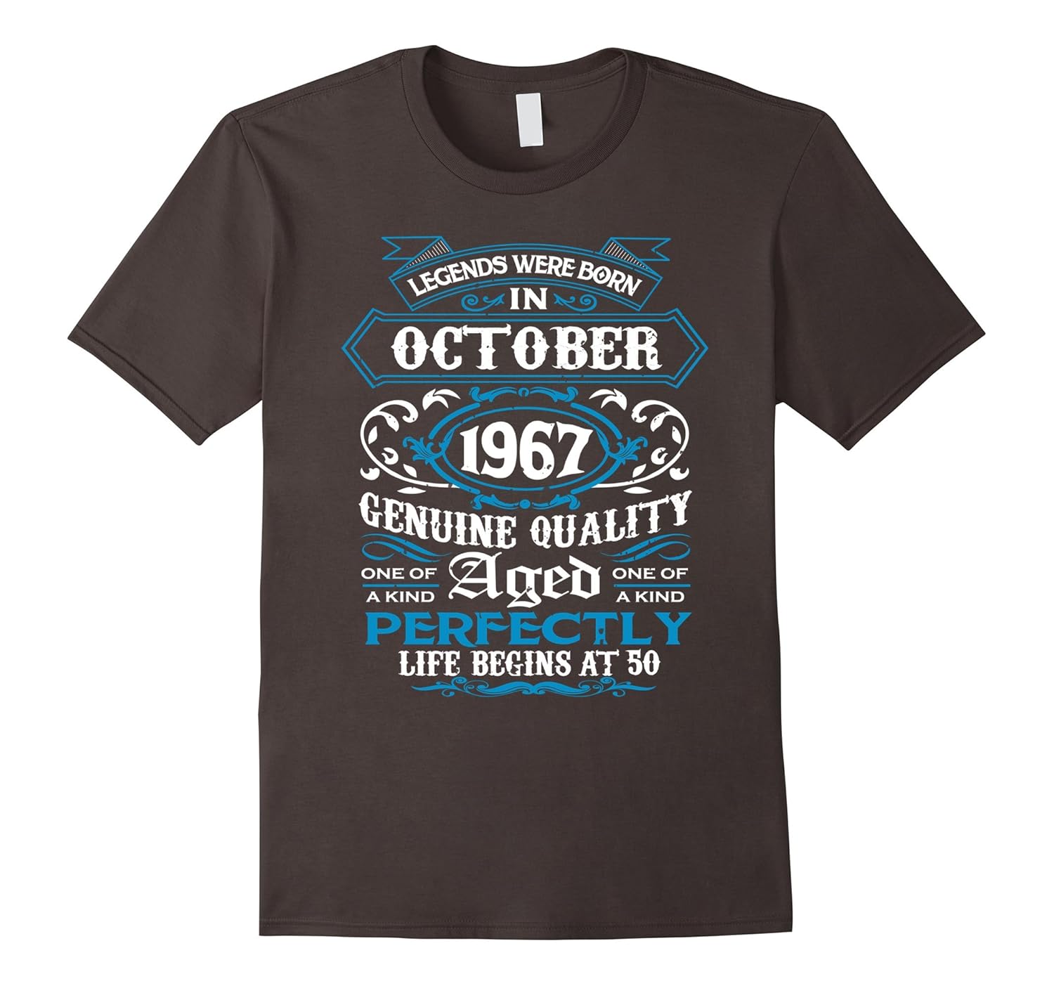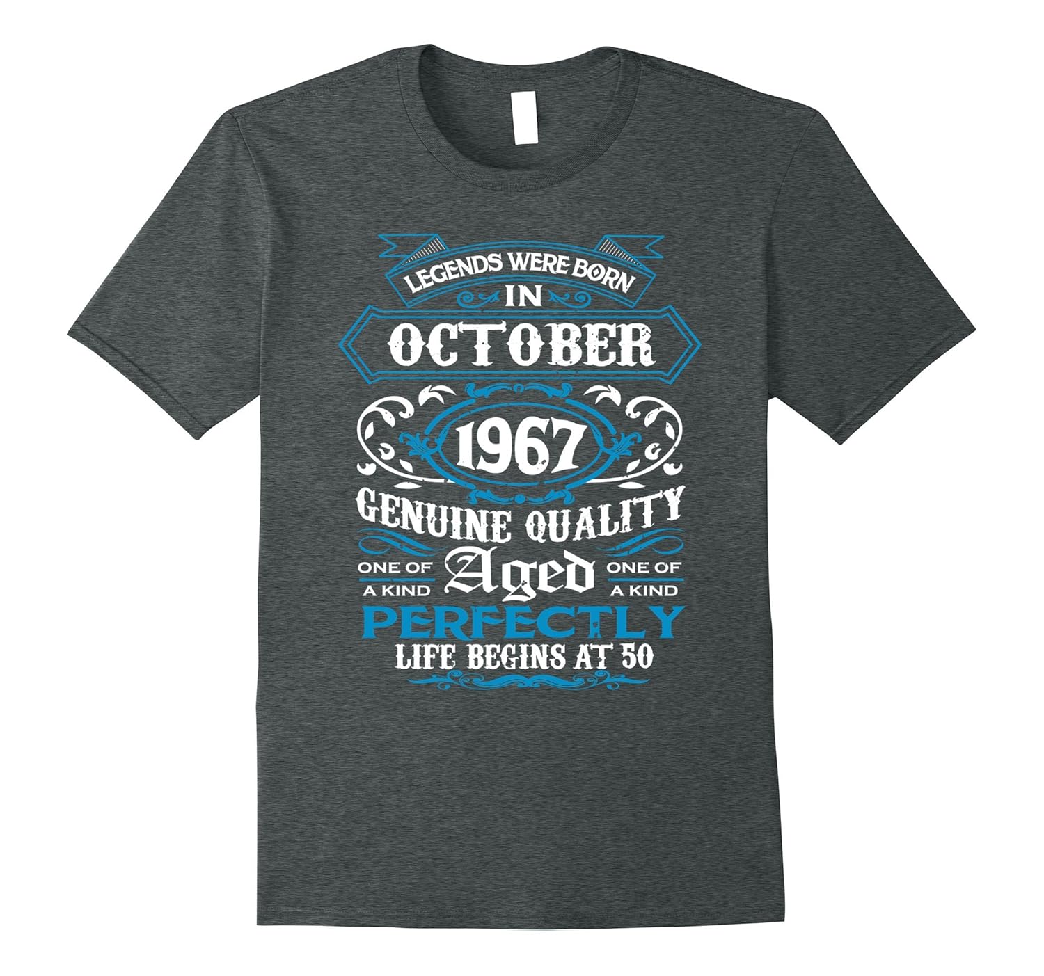 Solid colors: 100% Cotton; Heather Grey: 90% Cotton, 10% Polyester; All Other Heathers: 65% Cotton, 35% Polyester, Imported, Machine wash cold with like colors, dry low heat, Legends Were Born in October Shirt for Men and Women. 50th Birthday Gift Aged Perfectly T-Shirt. Makes a perfect gift for him or her. Birthday gift idea for people born in October, 1967 or anyone who is turning 50 years old, vintage style graphic tee. Perfect for a birthday party. Lightweight, Classic fit, Double-needle sleeve and bottom hem