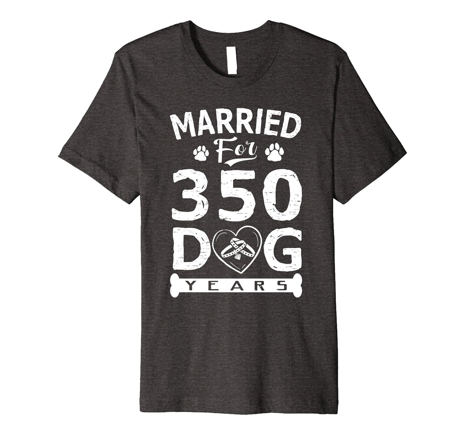 Solid colors: 100% Cotton; Heather Grey: 90% Cotton, 10% Polyester; All Other Heathers: 58% Cotton, 42% Polyester; Imported; Machine wash cold with like colors, dry low heat; An awesome Mr Andamp; Mrs marriage tee for couples that read Married For 350 Dog Years in vintage distressed style decorated with collars inside a heart shape! If youre still happy married to him or her 50 years later, get this sarcastic tshirt now!; Fit: Slim (consider ordering a larger size for a looser fit); The best birthday present, a fun Christmas or a great 50th wedding anniversary celebration gift idea for your amazing husband, wife, mom or dad! A funny graphic outfit that dog lovers will love! Be sure to get matching outfits for your lovely partner!; This premium t-shirt is made of lightweight fine jersey fabric
