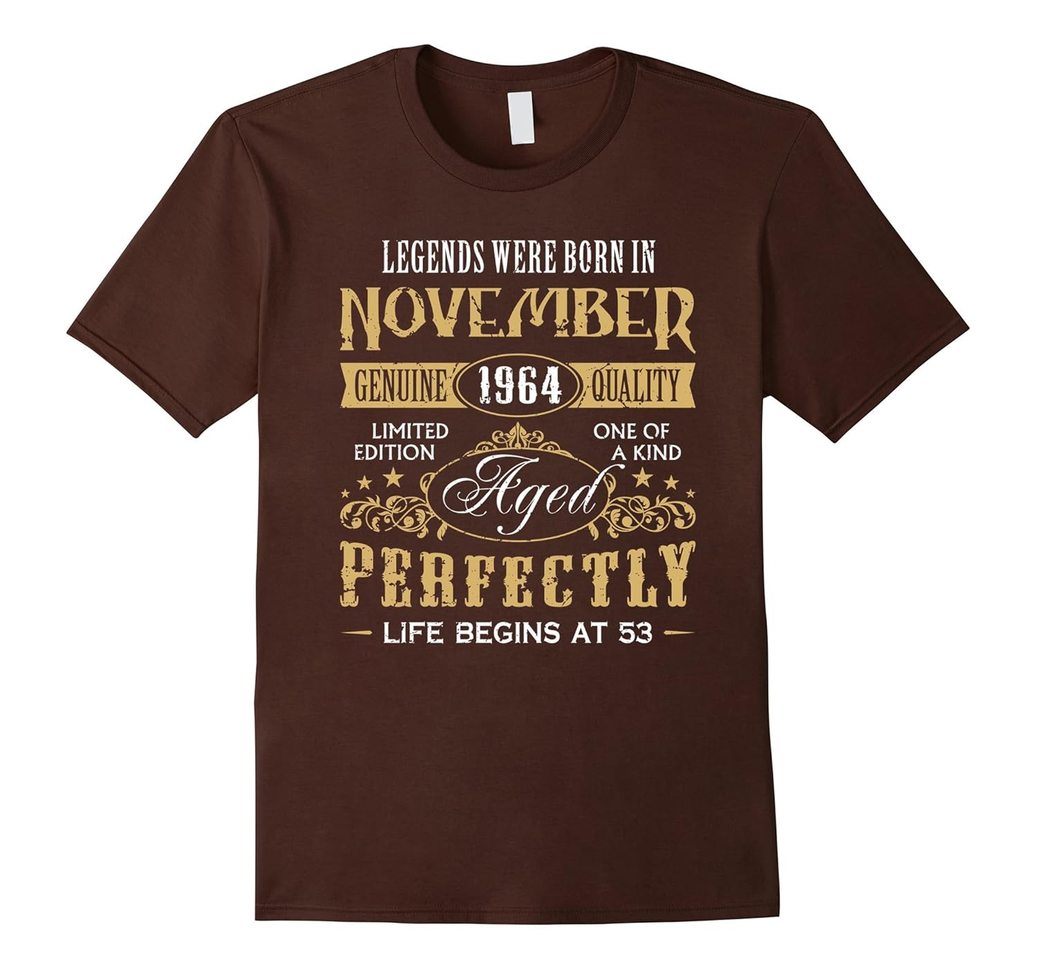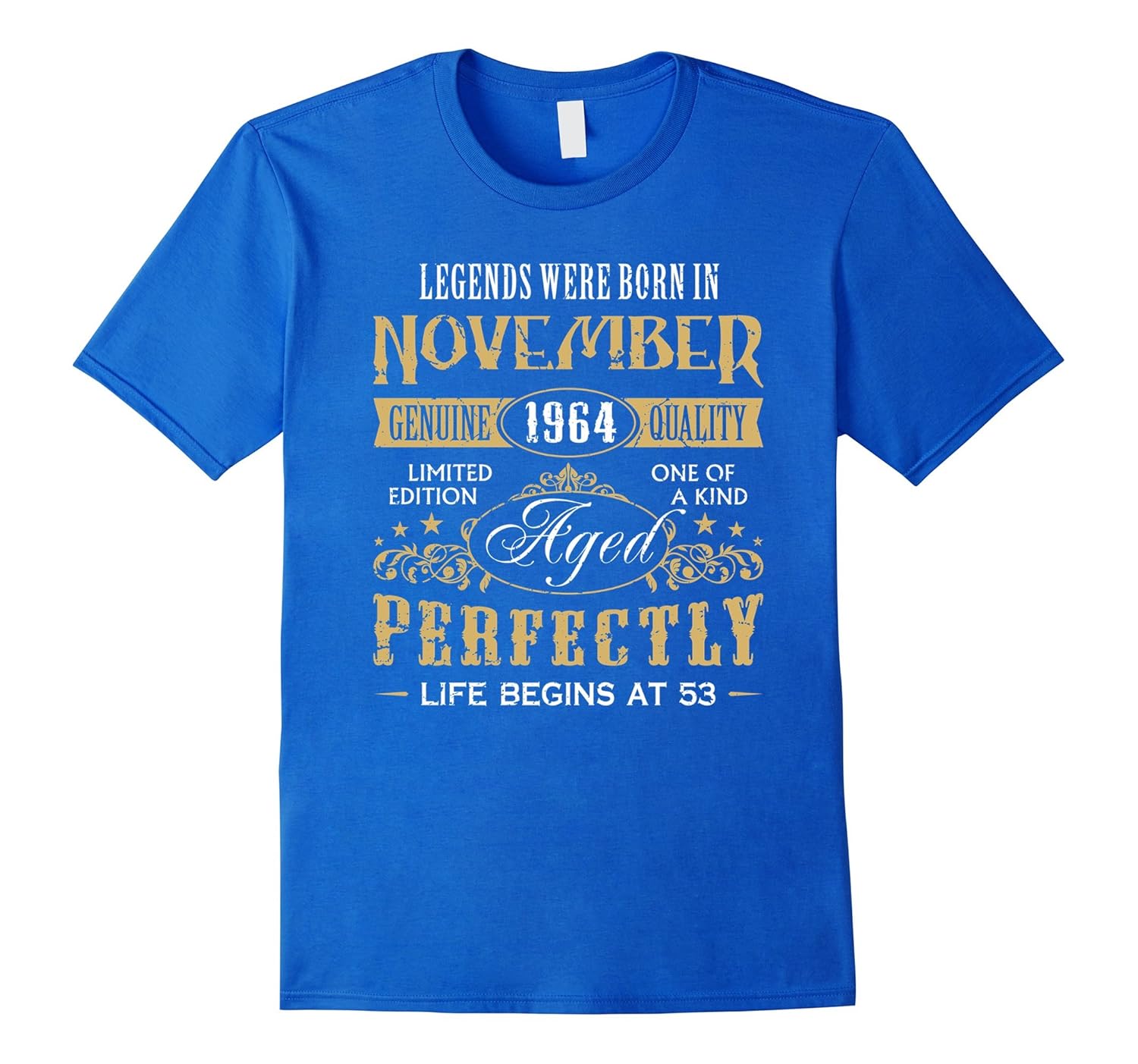 Solid colors: 100% Cotton; Heather Grey: 90% Cotton, 10% Polyester; All Other Heathers: 65% Cotton, 35% Polyester, Imported, Machine wash cold with like colors, dry low heat, November original design by YAKS that is featuring November 1964 made in a vintage style for adults with very nice and cool saying on the shirt what makes a perfect gift for fifty three years old in November for 53rd birthday party for men and women. An awesome b-day gift for adults made in 1964 November Aged Perfectly Limited Edition novelty tee shirt is a perfect birthday gift for him her someone special turning 53 years old fifty three-year-old man or a woman in November for mom and for dad. Lightweight, Classic fit, Double-needle sleeve and bottom hem