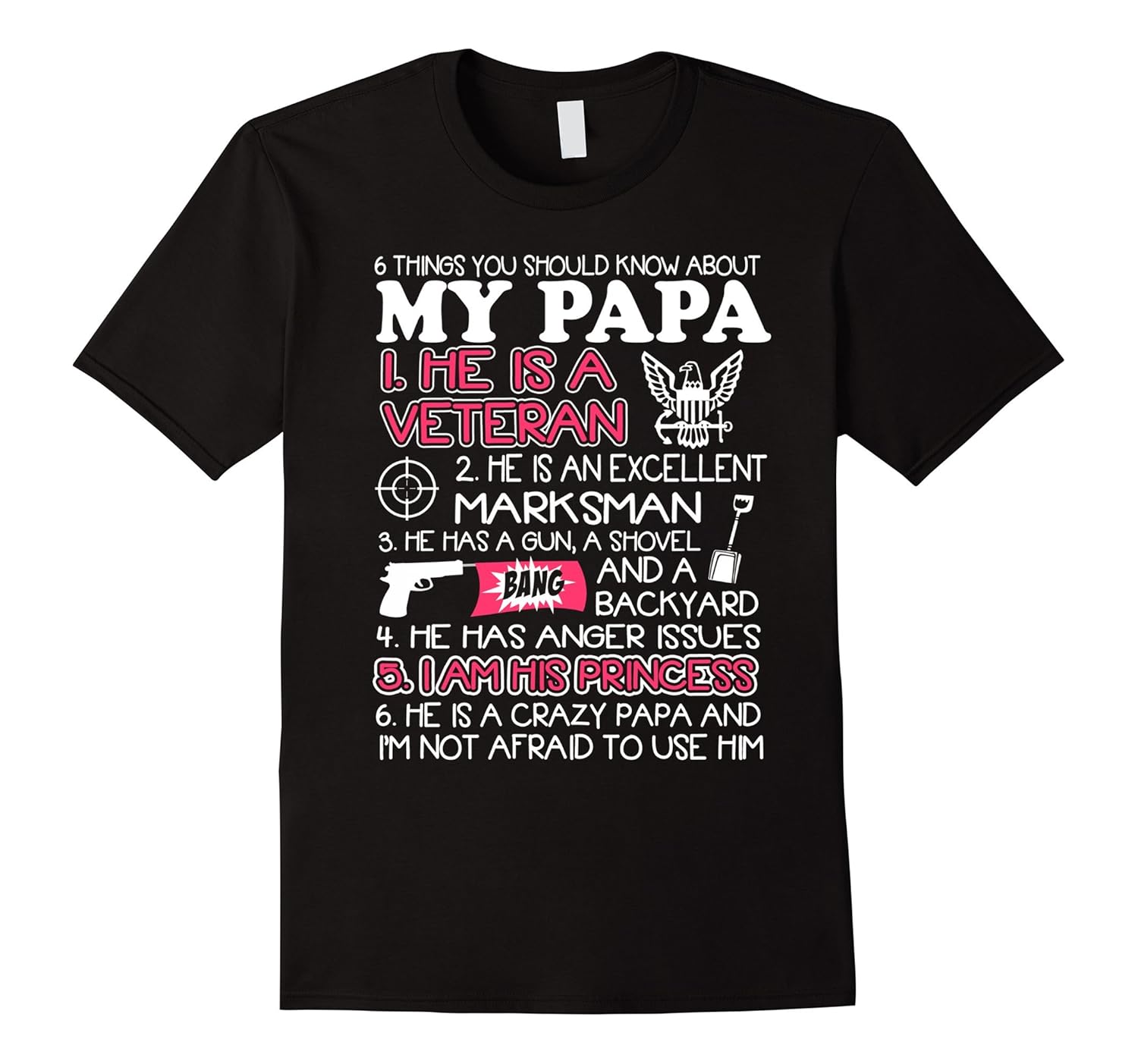 Solid colors: 100% Cotton; Heather Grey: 90% Cotton, 10% Polyester; All Other Heathers: 65% Cotton, 35% Polyester, Imported, Machine wash cold with like colors, dry low heat, 6 Things You Should Know About My Papa, He Is A Retired Veteran I Am His Princess. He is a crazy Papa and I”m not afraid to use him. Perfect gift form Granddaughter for Papa, Grandpa for Christmas, Anniversaries, Father”s Day, Birthday. Lightweight, Classic fit, Double-needle sleeve and bottom hem