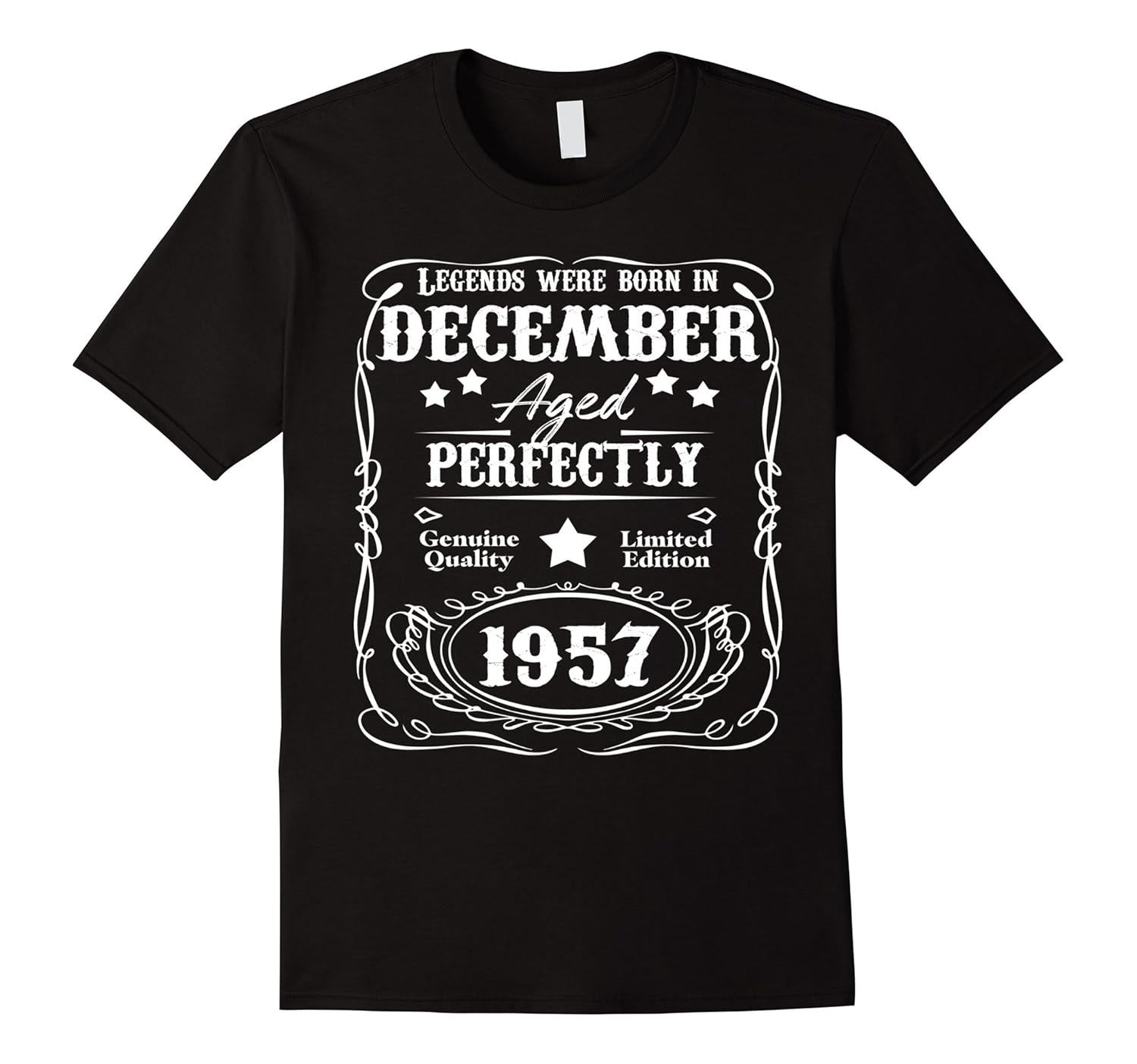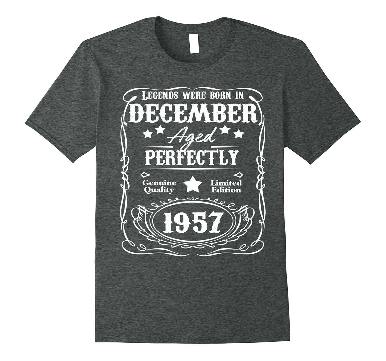 Solid colors: 100% Cotton; Heather Grey: 90% Cotton, 10% Polyester; All Other Heathers: 65% Cotton, 35% Polyester, Imported, Machine wash cold with like colors, dry low heat, Legends Were Born In December 1957 Shirt 60th Birthday. Great Gift for the 60th Birthday in December! For men and woman who was born in December 1957. Aged perfectly, genuine Quality, limited edition. December 1957 aged perfectly shirt t-shirt for the 60th Birthday bday as a present or gift! For all Dads, mums, Dad, mum, father or grandpa!, Lightweight, Classic fit, Double-needle sleeve and bottom hem