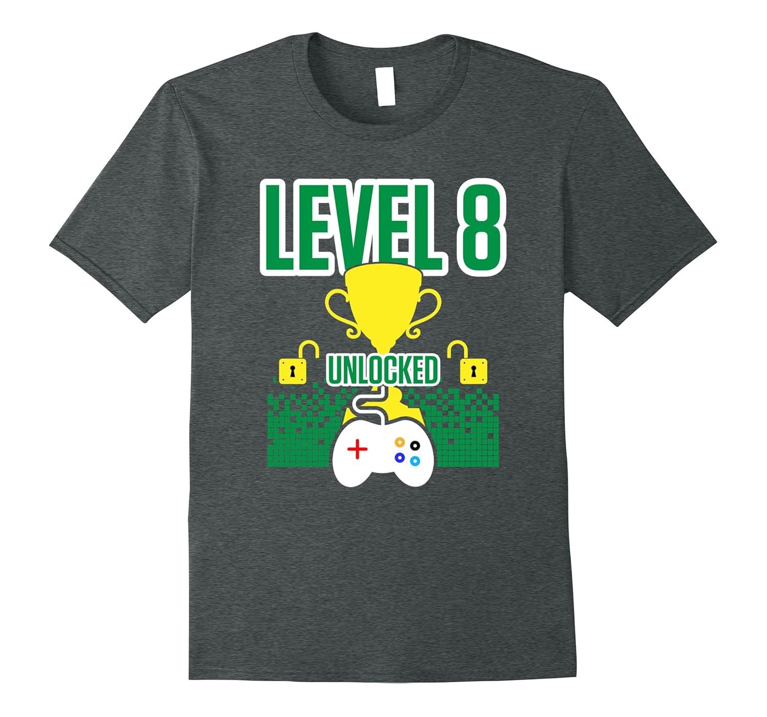 Solid colors: 100% Cotton; Heather Grey: 90% Cotton, 10% Polyester; All Other Heathers: 65% Cotton, 35% Polyester, Imported, Machine wash cold with like colors, dry low heat, If you have a hard core gamer about to turn 8 years old, they will love this LEVEL 8 UNLOCKED gaming t-shirt! Leveling up and turning 8 years old is an achievement unlocked, so get high score in giving gamer gifts with this 8 year old birthday shirt!, This LEVEL 8 UNLOCKED shirt is sized to be FITTED. For a LOOSER FIT, please order one size larger than normal. Gaming t-shirts are the perfect gift for video game players, and this 8 year old gamer birthday shirt will be a hit with any eight year old!, Lightweight, Classic fit, Double-needle sleeve and bottom hem