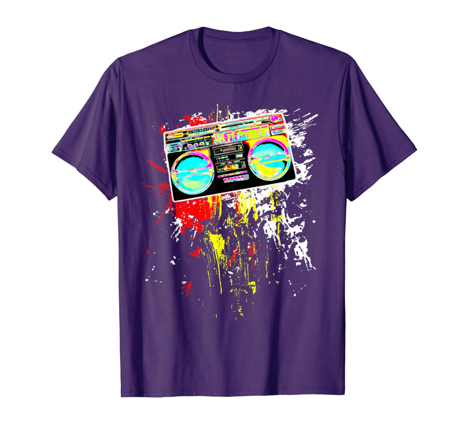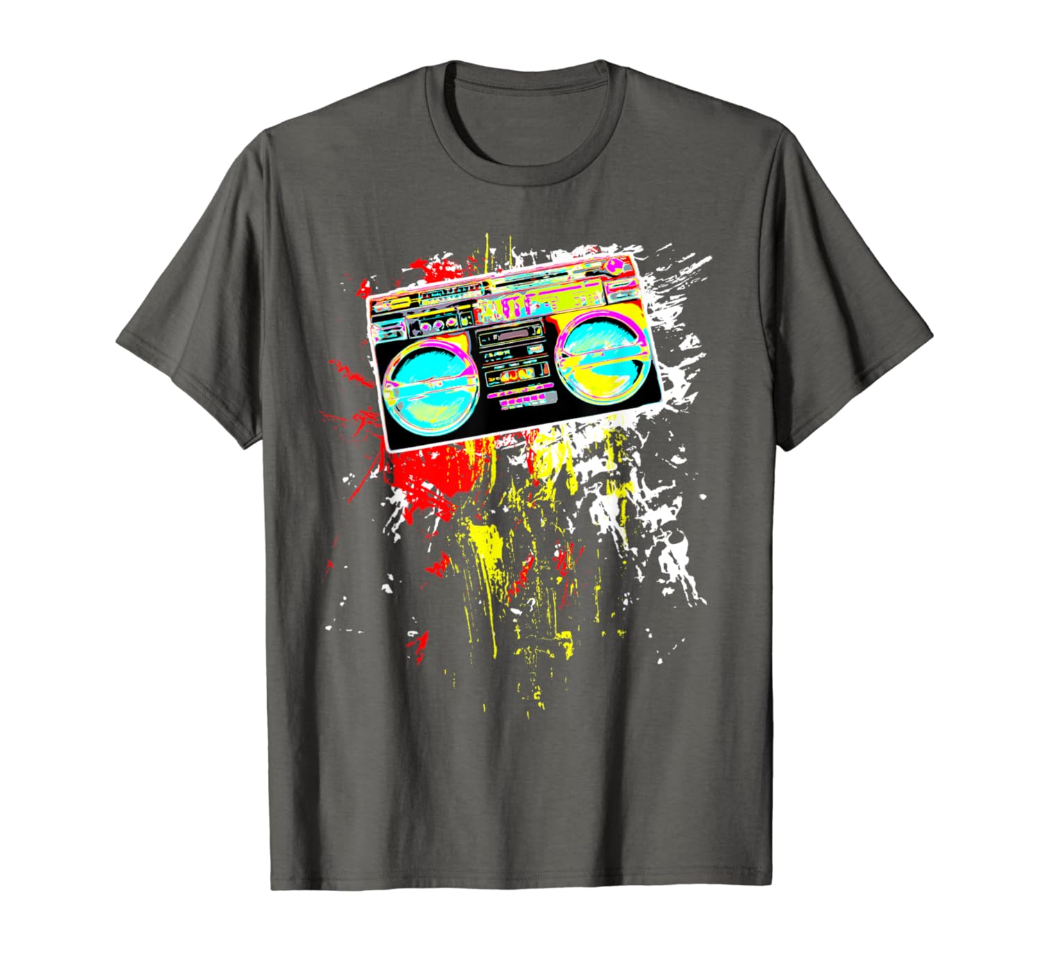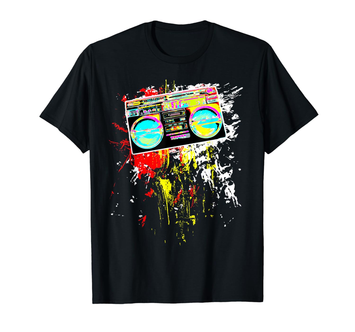 Solid colors: 100% Cotton; Heather Grey: 90% Cotton, 10% Polyester; All Other Heathers: 50% Cotton, 50% Polyester; Imported; Machine wash cold with like colors, dry low heat; Boombox Retro sounds pump through these speakers filling the streets with OG rap, hip hop, rock, or whatever felt funky at the time in America or Europe. Honor the retro styles in this throwback T-shirt.; 80s 90s dance, breakdance, or rap battles all had the iconic BOOM BOX in the mix. Party like its 1988 in this abstract work of art.; Lightweight, Classic fit, Double-needle sleeve and bottom hem