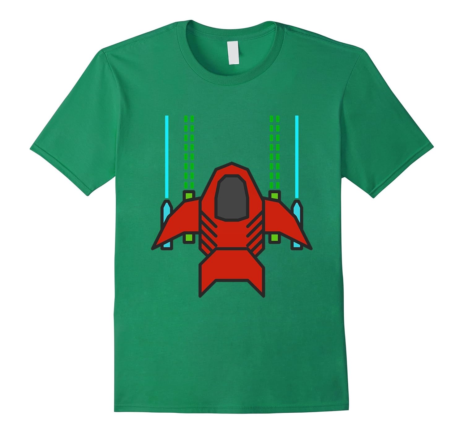 Solid colors: 100% Cotton; Heather Grey: 90% Cotton, 10% Polyester; All Other Heathers: 65% Cotton, 35% Polyester, Imported, Machine wash cold with like colors, dry low heat, Retro Space Games Design, Old School Graphics, Spaceship, Spaceships, Shooter, Shooting Lasers, Laserbeams, Alien Invaders, Lightweight, Classic fit, Double-needle sleeve and bottom hem