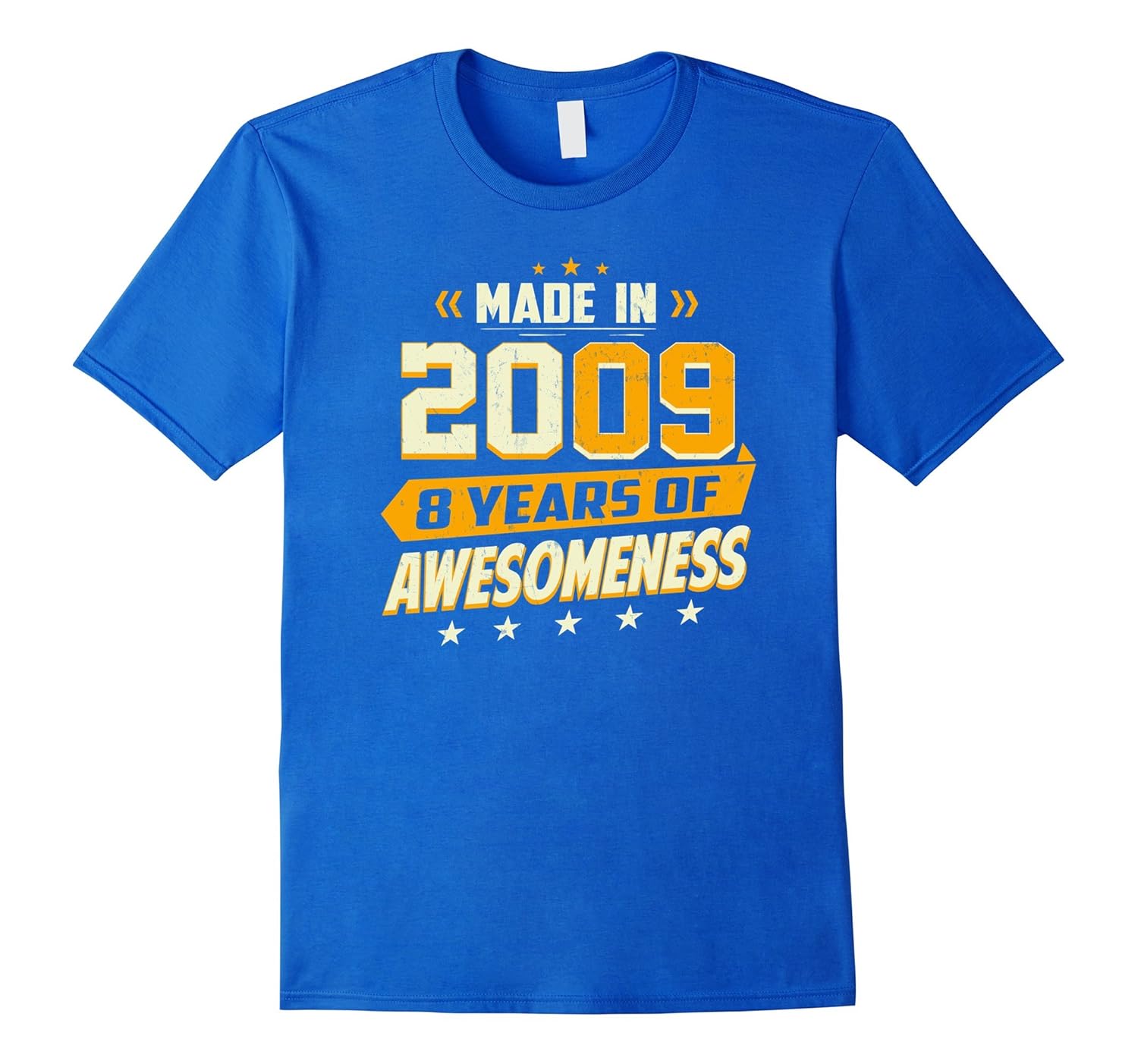 Solid colors: 100% Cotton; Heather Grey: 90% Cotton, 10% Polyester; All Other Heathers: 65% Cotton, 35% Polyester, Imported, Machine wash cold with like colors, dry low heat, An awesome classic vintage retro tee saying Made In 2009 8 Years Of Awesomeness in distressed weathered style! An amazing, cool tshirt for boys or girls turning eight years old born in 09 and; been rocking since birth!, A great happy 8th birthday gift idea or a fun Christmas present for your son, daughter, sister, brother, niece, nephew or grandchild! Grab this funny, sarcastic outfit now and; have your child wear it proud to school, events and; family gatherings!, Lightweight, Classic fit, Double-needle sleeve and bottom hem
