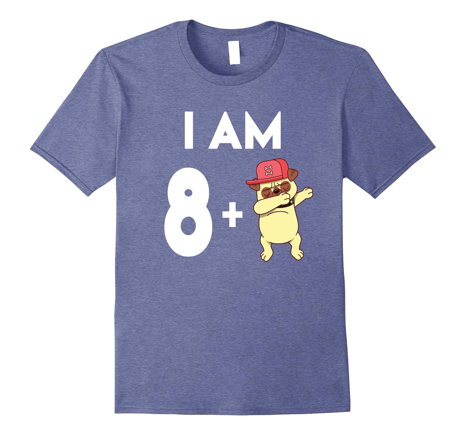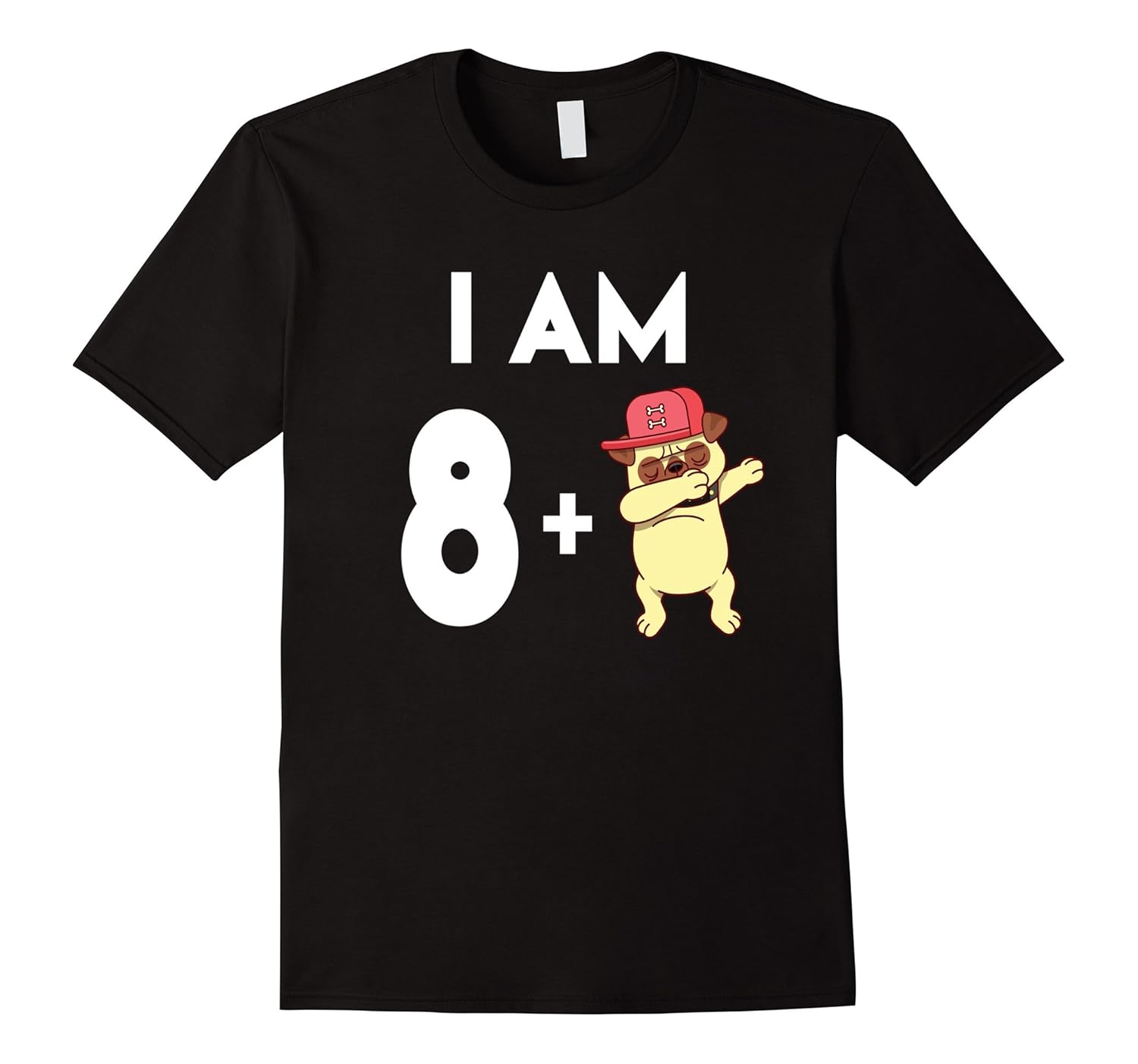 Solid colors: 100% Cotton; Heather Grey: 90% Cotton, 10% Polyester; All Other Heathers: 65% Cotton, 35% Polyester; Imported; Machine wash cold with like colors, dry low heat; Happy Birthday Party Pug Dog for Boys Girls Funny Gift Ideas for 8 year olds Fun Birth Year Im 8 Plus 1 Dabbing Pug Dog Theme; Perfect Presents for Pug and any Dog Lovers Best age Nine happy birthday tee Cute Dancing Dog Bday tshirt I Love Pugs; Lightweight, Classic fit, Double-needle sleeve and bottom hem
