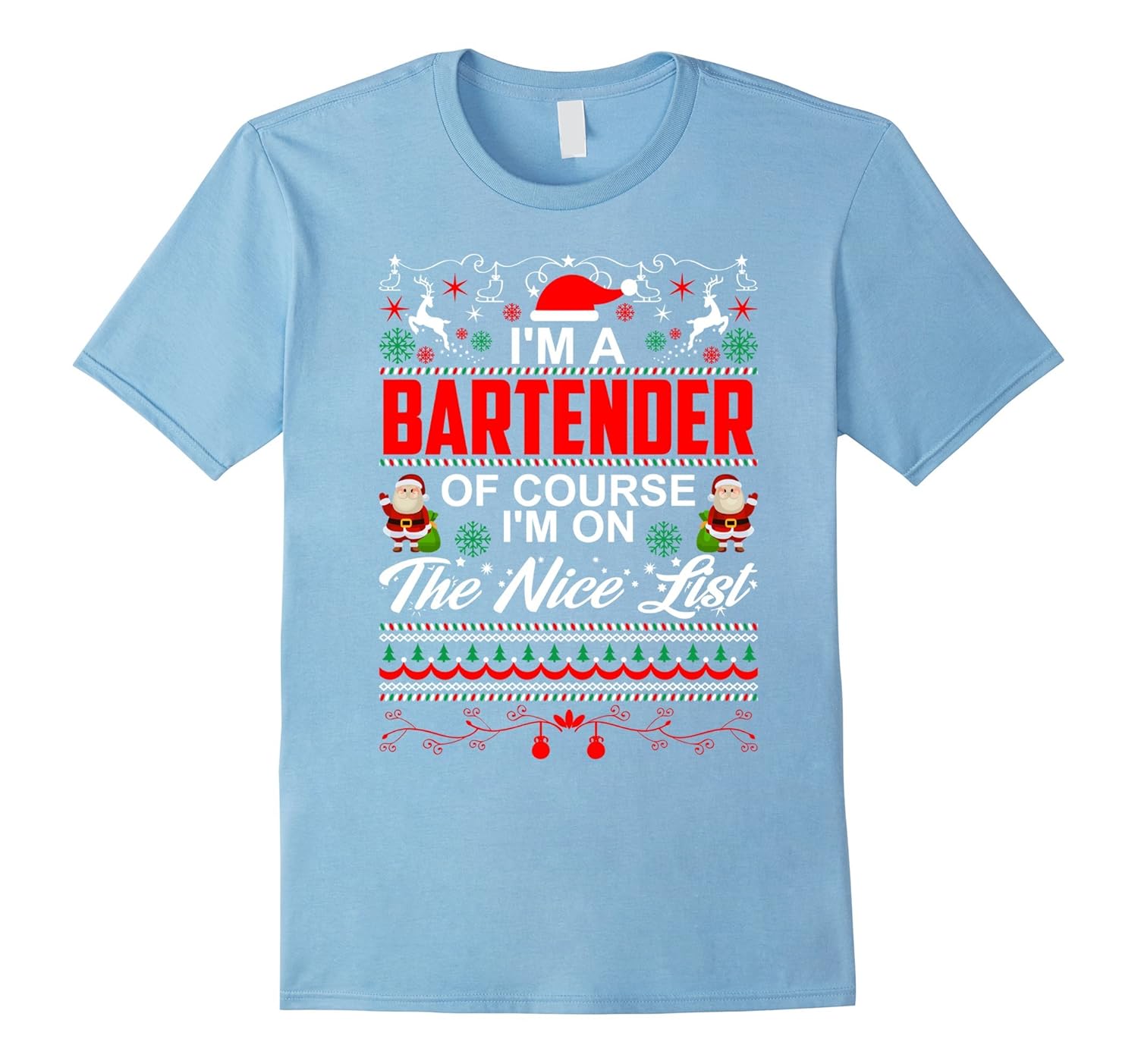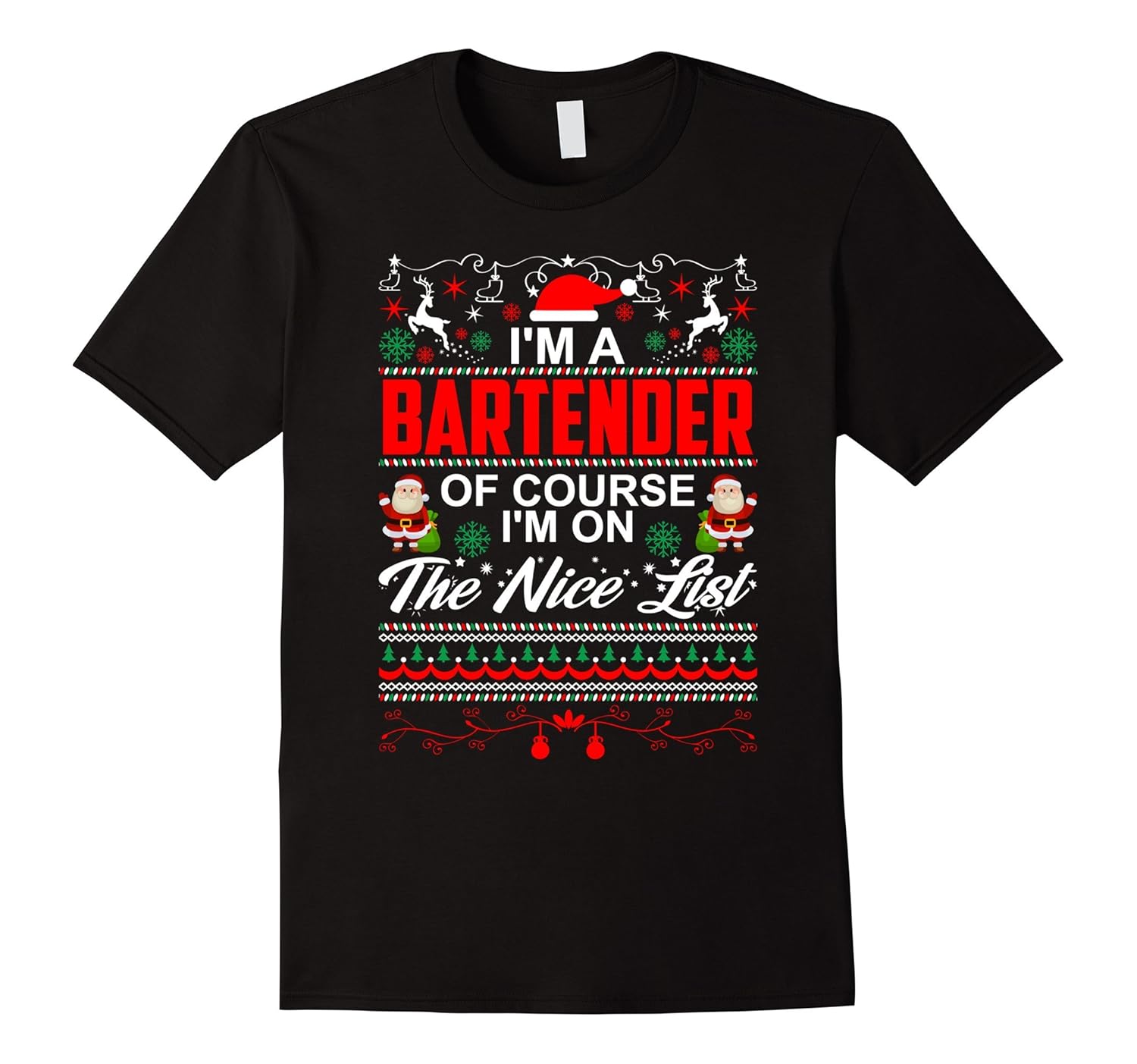 Solid colors: 100% Cotton; Heather Grey: 90% Cotton, 10% Polyester; All Other Heathers: 65% Cotton, 35% Polyester, Imported, Machine wash cold with like colors, dry low heat, A Great Funny Christmas T-Shirt Gift to your Bartender Friends, Uncle or other family members. With this funny Xmas Bartender T Shirt you don”t need to explain yourself as this shirt says it all. Bartender TShirt Gift. Stop struggling for your Christmas Gift Idea and get this cool looking and Awesome Bartender T-Shirt gift on Christmas, Thanksgiving or Birthday. This cool looking Shirt says, I”m a Bartender Of course I”m on the nice list. Lightweight, Classic fit, Double-needle sleeve and bottom hem