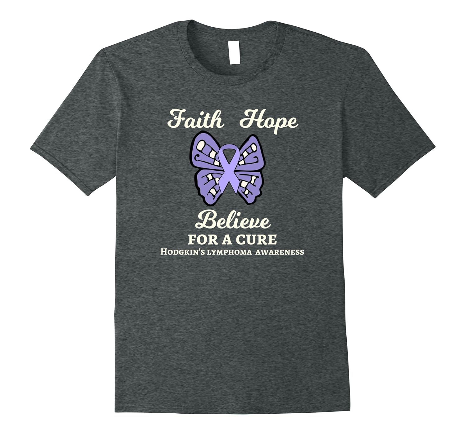 Solid colors: 100% Cotton; Heather Grey: 90% Cotton, 10% Polyester; All Other Heathers: 65% Cotton, 35% Polyester, Imported, Machine wash cold with like colors, dry low heat, Faith Hope Believe for a Cure Hodgkin”s Lymphoma Awareness tshirt. If you know someone who has been touched by Hodgkin”s Lymphoma, you”ll appreciate the message on this lymphoma awareness tee shirt. Lavender ribbon, butterfly symbolize hope for a cure. This Hodgkin”s Lymphoma awareness t shirt is a great support gift for someone fighting lymphoma and a great way to make people more aware of the need to find the cure. Shirts run small, size up for loose fit, Lightweight, Classic fit, Double-needle sleeve and bottom hem