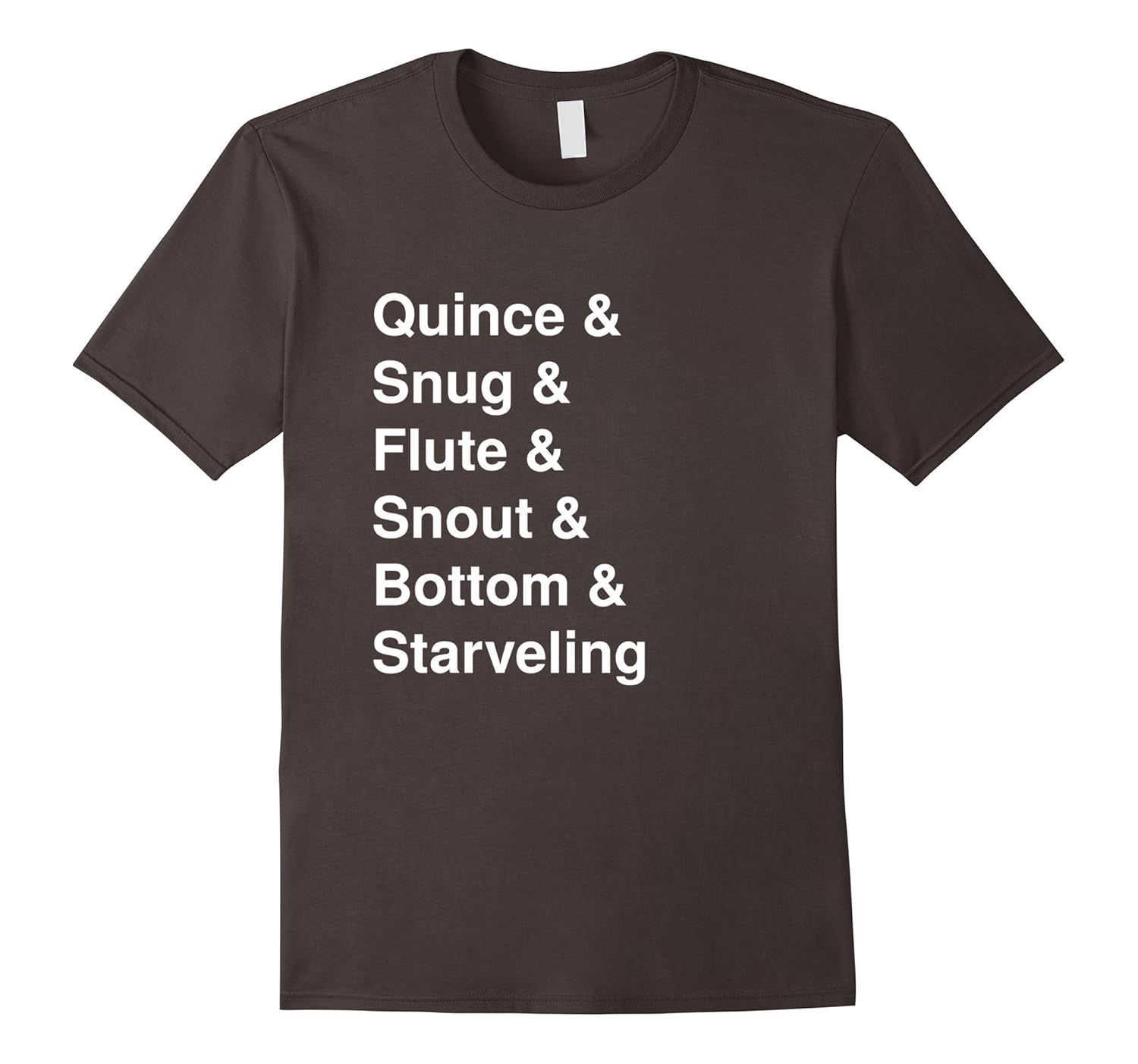 Solid colors: 100% Cotton; Heather Grey: 90% Cotton, 10% Polyester; All Other Heathers: 65% Cotton, 35% Polyester, Imported, Machine wash cold with like colors, dry low heat, Characters from William Shakespeare”s fairy comedy A MIdsummer Night”s Dream, Call them generally, man by man, according to the script!, Lightweight, Classic fit, Double-needle sleeve and bottom hem