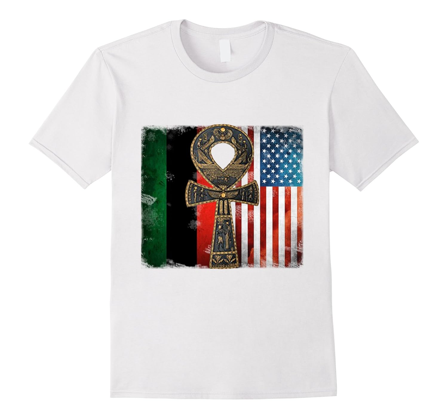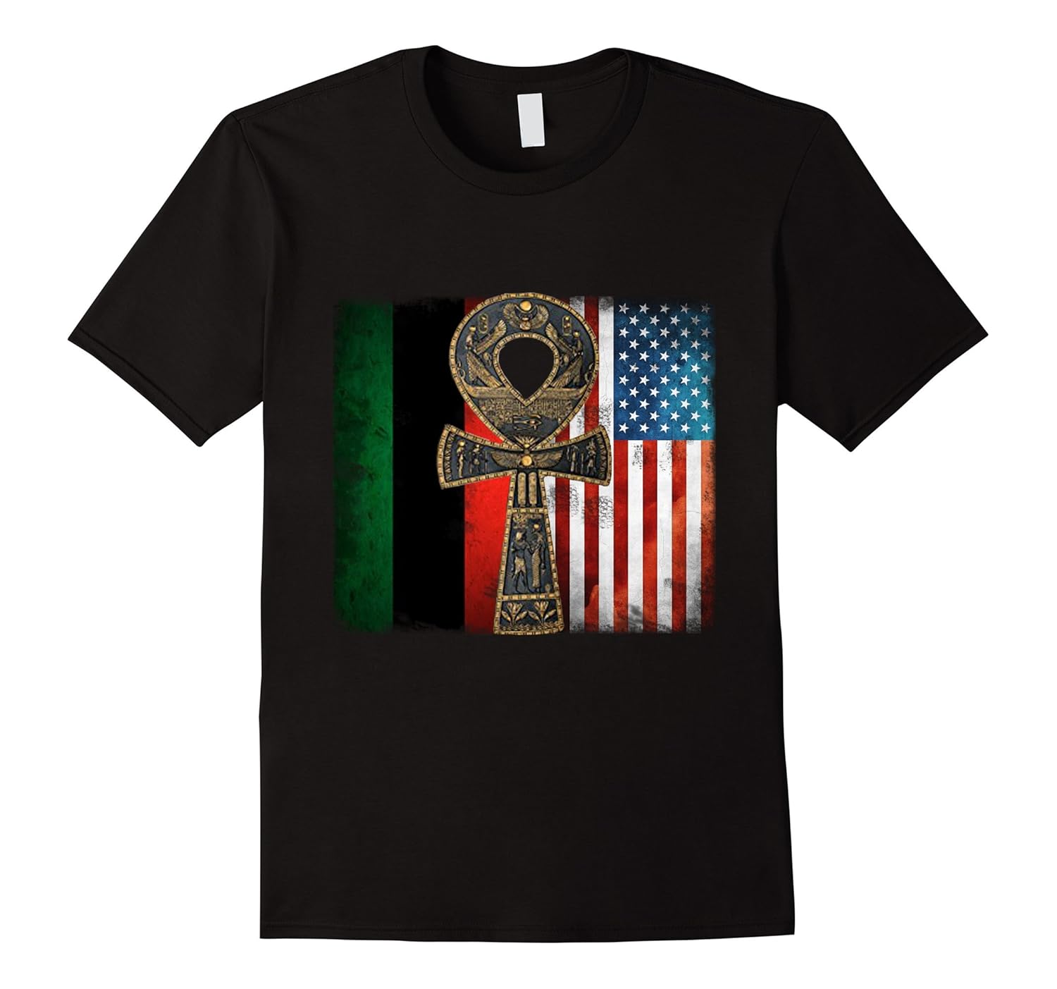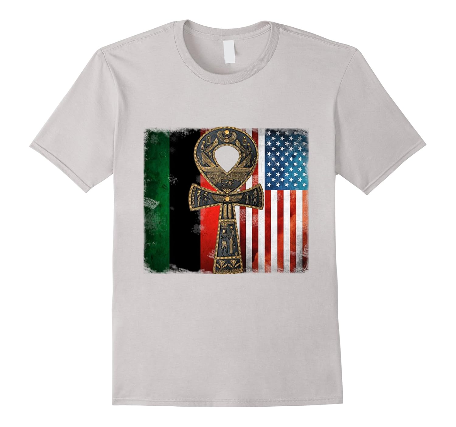 Solid colors: 100% Cotton; Heather Grey: 90% Cotton, 10% Polyester; All Other Heathers: 65% Cotton, 35% Polyester; Imported; Machine wash cold with like colors, dry low heat; ankh, african, african american, american, national pride, black power, pan african; african american history, black history, black history month; Lightweight, Classic fit, Double-needle sleeve and bottom hem