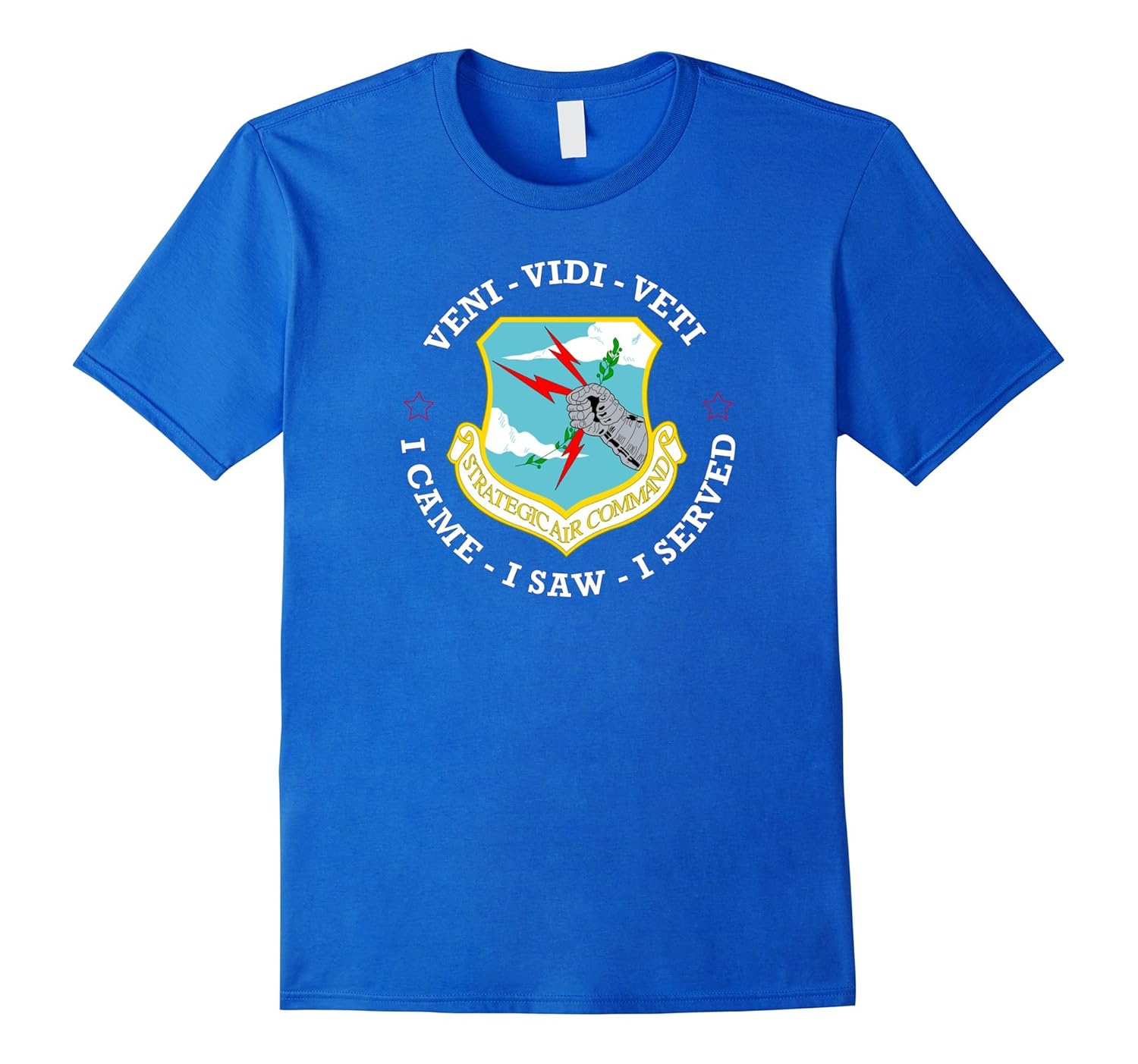 100% Cotton, Imported, Machine wash cold with like colors, dry low heat, AIR FORCE SAC T-SHIRT, THIS T-SHIRT IS DECORAED WITH THE AIR FORCE STRATEGIC AIR COMMAND EMBLEM AND THE WORDS VENI VIDI VETI I CAME I SAW I SERVED. Lightweight, Classic fit, Double-needle sleeve and bottom hem