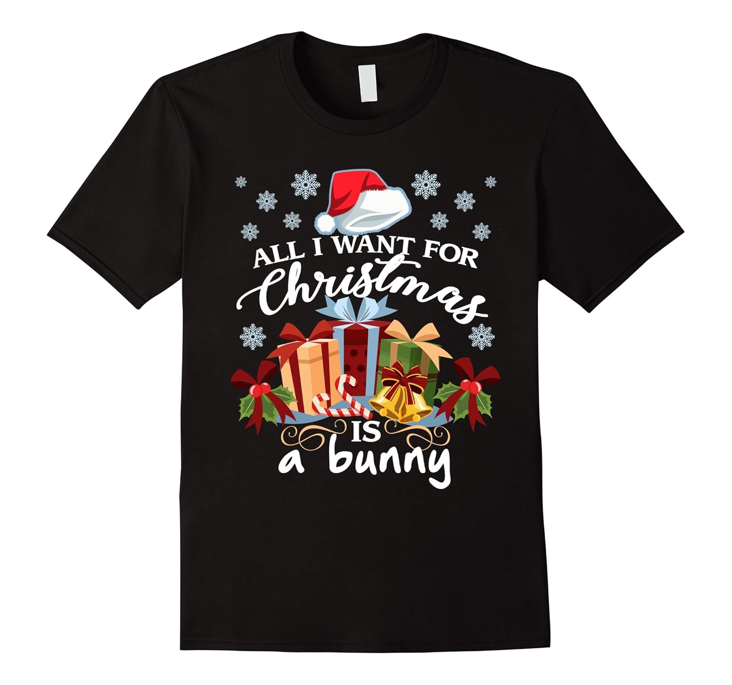 Solid colors: 100% Cotton; Heather Grey: 90% Cotton, 10% Polyester; All Other Heathers: 65% Cotton, 35% Polyester, Imported, Machine wash cold with like colors, dry low heat, All I Want For Christmas Is A Bunny Funny T-Shirt – for lovers of those cute fluffy bunnies and rabbits!, Do you love Christmas. Favorite holiday of the year. Love Christmas trees, lights, presents, gifts, white snow. Plus Santa, his workshop, elves and the north pole. Maybe even a little eggnog and mistletoe. This great shirt makes a great Xmas gift!, Lightweight, Classic fit, Double-needle sleeve and bottom hem