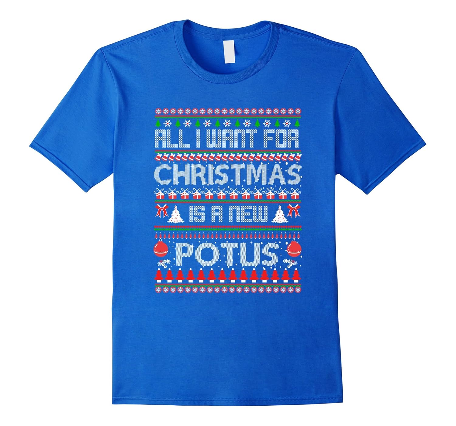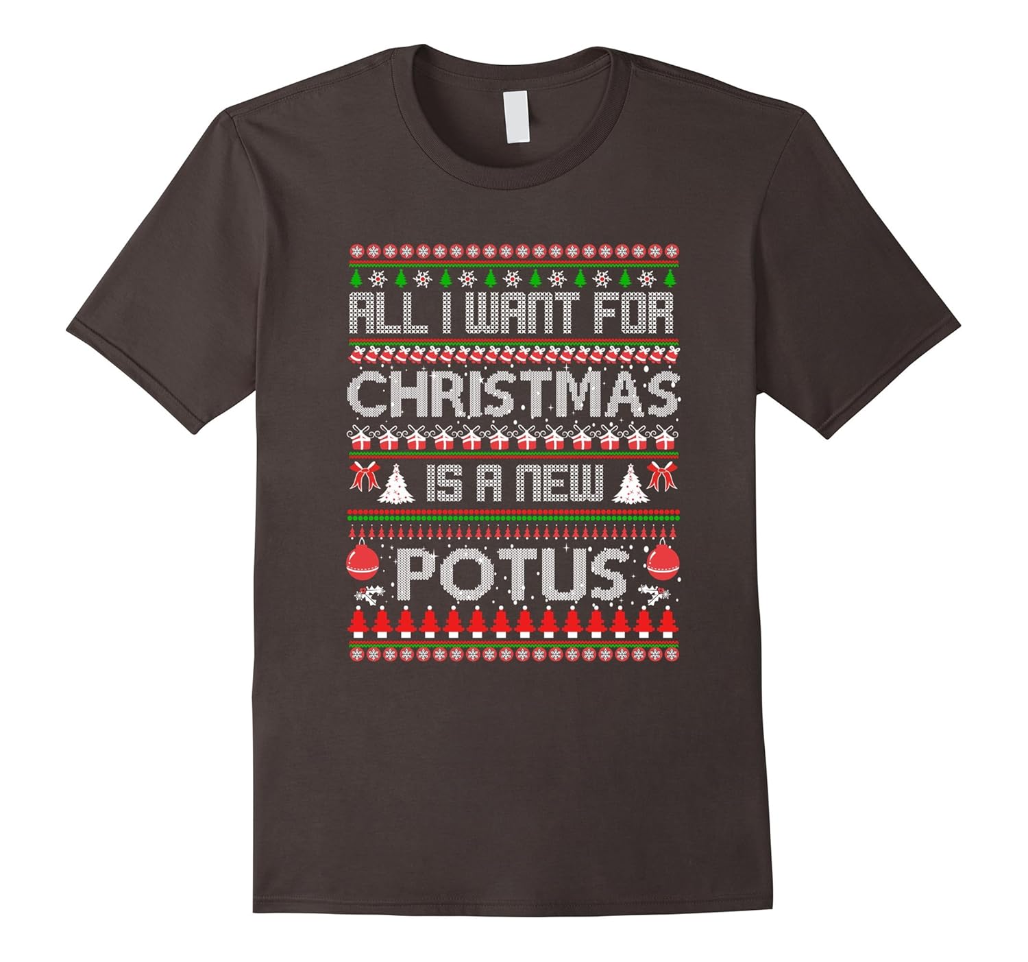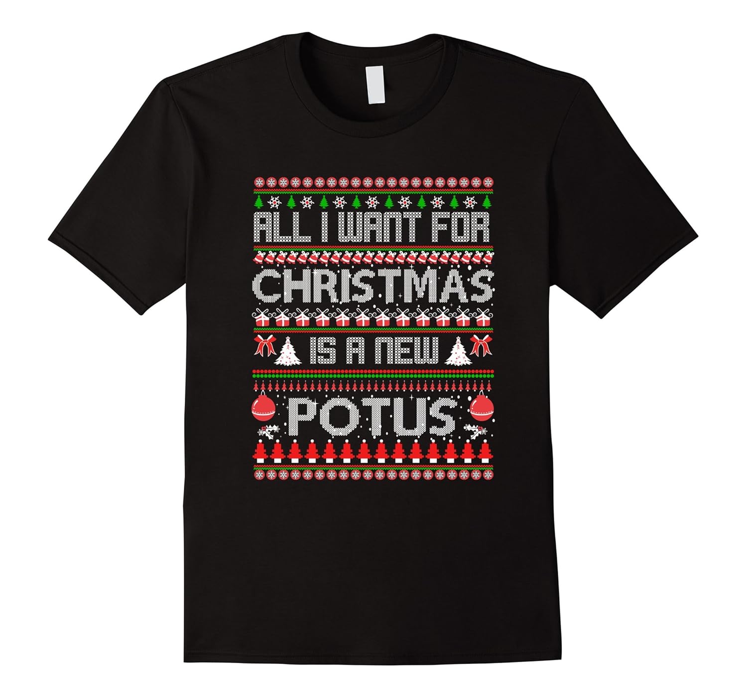 Solid colors: 100% Cotton; Heather Grey: 90% Cotton, 10% Polyester; All Other Heathers: 65% Cotton, 35% Polyester, Imported, Machine wash cold with like colors, dry low heat, All I want for Christmas is a new POTUS! Great ugly Christmas sweater style tee this holiday season to show everyone what you would like – a new President!, Perfect anti-Trump T-shirt gift for anyone who would love to see Trump be replaced, resign, or be impeached for the holidays!, Lightweight, Classic fit, Double-needle sleeve and bottom hem