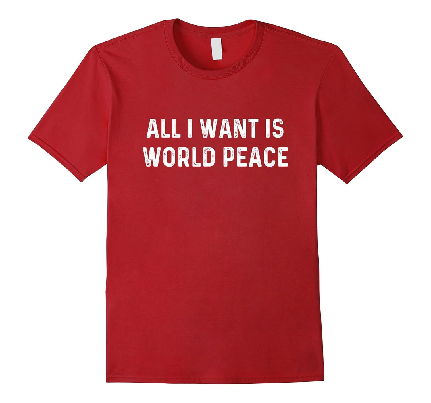 Solid colors: 100% Cotton; Heather Grey: 90% Cotton, 10% Polyester; All Other Heathers: 65% Cotton, 35% Polyester, Imported, Machine wash cold with like colors, dry low heat, The All I Want Is World Peace is the shirt for anyone against war, liberals, peaceful protestors, and anyone who wants to improve the world. Perfect t-shirt for birthdays, girlfriends, boyfriends, fathers, mothers, and protest rallies. Lightweight, Classic fit, Double-needle sleeve and bottom hem