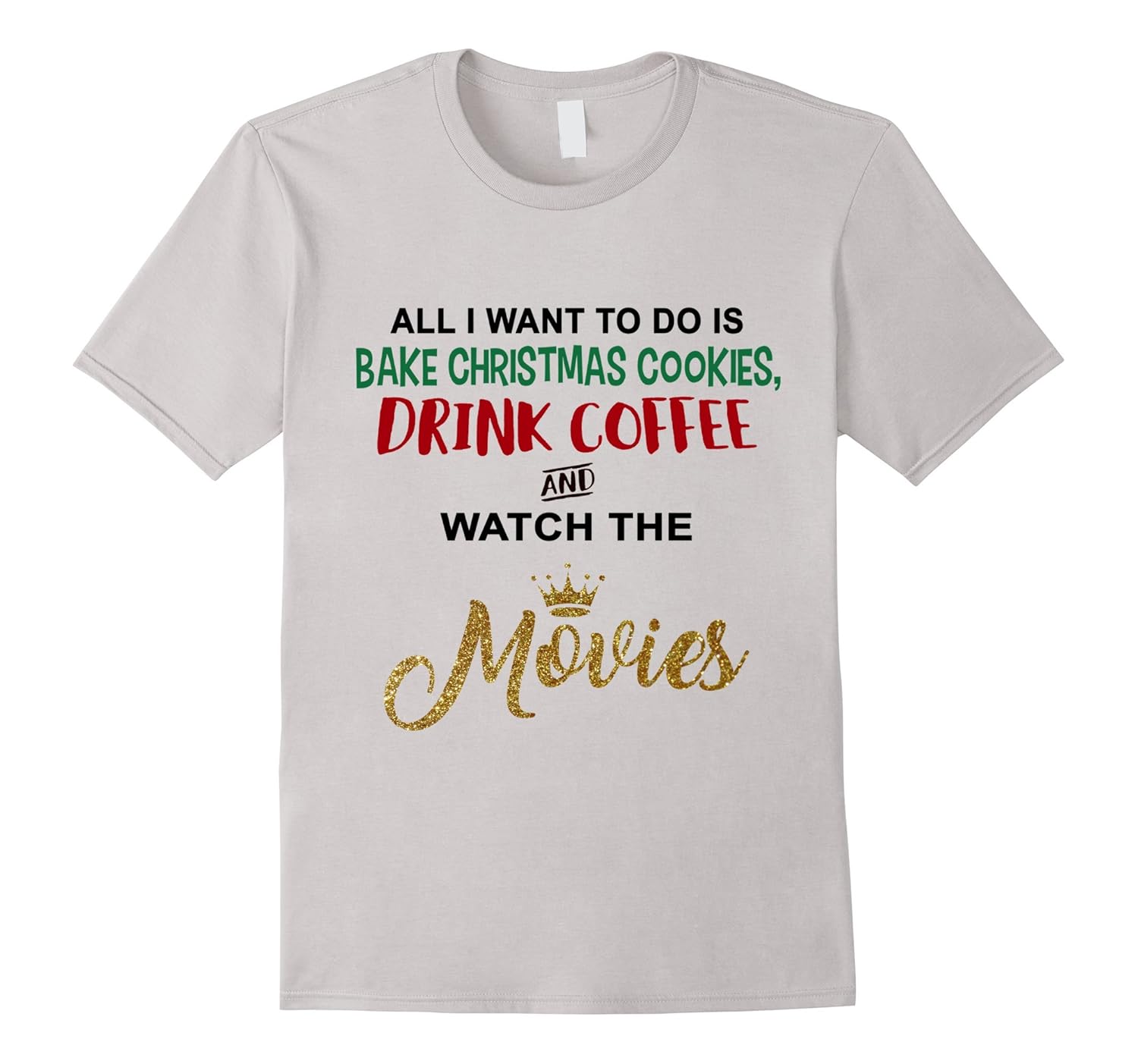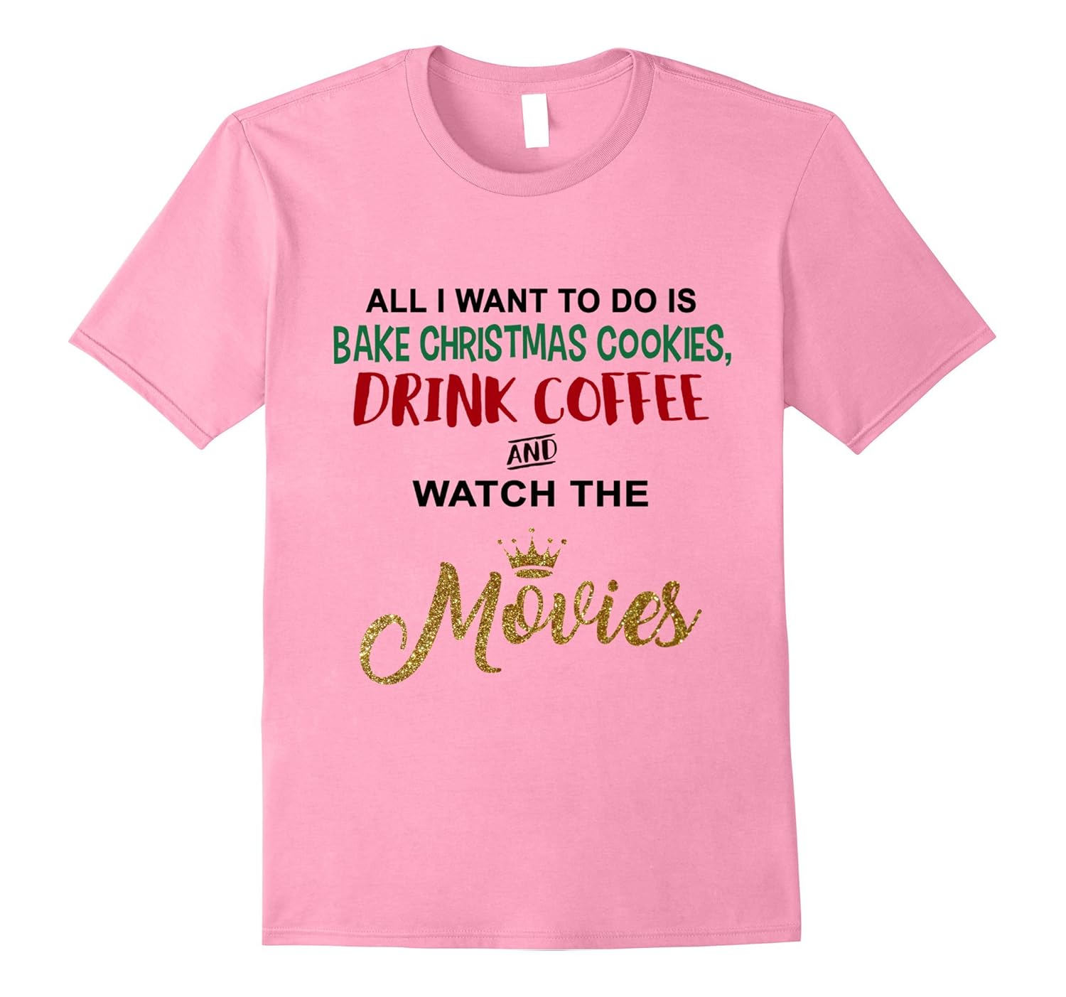Solid colors: 100% Cotton; Heather Grey: 90% Cotton, 10% Polyester; All Other Heathers: 65% Cotton, 35% Polyester, Imported, Machine wash cold with like colors, dry low heat, All I Want To Do Is Bake Christmas Cookies Drink Coffee and Watch The Movies T-Shirt, A perfect gift for your favorite baker who loves to spend time in the kitchen baking delicious Christmas cookies and watching their favorite movies. Lightweight, Classic fit, Double-needle sleeve and bottom hem