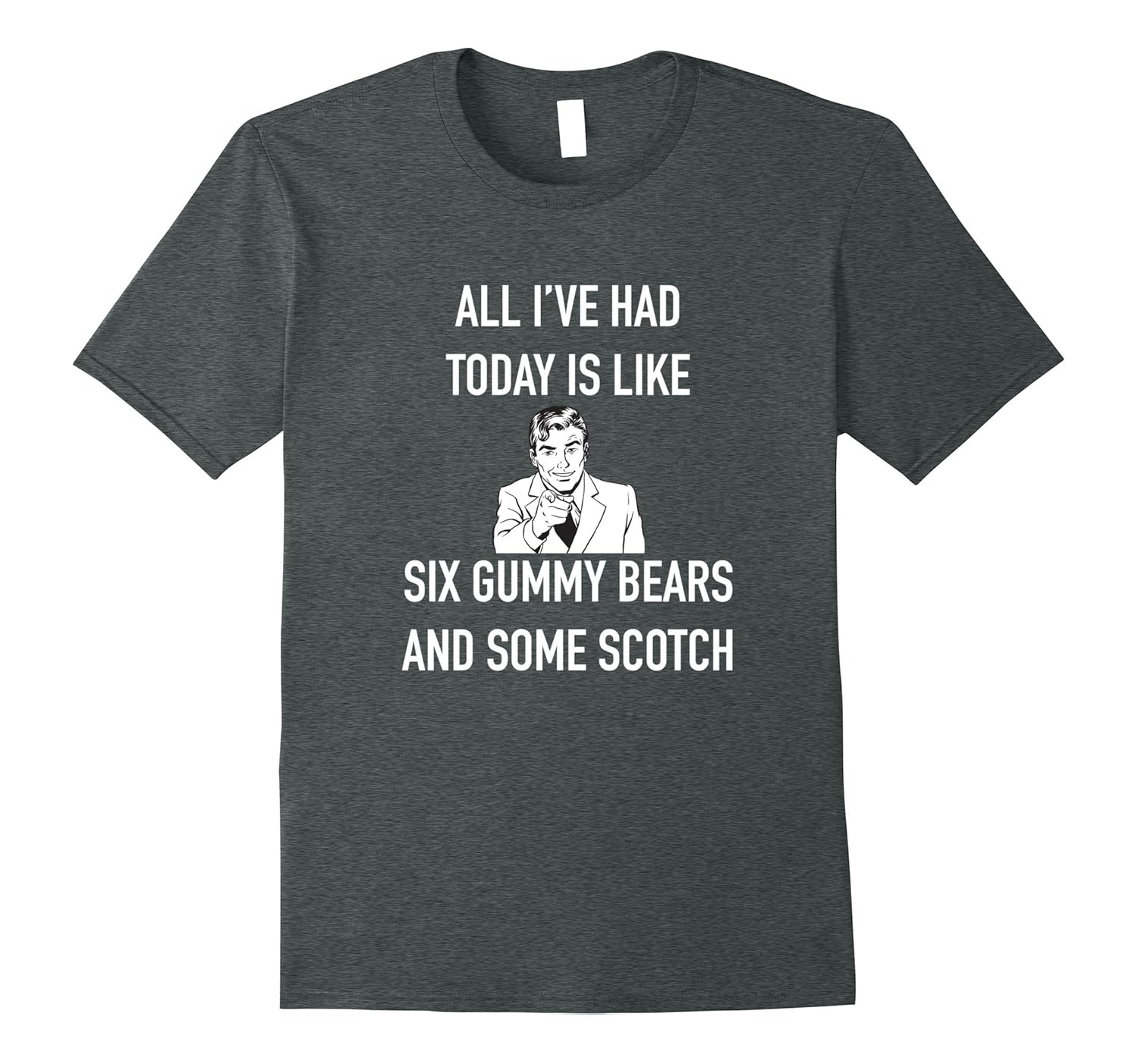 Solid colors: 100% Cotton; Heather Grey: 90% Cotton, 10% Polyester; All Other Heathers: 65% Cotton, 35% Polyester, Imported, Machine wash cold with like colors, dry low heat, Gummy bears all around! Show your love for gummy bears (and scotch) with this funny sarcastic t shirt. This shirt is designed and printed to be fitted. For a more baggy fit please order a size up. Lightweight, Classic fit, Double-needle sleeve and bottom hem