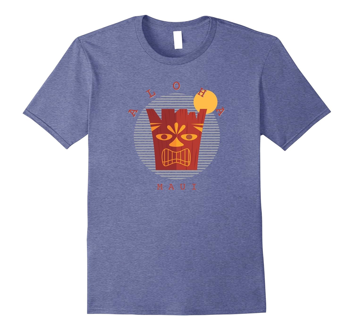 Solid colors: 100% Cotton; Heather Grey: 90% Cotton, 10% Polyester; All Other Heathers: 65% Cotton, 35% Polyester, Imported, Machine wash cold with like colors, dry low heat, Our Aloha Tees are the perfect souvenir from your favorite Hawaiian Island. This tiki design Maui t-shirt makes a great souvenir to remember the aloha spirit and your time in beautiful Hawaii. Our Aloha Tees are made to fit. If you”d like a relaxed fit, order one size larger than usual. Lightweight, Classic fit, Double-needle sleeve and bottom hem