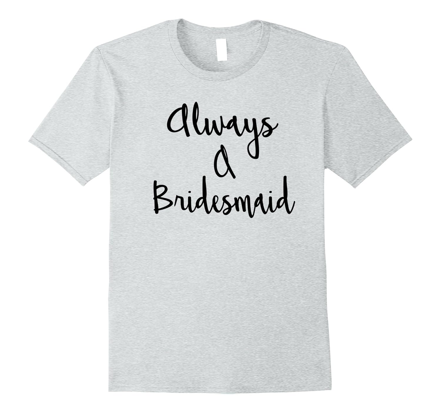 Solid colors: 100% Cotton; Heather Grey: 90% Cotton, 10% Polyester; All Other Heathers: 65% Cotton, 35% Polyester, Imported, Machine wash cold with like colors, dry low heat, Always A Bridesmaid T-shirt. This is a funny wedding party quote gift tee shirt. A Best Friend Celebration T shirt!, Great tshirt for Maid of Honor or Best Woman! Great gift for any Bridesmaid that has been at many weddings! Funny Just Married shirt. Lightweight, Classic fit, Double-needle sleeve and bottom hem