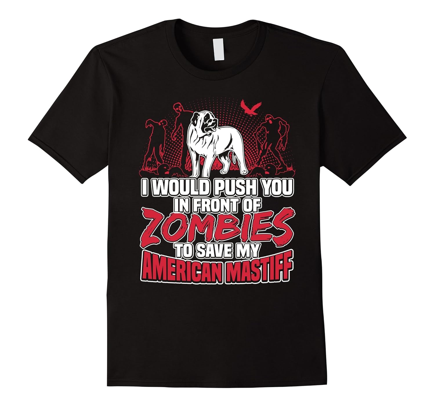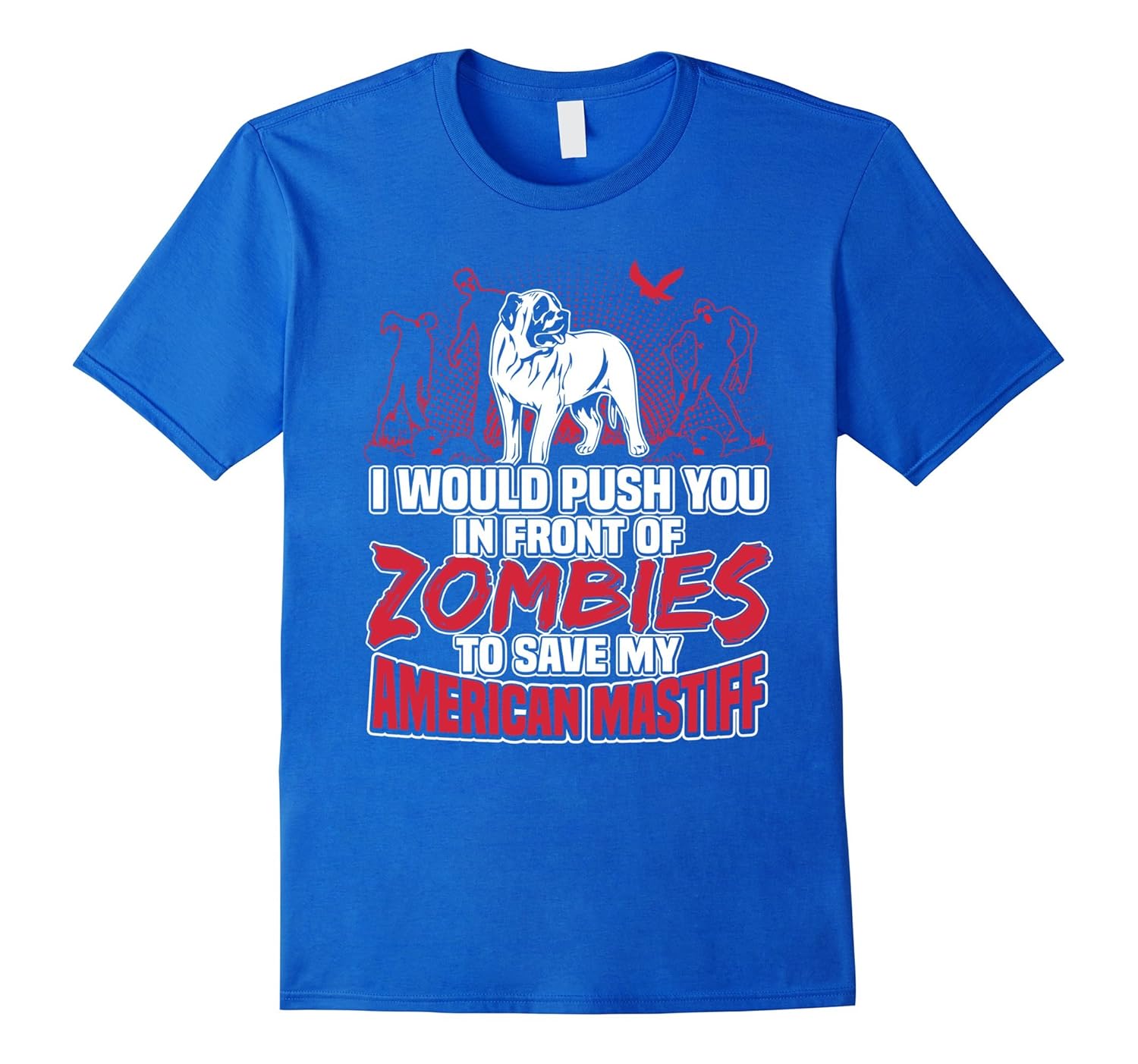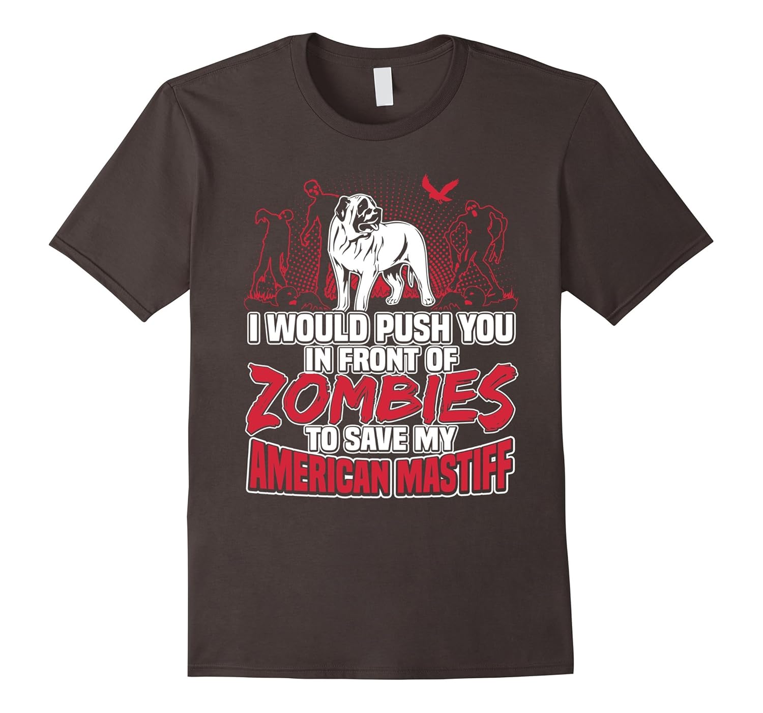 Solid colors: 100% Cotton; Heather Grey: 90% Cotton, 10% Polyester; All Other Heathers: 65% Cotton, 35% Polyester, Imported, Machine wash cold with like colors, dry low heat, Shirts says: I Would Push You In Front Of Zombies To Save My American Mastiff. This funny dog tee is great gift to help you relax and show how much you love your pup. If you own an American Mastiff, it is an awesome thing for everyday wear. American Mastiff also known as AM Mastiff. Best present for Halloween, Mother”s Day, Valentine, Christmas, Birthdays everyday gift ideas or any special occasions. For a more baggy fit, please order a size up. Lightweight, Classic fit, Double-needle sleeve and bottom hem