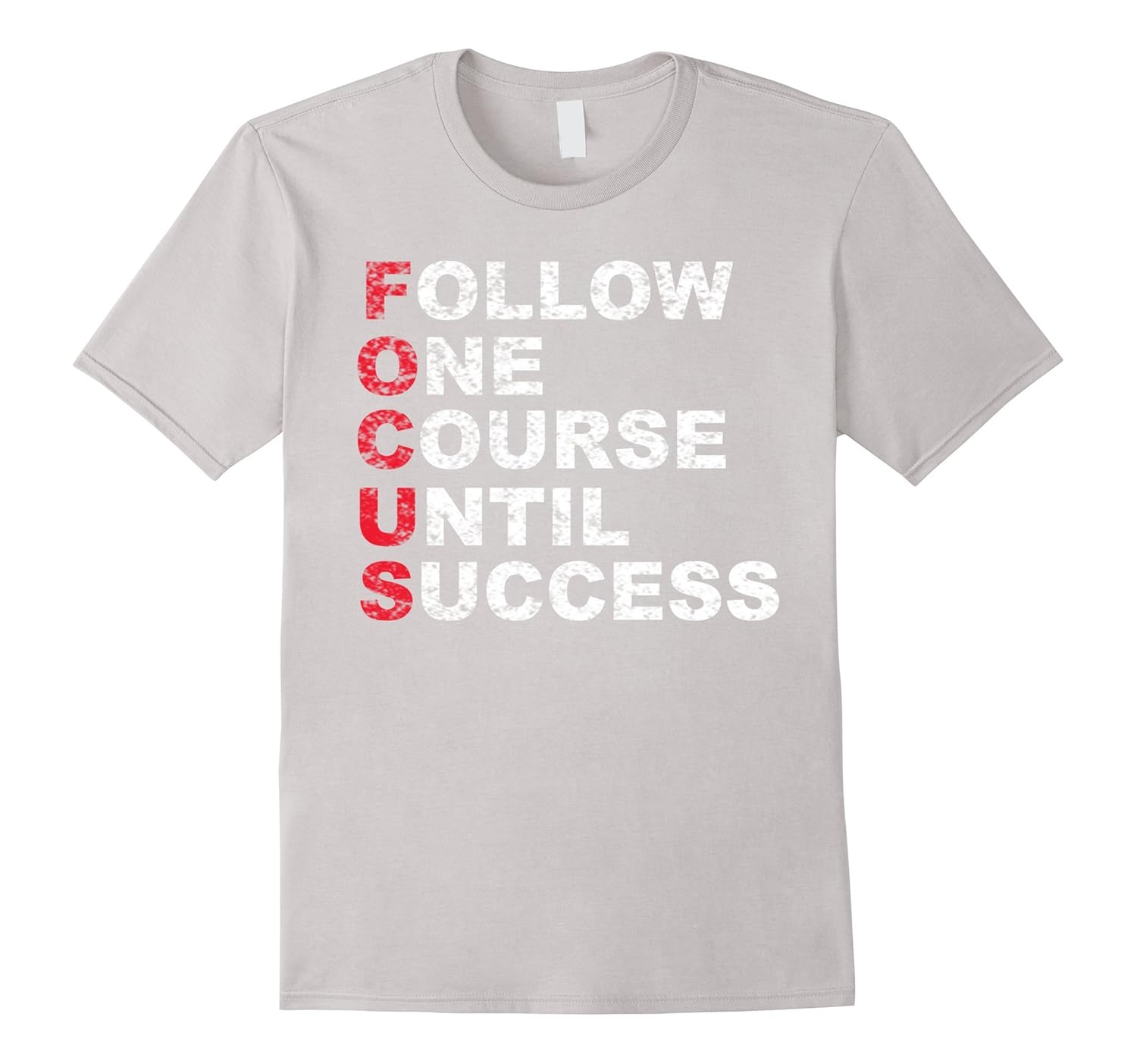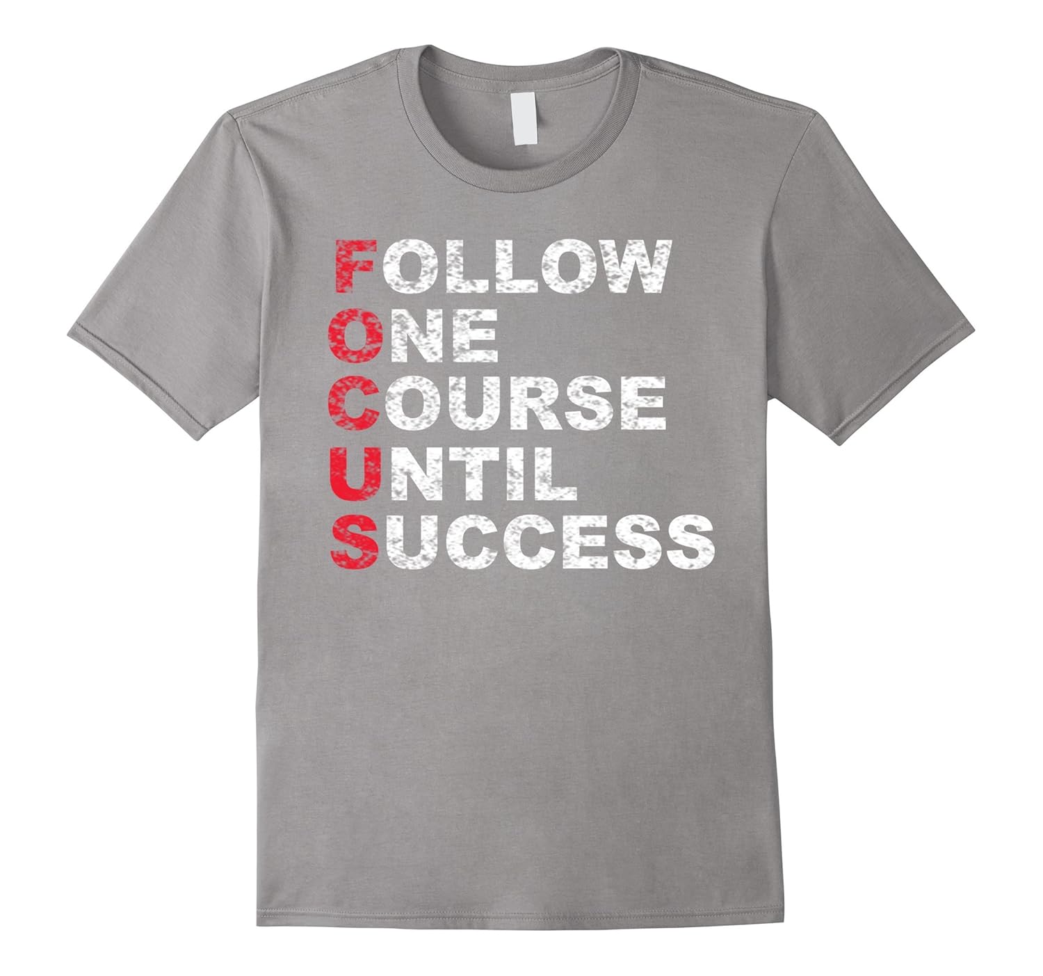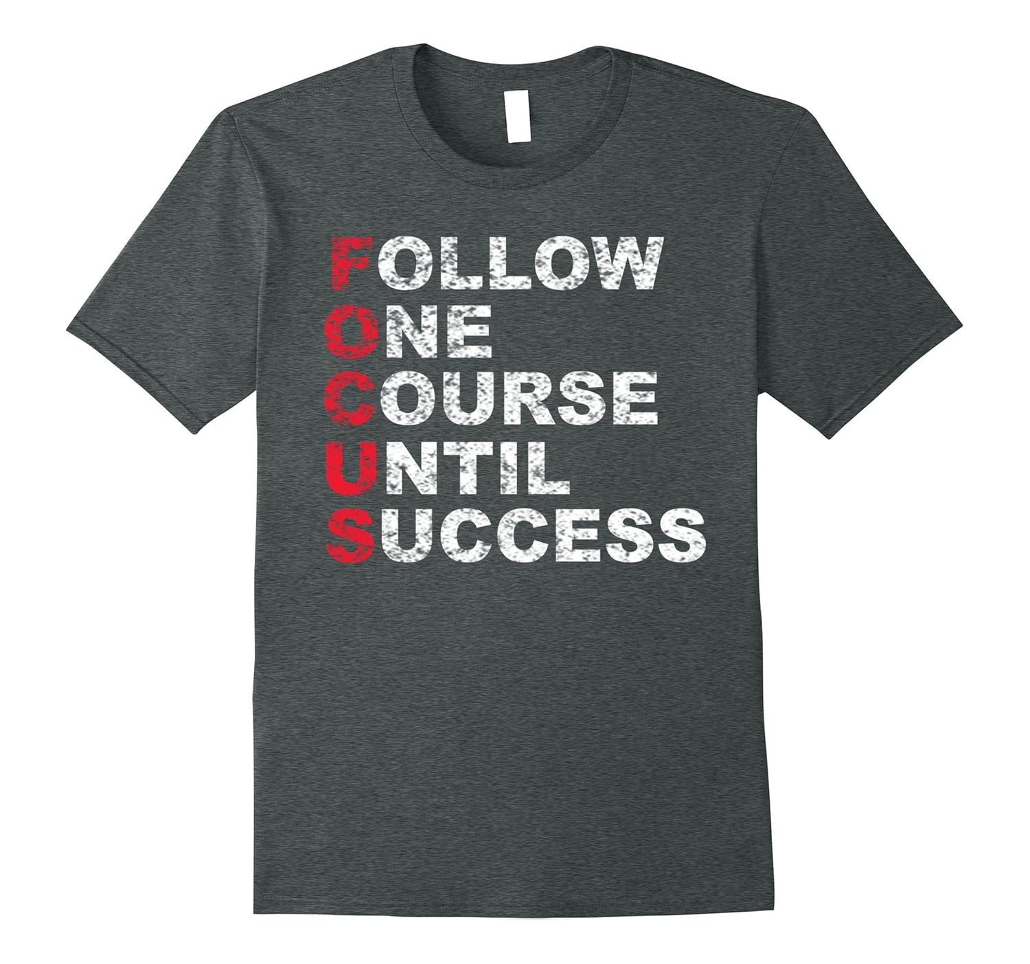 Solid colors: 100% Cotton; Heather Grey: 90% Cotton, 10% Polyester; All Other Heathers: 65% Cotton, 35% Polyester, Imported, Machine wash cold with like colors, dry low heat, Start your Motivation off right with this FOCUS Tee. Whether your trying to lose weight, Struggling with a Diet, or Need an extra push in a workout this shirt is for you. They only way to success is to follow One Course Until Success, Lightweight, Classic fit, Double-needle sleeve and bottom hem
