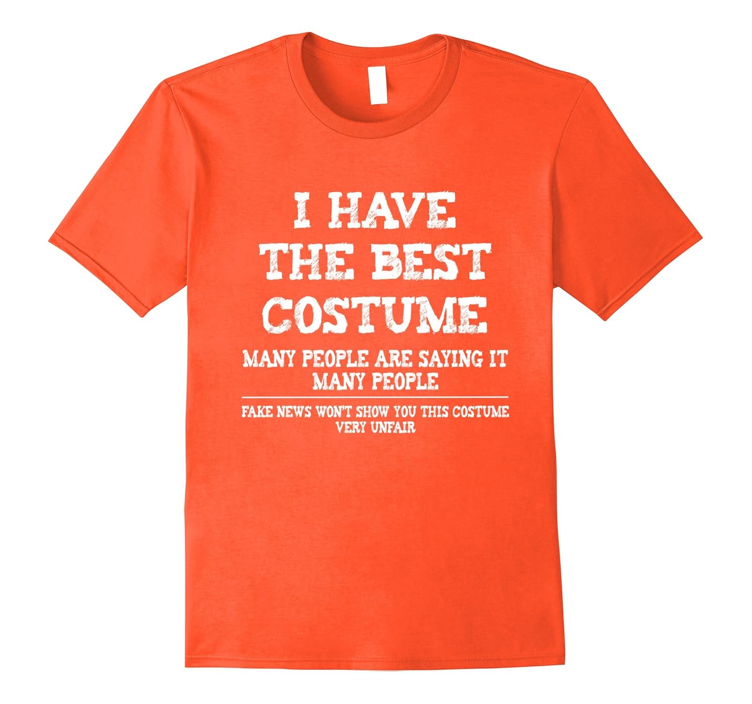 Solid colors: 100% Cotton; Heather Grey: 90% Cotton, 10% Polyester; All Other Heathers: 65% Cotton, 35% Polyester, Imported, Machine wash cold with like colors, dry low heat, Need a quick, simple and witty costume. This funny shirt is perfect for any Halloween party or get together. If you want to put as much effort into your costume as Donald puts into being President, then this is the perfect tee. Like only 45 would, the shirt says: I HAVE THE BEST COSTUME. MANY PEOPLE ARE SAYING IT. MANY PEOPLE. FAKE NEWS WON”T SHOW YOU THIS COSTUME, VERY UNFAIR. Lightweight, Classic fit, Double-needle sleeve and bottom hem