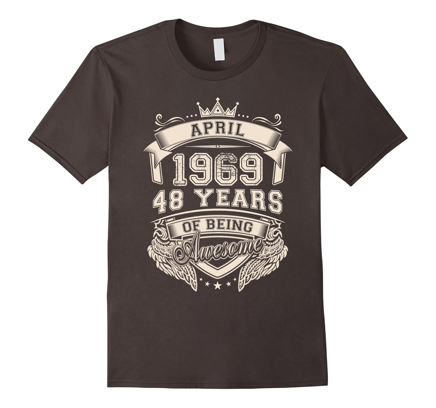 Solid colors: 100% Cotton; Heather Grey: 90% Cotton, 10% Polyester; All Other Heathers: 65% Cotton, 35% Polyester, Imported, Machine wash cold with like colors, dry low heat, April birthday shirt, 48th birthday gifts for women, 48th birthday gifts for men, 1969 48th birthday shirt, This is a great shirt for your 48th birthday 48 years of being awesome shirt, born in February 1969 shirts, April 1969 birthday, 1969 birthday shirt, 1969 shirts for women, 1969 shirts, Lightweight, Classic fit, Double-needle sleeve and bottom hem