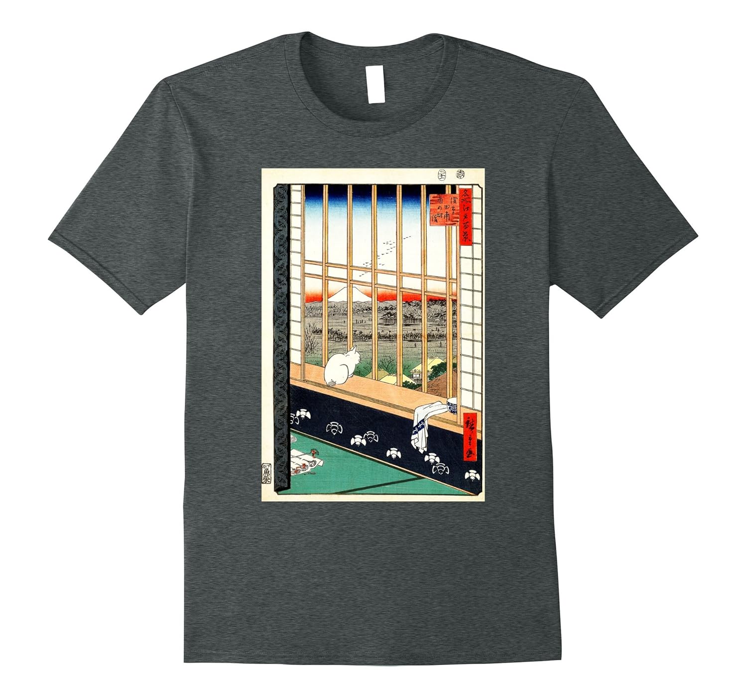 Solid colors: 100% Cotton; Heather Grey: 90% Cotton, 10% Polyester; All Other Heathers: 65% Cotton, 35% Polyester, Imported, Machine wash cold with like colors, dry low heat, Do you love Vintage Japanese Art. Then we”ve got the perfect t-shirt for you. This 1857 Antique Japanese print shows a cat sitting on a wall watching the festival procession. If you are love art masterpiece you”ll fall in love with this. This Novelty Apparel is designed and printed to be fitted. For a more loose fit, please order a size up. It is a great birthday and Christmas gifts. Ando Hiroshige: Asakusa tanbo torinomachi mode,No. 101 in the series One Hundred Famous Views of Edo,1857. Lightweight, Classic fit, Double-needle sleeve and bottom hem