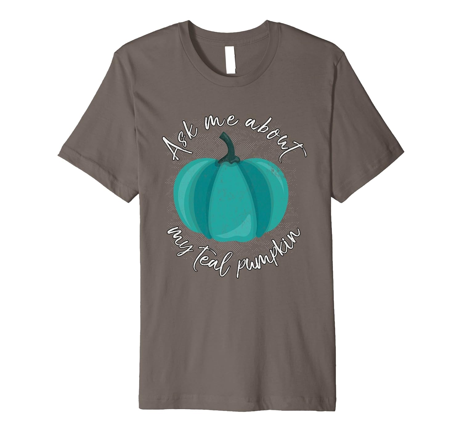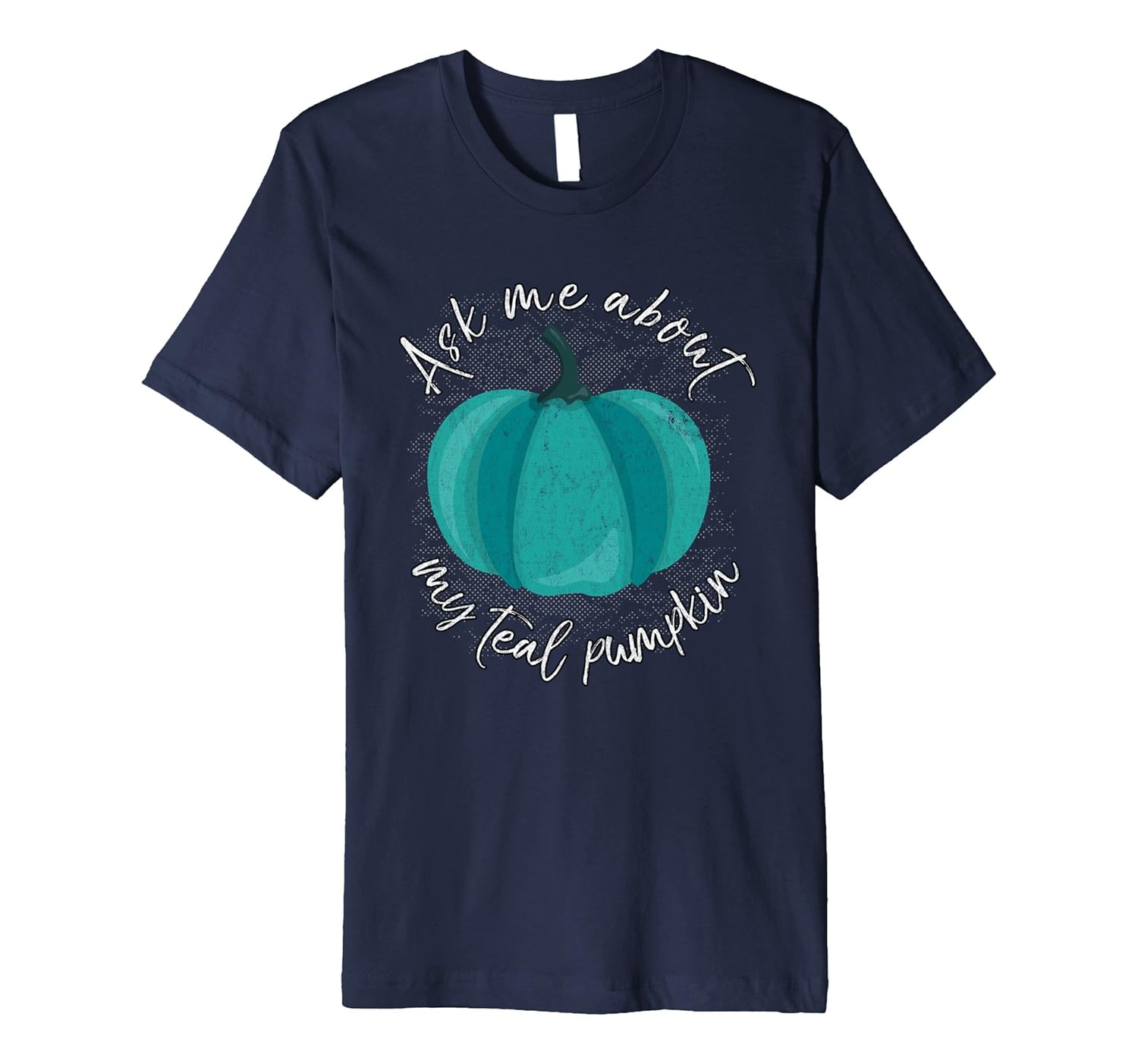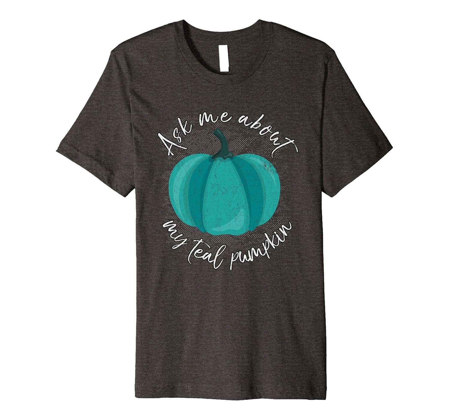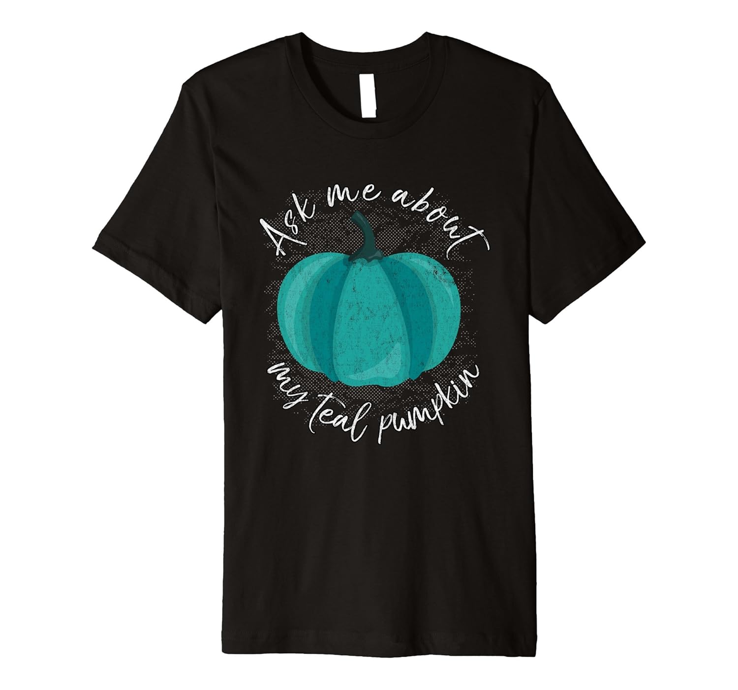 Solid colors: 100% Cotton; Heather Grey: 90% Cotton, 10% Polyester; All Other Heathers: 58% Cotton, 42% Polyester; Imported; Machine wash cold with like colors, dry low heat; This food allergy shirt features a teal pumpkin in support of offering non-food Halloween treats. Help raise awareness for children who can not have Halloween candy because of food issues with this food allergy awareness t shirt.; Fit: Slim (consider ordering a larger size for a looser fit); This t-shirt shows that you care and want to make the holiday fun for all kids. Whether its a gluten allergy, wheat allergy, corn allergy, soy allergy, nut allergy, celiac, FPIES or other food sensitivity, help make Halloween safe for all.; This premium t-shirt is made of lightweight fine jersey fabric