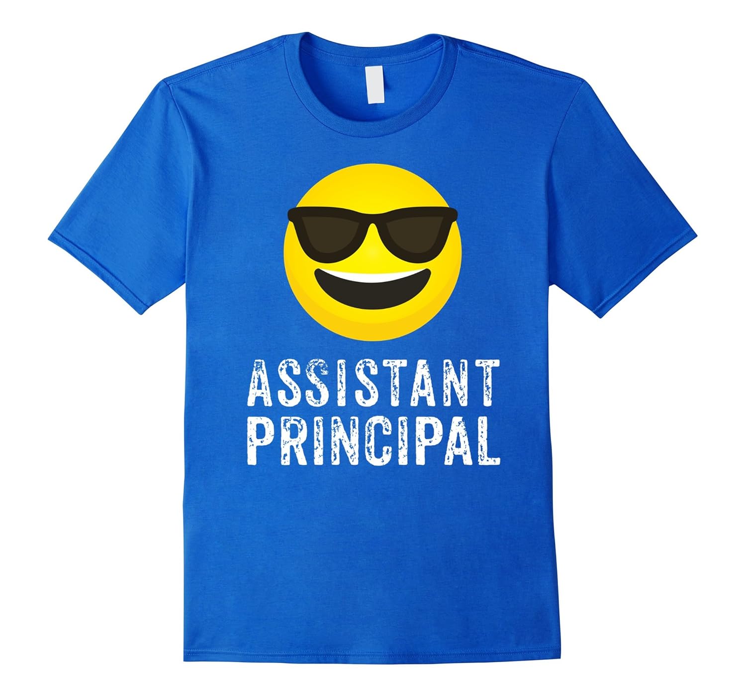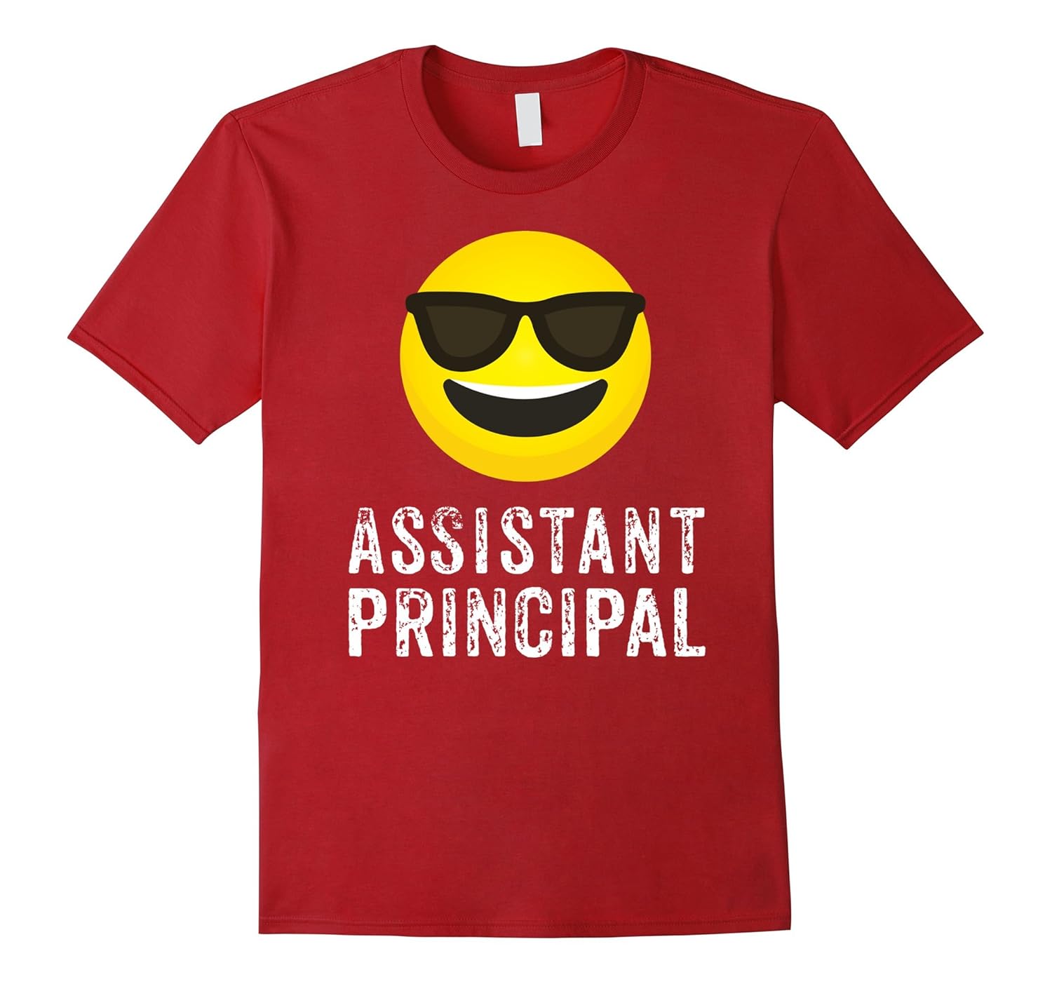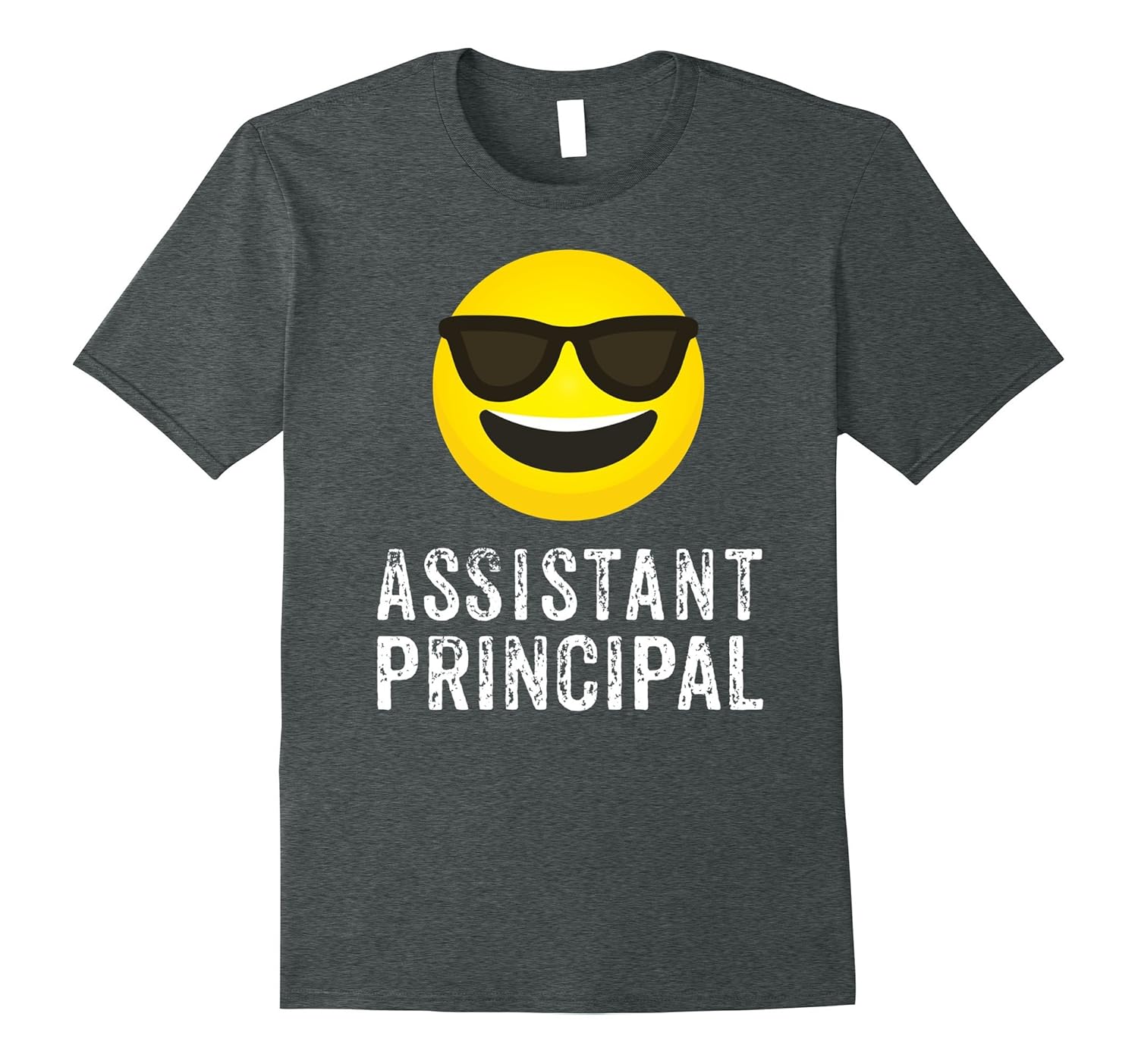 Solid colors: 100% Cotton; Heather Grey: 90% Cotton, 10% Polyester; All Other Heathers: 65% Cotton, 35% Polyester; Imported; Machine wash cold with like colors, dry low heat; Show your school pride with this cool yellow smiley face shirt with sunglasses tee. Assistant principals work hard day in and day out to help students learn and grow. This distressed, novelty assistant principal t-shirt will emphasize how cool they are.; This sunglass emoji assistant principal t-shirt is fitted. For a looser fit please order a size larger than typical. This emoticon smiley face assistant principal tee shirt is a perfect birthday or Christmas gift for any assistant principal.; Lightweight, Classic fit, Double-needle sleeve and bottom hem