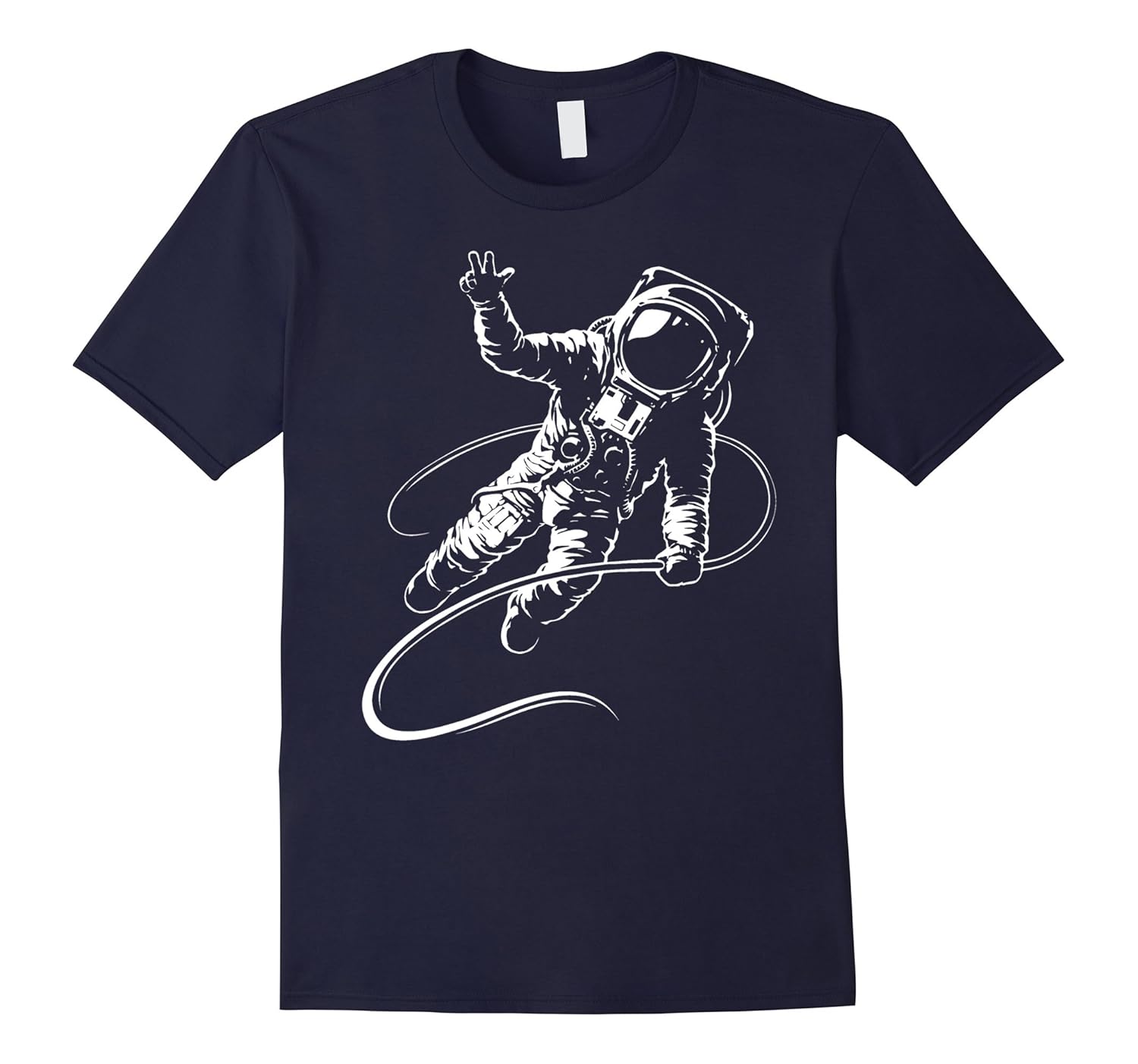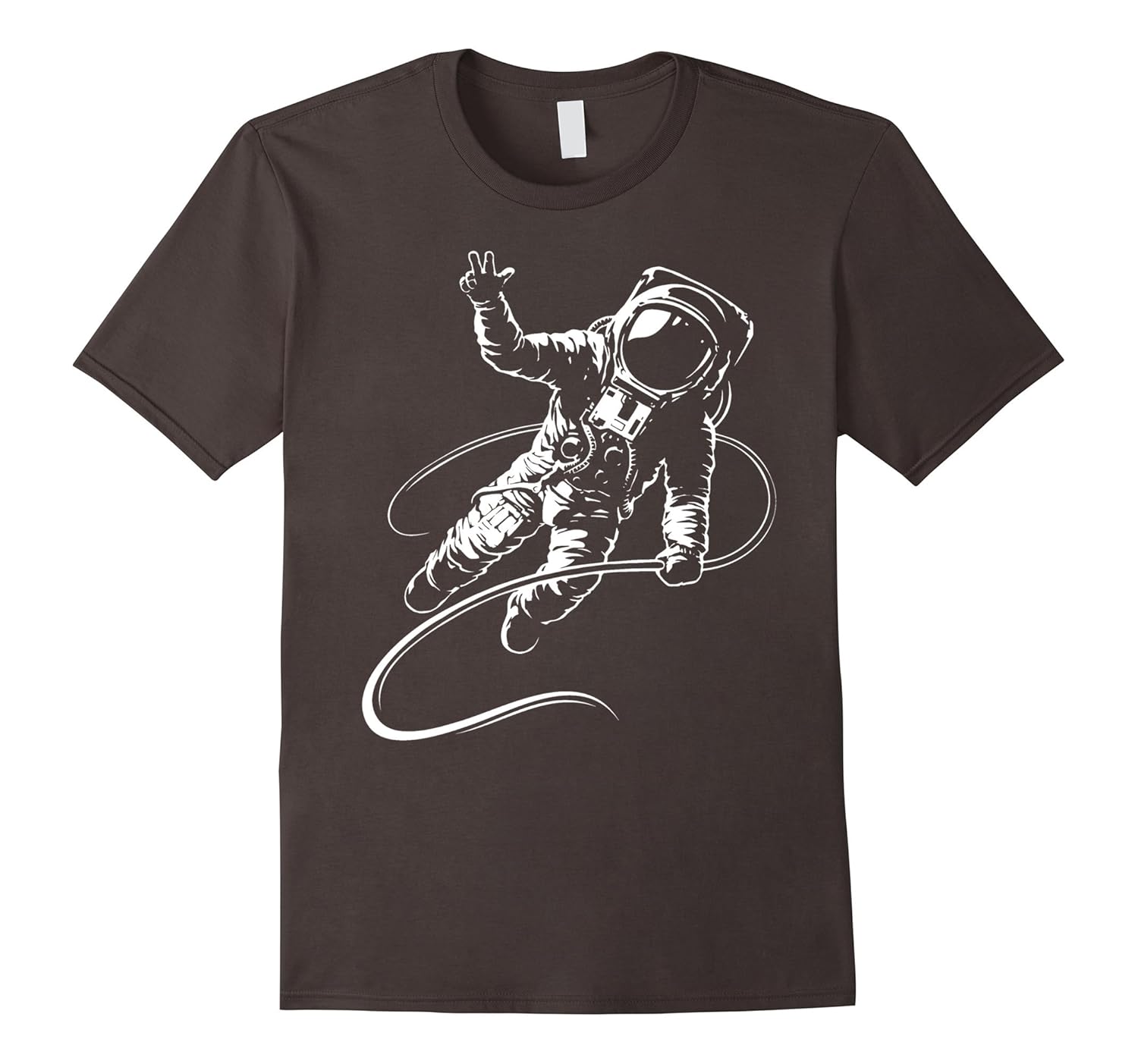 Solid colors: 100% Cotton; Heather Grey: 90% Cotton, 10% Polyester; All Other Heathers: 65% Cotton, 35% Polyester, Imported, Machine wash cold with like colors, dry low heat, Perfect for science geeks, travelers, astronauts, voyagers, explorers, science teachers, etc. Features an astronaut throwing up the peace sign traveling through space. Great gift for Men, Women, Kids/ Children, friends, family. Asteroid, Arora, Big Bang, Black Hole, Universe, Celestial, Comet, Jupiter, Pluto, Solar System, Sun. Custom printed merchandise graphic tee. For a looser fit, please order a size up. Great for Birthdays and Christmas!, Lightweight, Classic fit, Double-needle sleeve and bottom hem
