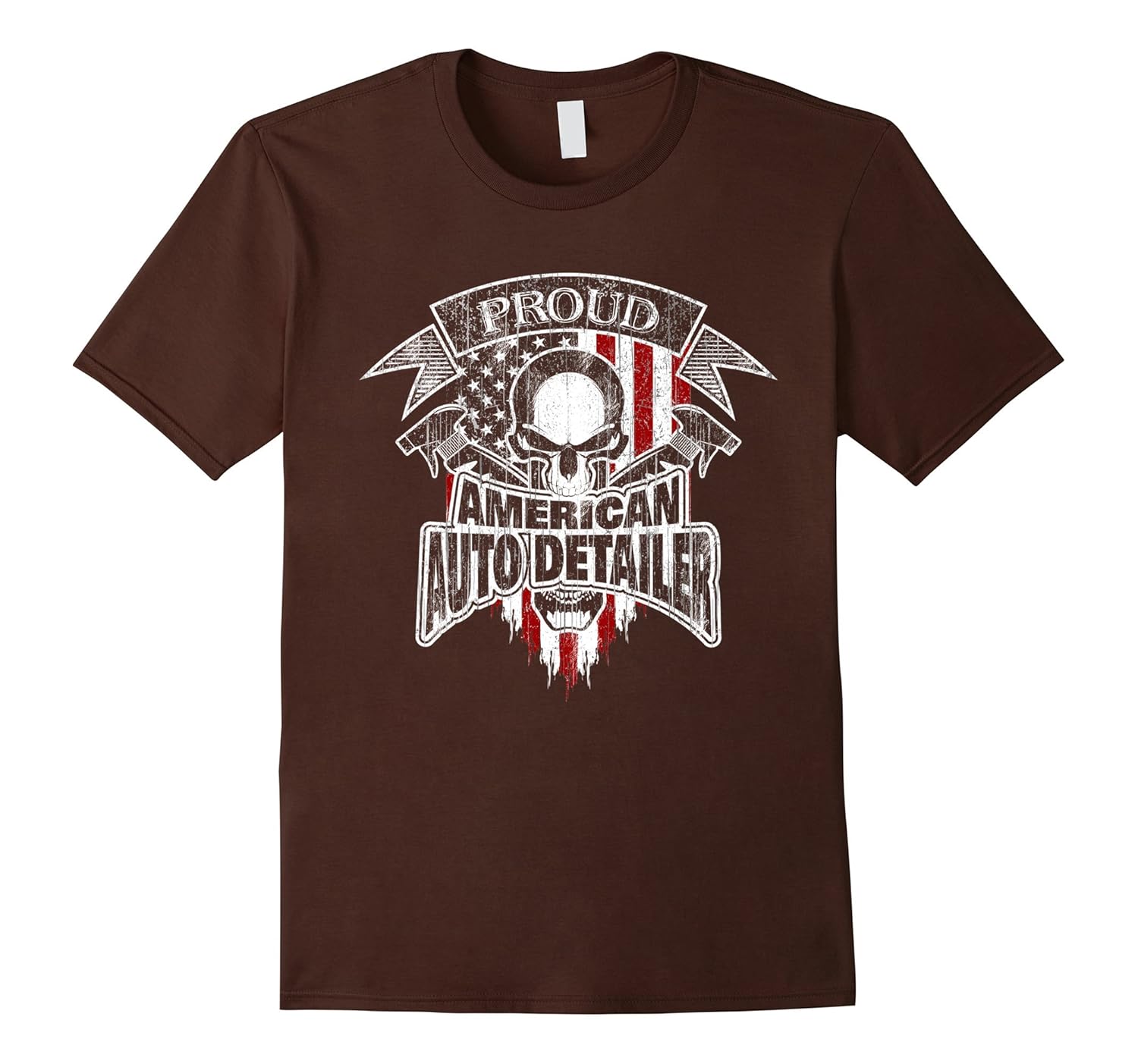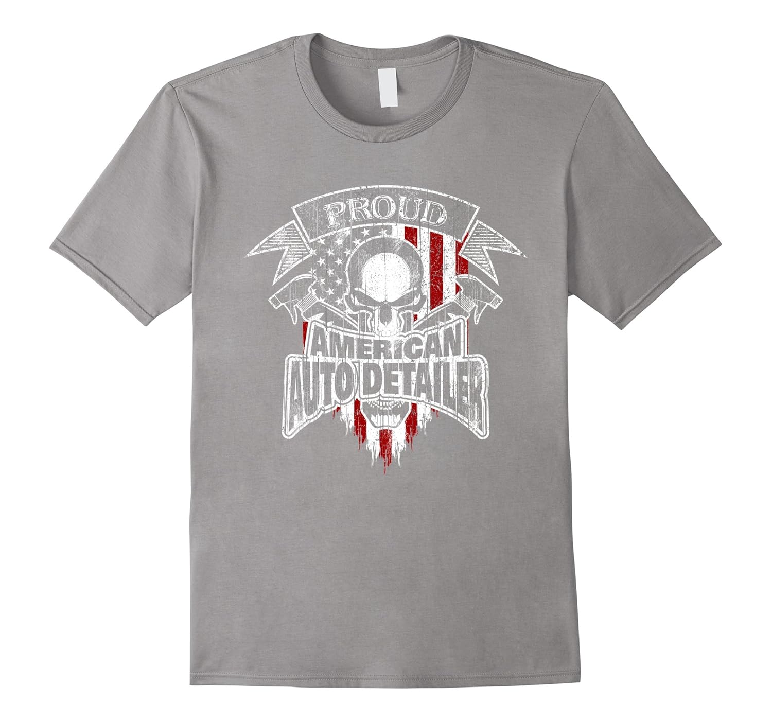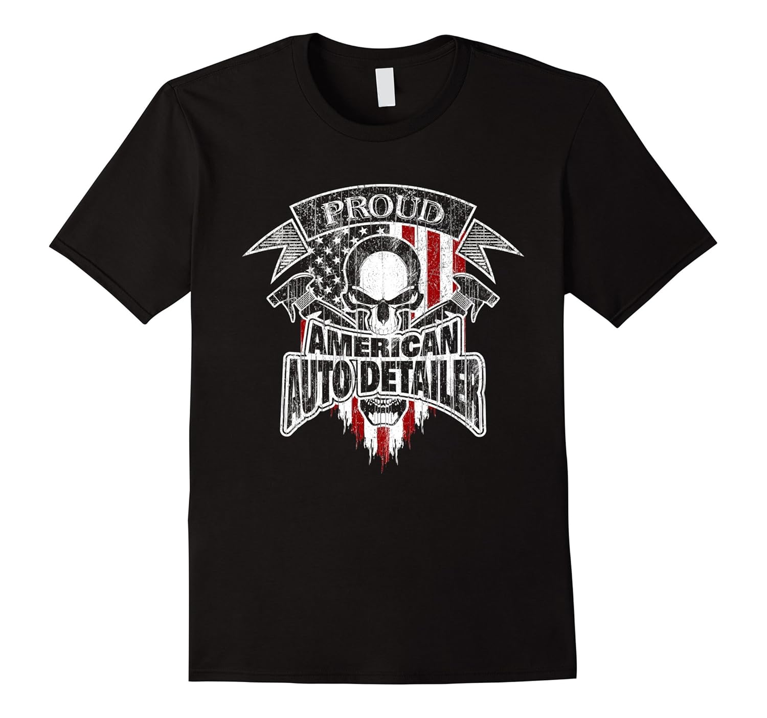100% Cotton; Imported; Machine wash cold with like colors, dry low heat; Auto detailing design for the auto detailer who loves what they do, America and skulls.; Lightweight, Classic fit, Double-needle sleeve and bottom hem