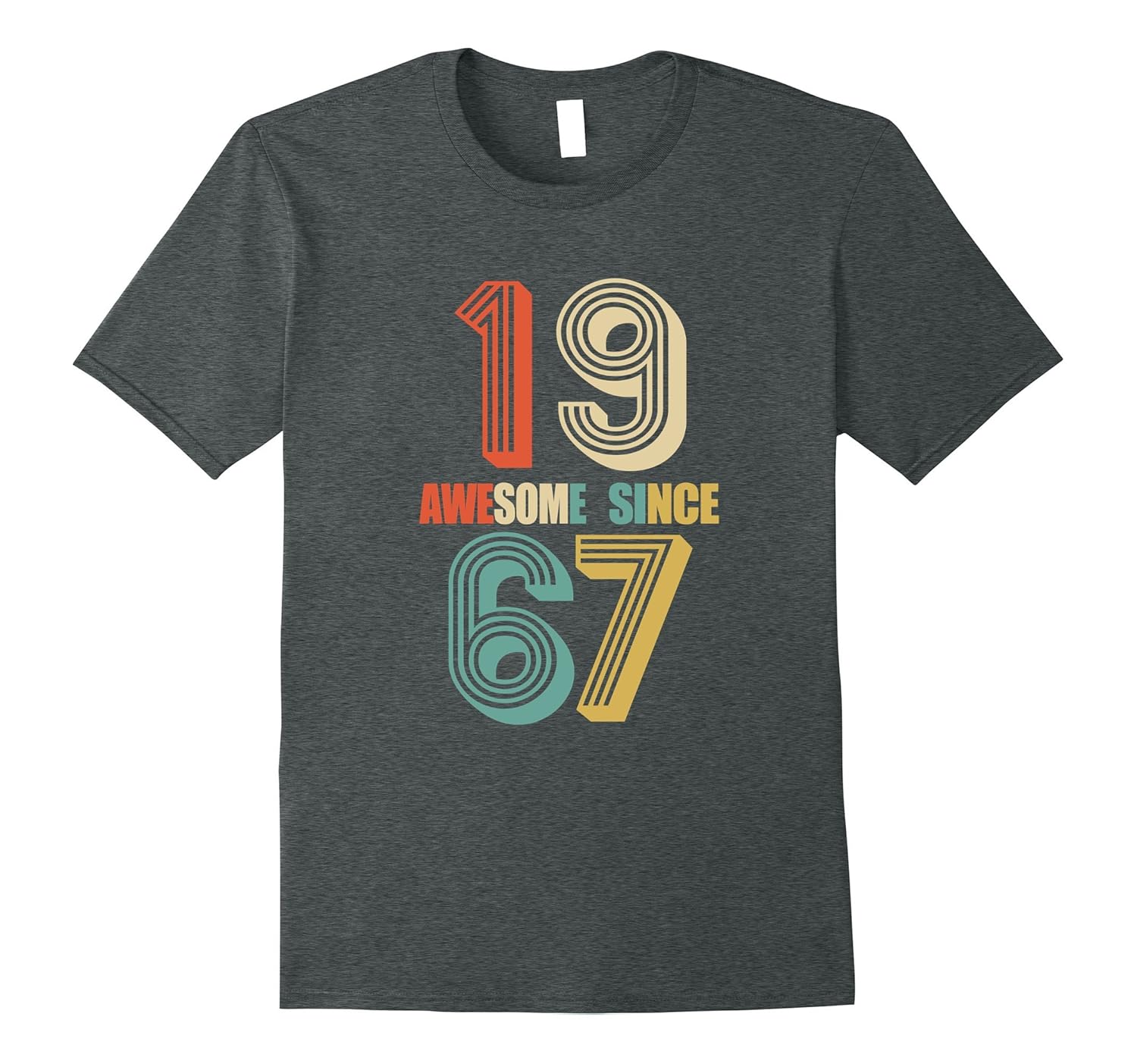 Solid colors: 100% Cotton; Heather Grey: 90% Cotton, 10% Polyester; All Other Heathers: 65% Cotton, 35% Polyester, Imported, Machine wash cold with like colors, dry low heat, Perfect Birthday Gift for people who are born in 1967. Retro Pop effect Graphic Tee Shirt Aged 50 year old bday. Surprise your family and friends with this awesome shirt, Vintage imprints that looks great in five amazing color of your choices and also available different sizes for men women, him her mom dad, ladies girls boys teens, grandma and grandpa. Lightweight, Classic fit, Double-needle sleeve and bottom hem