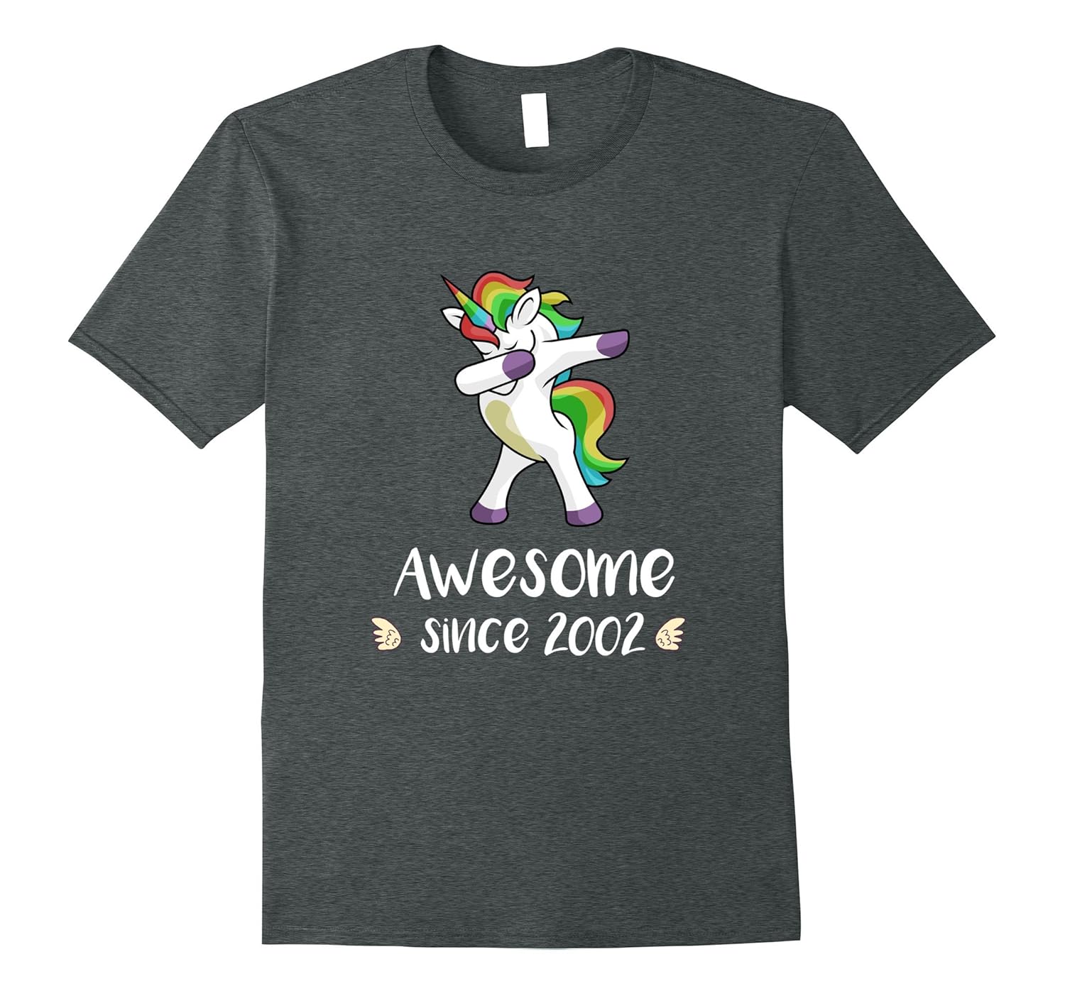 Solid colors: 100% Cotton; Heather Grey: 90% Cotton, 10% Polyester; All Other Heathers: 65% Cotton, 35% Polyester, Imported, Machine wash cold with like colors, dry low heat, Perfect Birthday Gift for people who are born in 2002 and loves Dab Dance Pose. Dabbing Unicorn Graphic Tee Shirt Aged 15 years old bday. Unicorn imprints that looks great in three amazing color of your choices and also available different sizes for men women, him her mom dad, ladies girls boys teens, grandma and grandpa. Lightweight, Classic fit, Double-needle sleeve and bottom hem