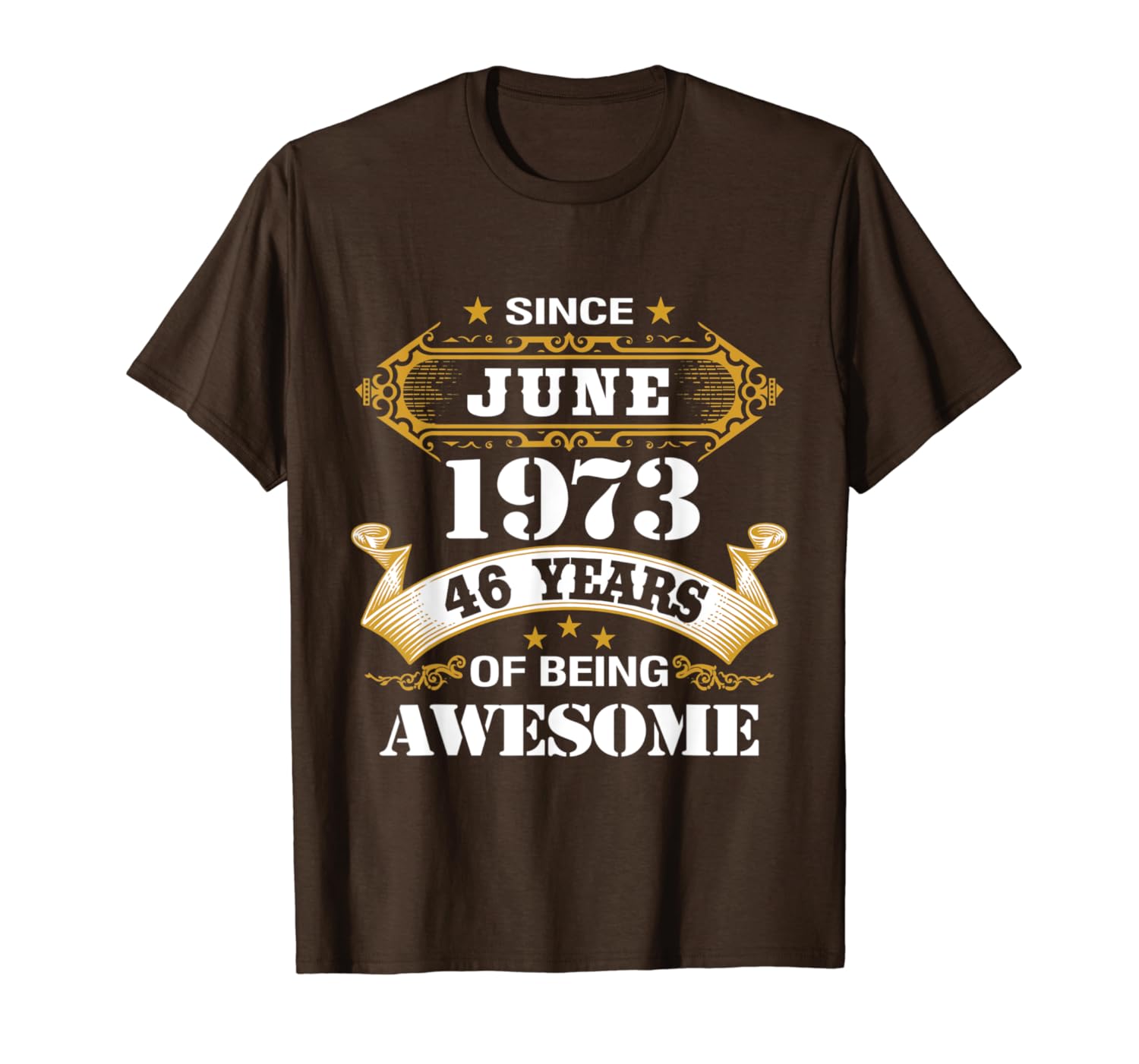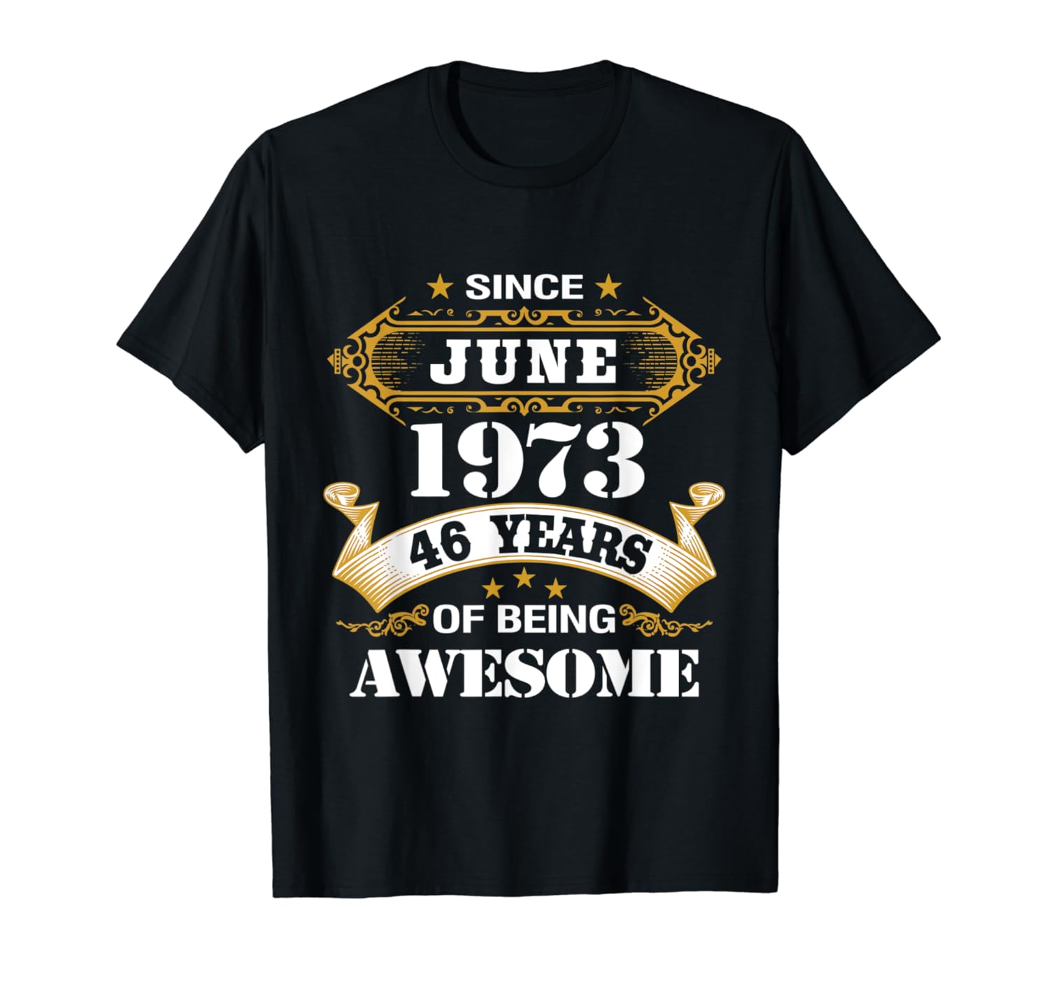 Solid colors: 100% Cotton; Heather Grey: 90% Cotton, 10% Polyester; All Other Heathers: 50% Cotton, 50% Polyester; Imported; Machine wash cold with like colors, dry low heat; This Since June 1973 46 Years Old of Being Awesome T-Shirt is Perfect Gift for Men Women, Family, Papa, Mama. Mom, Dad, Grandma, Grandpa, Uncle, Friends, Brother, Husband on Birthday party, Mothers Day and Fathers Day.; 46th Birthday gifts for men women, Great birthday gift ideas for Mother And Father, June Birthday Gift for boys girls, Legendary Since June 1973 shirt, June 1973 Kings Queens Birthday Gift Ideas.; Lightweight, Classic fit, Double-needle sleeve and bottom hem