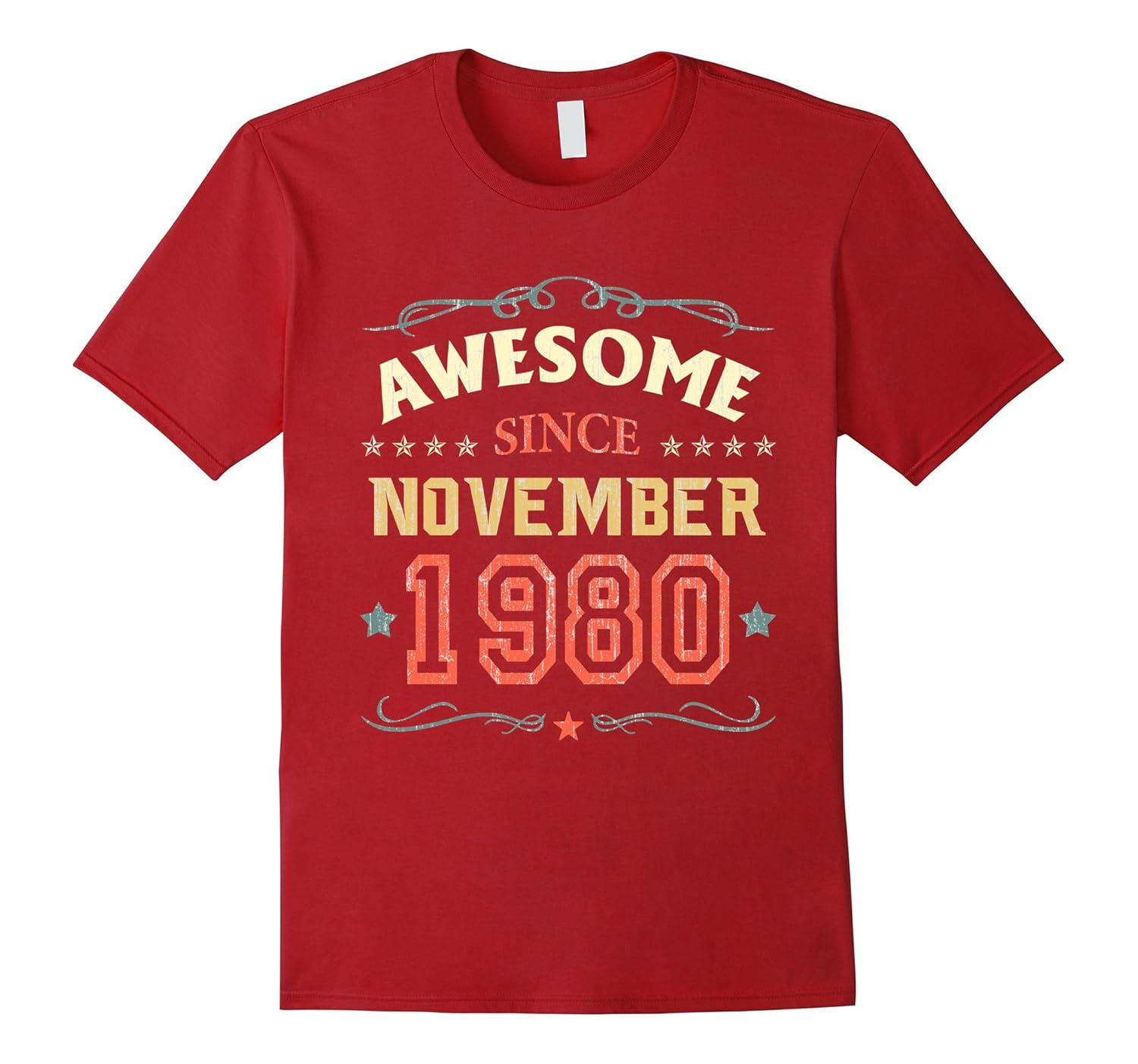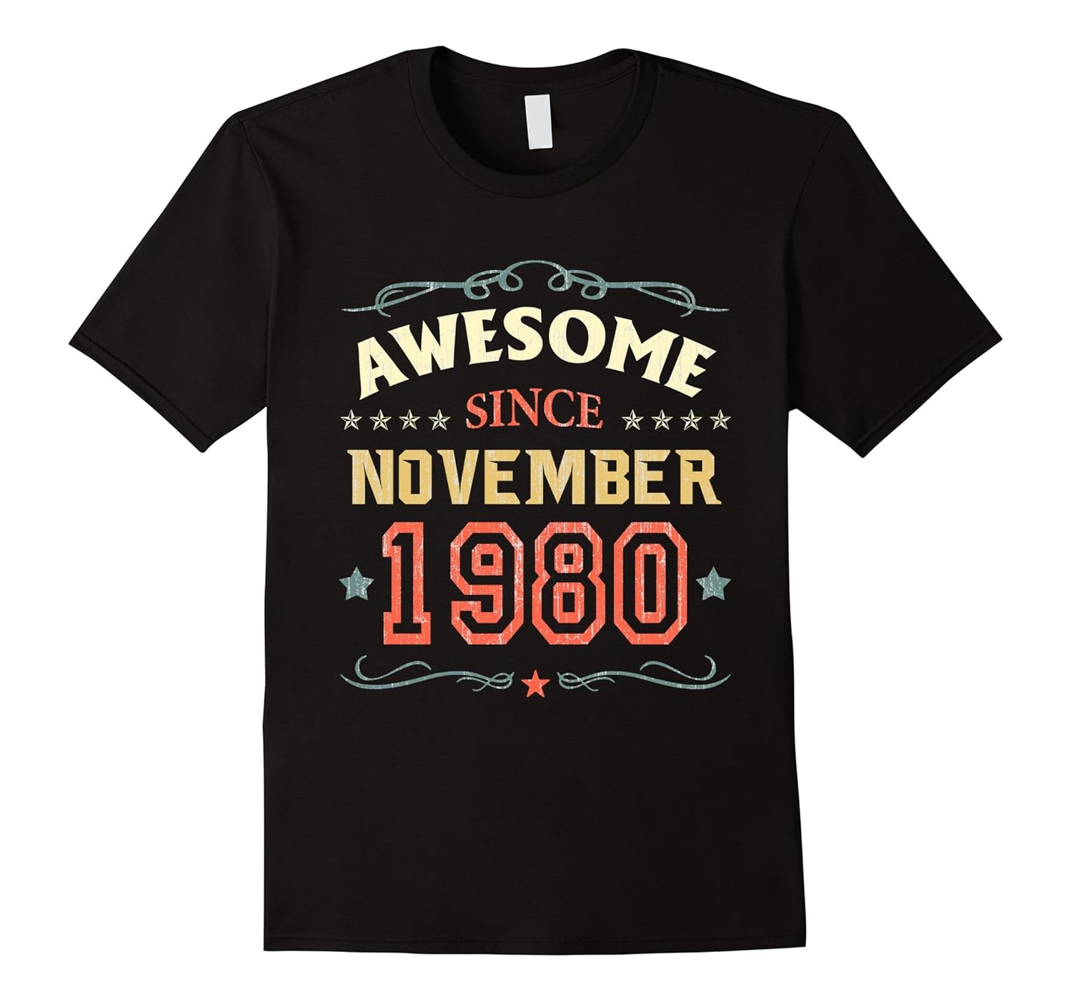 Solid colors: 100% Cotton; Heather Grey: 90% Cotton, 10% Polyester; All Other Heathers: 65% Cotton, 35% Polyester, Imported, Machine wash cold with like colors, dry low heat, A great gift idea for a lucky person born in 1980. Awesome since November 1980, Perfect 37th Birthday Gift.Popular gift items you”ve been seeking for mom, dad, grandma, grandpa, aunt, uncle, cousin, family and friends. Awesome Since November 1980 birthday shirt, funny birthday gift, awesome birthday gift, best birthday gift, birthday gifts, funny birthday shirts, funny gifts for birthday. Special and awesome birthday gift and present for people who are born in 1980, Lightweight, Classic fit, Double-needle sleeve and bottom hem