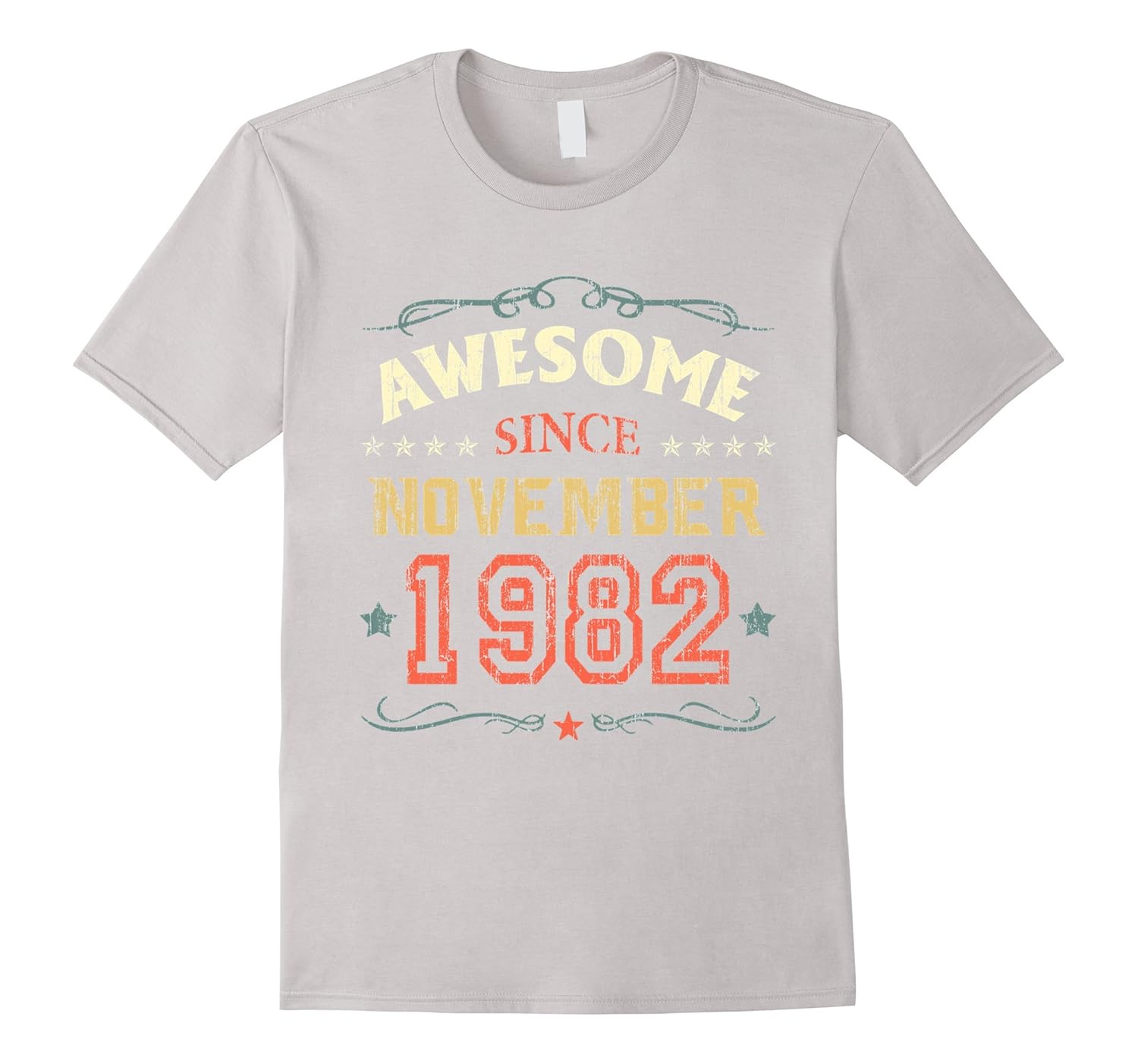 Solid colors: 100% Cotton; Heather Grey: 90% Cotton, 10% Polyester; All Other Heathers: 65% Cotton, 35% Polyester, Imported, Machine wash cold with like colors, dry low heat, A great gift idea for a lucky person born in 1982. Awesome since November 1982, Perfect 35th Birthday Gift.Popular gift items you”ve been seeking for mom, dad, grandma, grandpa, aunt, uncle, cousin, family and friends. Awesome Since November 1982 birthday shirt, funny birthday gift, awesome birthday gift, best birthday gift, birthday gifts, funny birthday shirts, funny gifts for birthday. Special and awesome birthday gift and present for people who are born in 1982, Lightweight, Classic fit, Double-needle sleeve and bottom hem