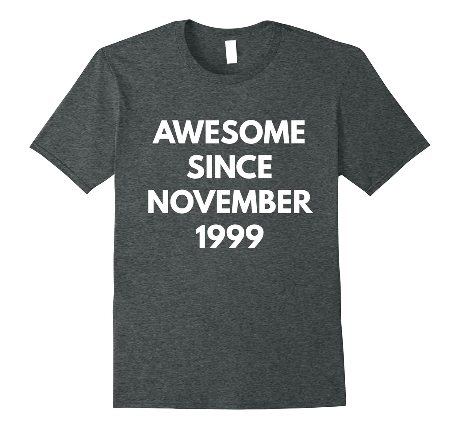 Solid colors: 100% Cotton; Heather Grey: 90% Cotton, 10% Polyester; All Other Heathers: 65% Cotton, 35% Polyester, Imported, Machine wash cold with like colors, dry low heat, Were you born in November 1999. This is the perfect shirt for you. Awesome Since November 1999 t-shirt sizes runs small. We recommend ordering a size up. Please see the sizing chart image for more details. Lightweight, Classic fit, Double-needle sleeve and bottom hem