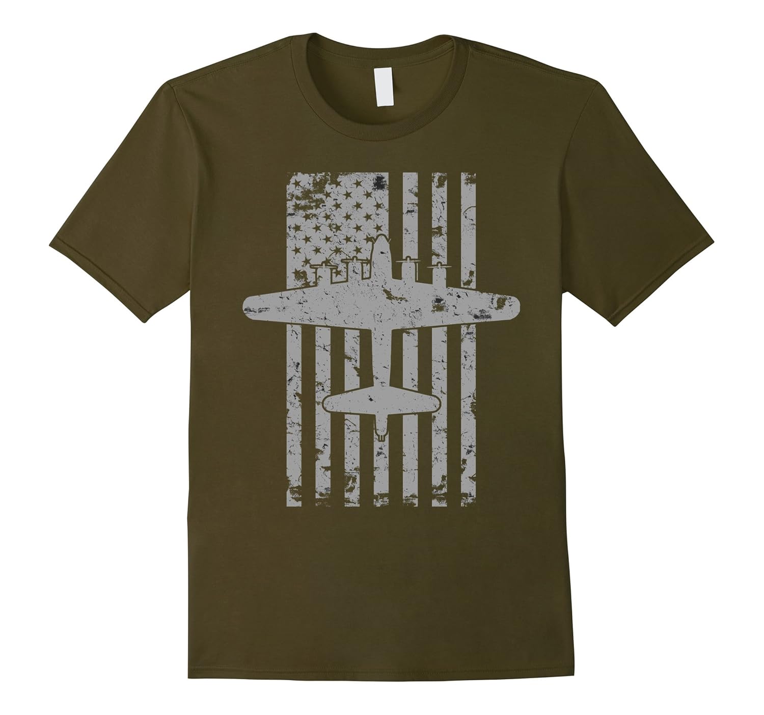 Solid colors: 100% Cotton; Heather Grey: 90% Cotton, 10% Polyester; All Other Heathers: 65% Cotton, 35% Polyester, Imported, Machine wash cold with like colors, dry low heat, Graphic tee featuring a distressed, vintage style American flag and a B-17 Flying Fortress bomber airplane of the World War 2 era. A great aviation themed patriotic tee shirt for anyone who loves old warbirds. WW2 history buffs and vintage aircraft lovers. Makes a great gift for fellow avgeeks, pilots, aviation enthusiasts, aviators, airplane mechanics, Aand;P mechs, military and commercial flightcrew, air freight dogs, airplane spotters and anyone else with a passion for aviation. It”s even patriotic!, Lightweight, Classic fit, Double-needle sleeve and bottom hem