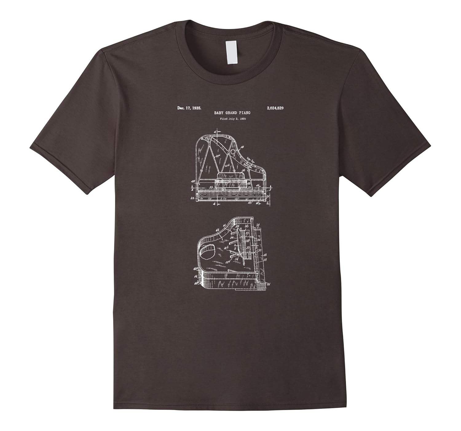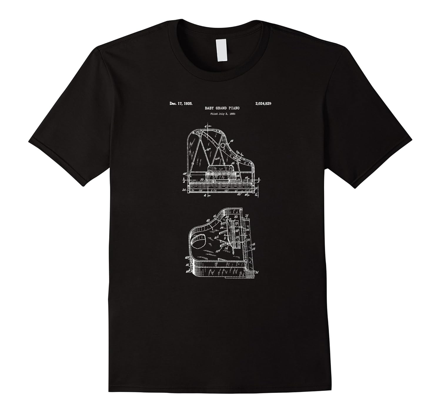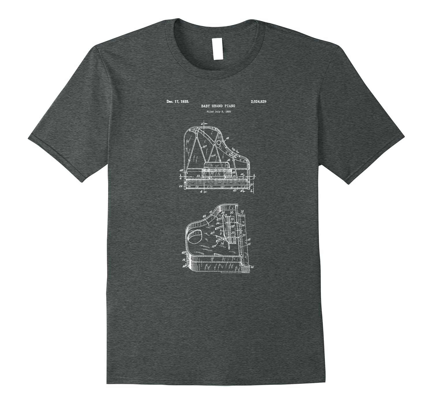 Solid colors: 100% Cotton; Heather Grey: 90% Cotton, 10% Polyester; All Other Heathers: 65% Cotton, 35% Polyester, Imported, Machine wash cold with like colors, dry low heat, Awesome shirt that features a vintage retro blueprint drawing of a Baby Grand Piano. If you are a Pianist or love playing the piano, keyboard, or love classical music, this tee is for you! Great gift idea for musicians, music lovers, singers, and pianists!, Lightweight, Classic fit, Double-needle sleeve and bottom hem