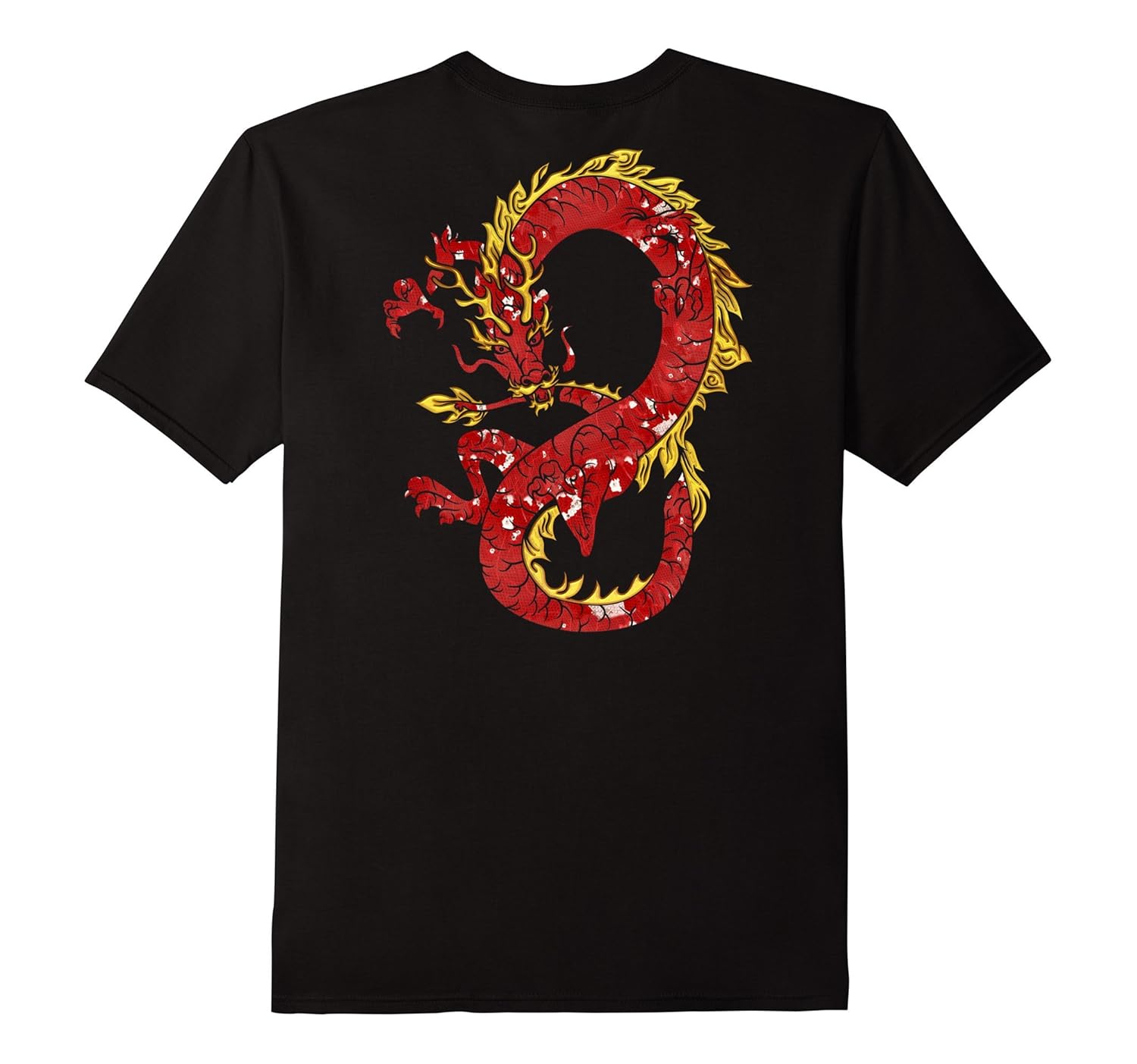 Back – Asian Japanese Chinese Dragon In Red And Gold T-shirt-ANZ