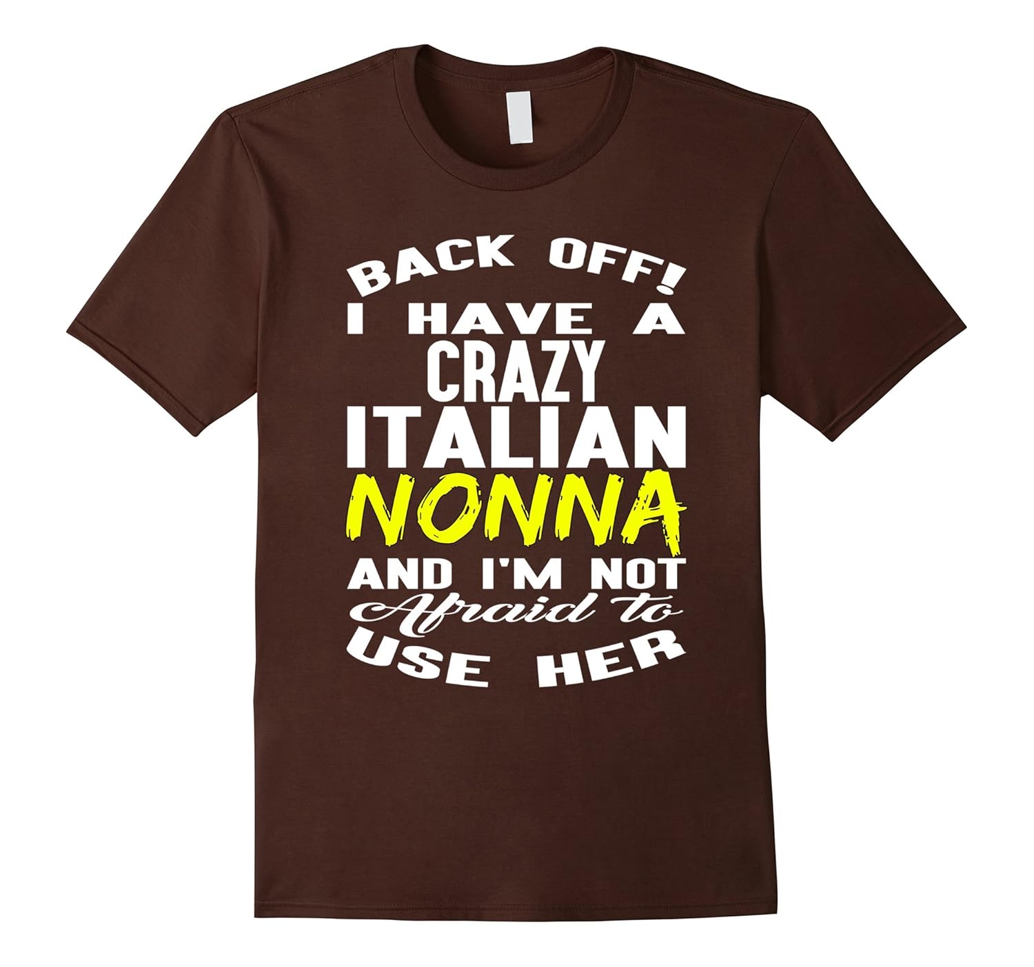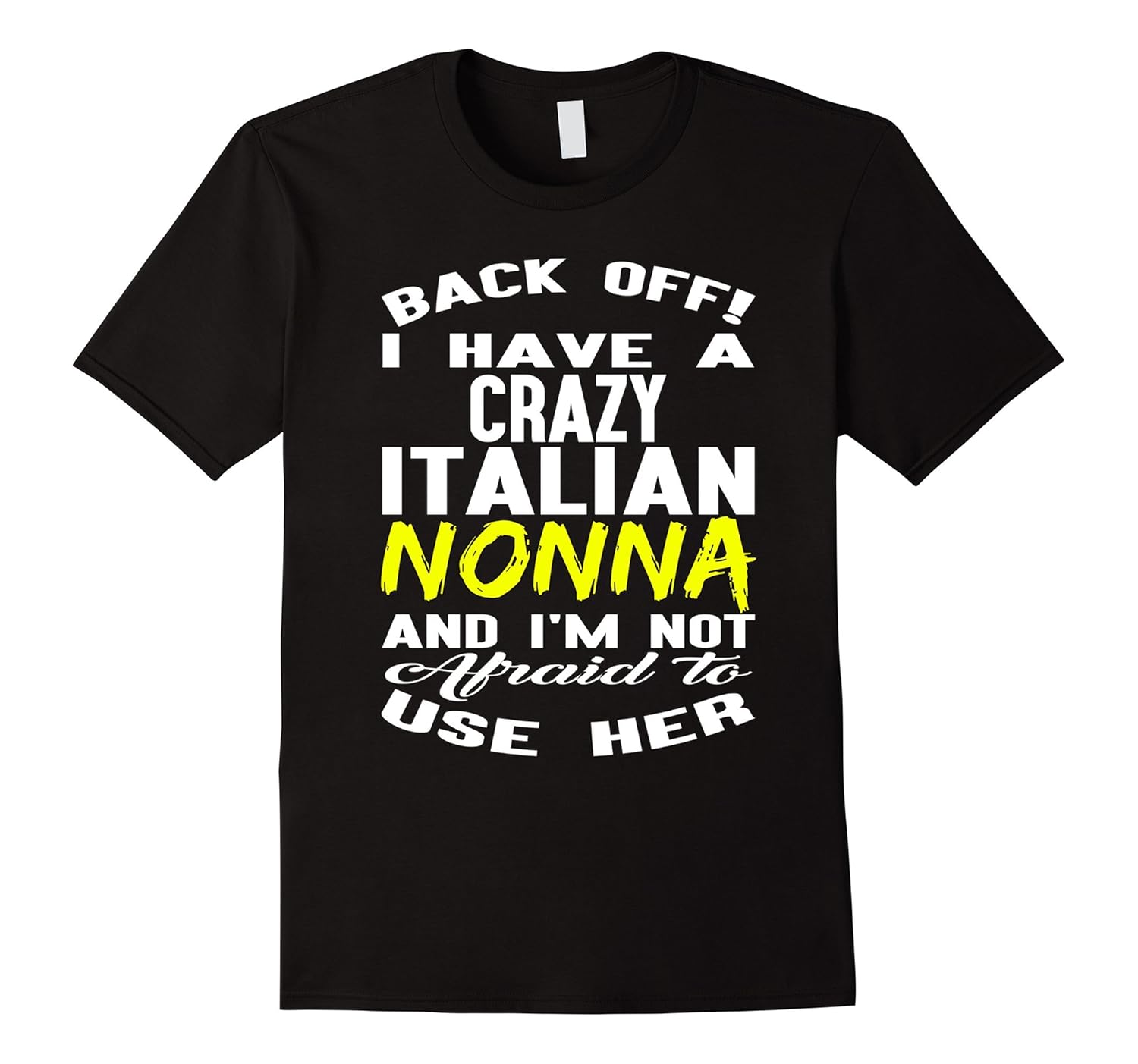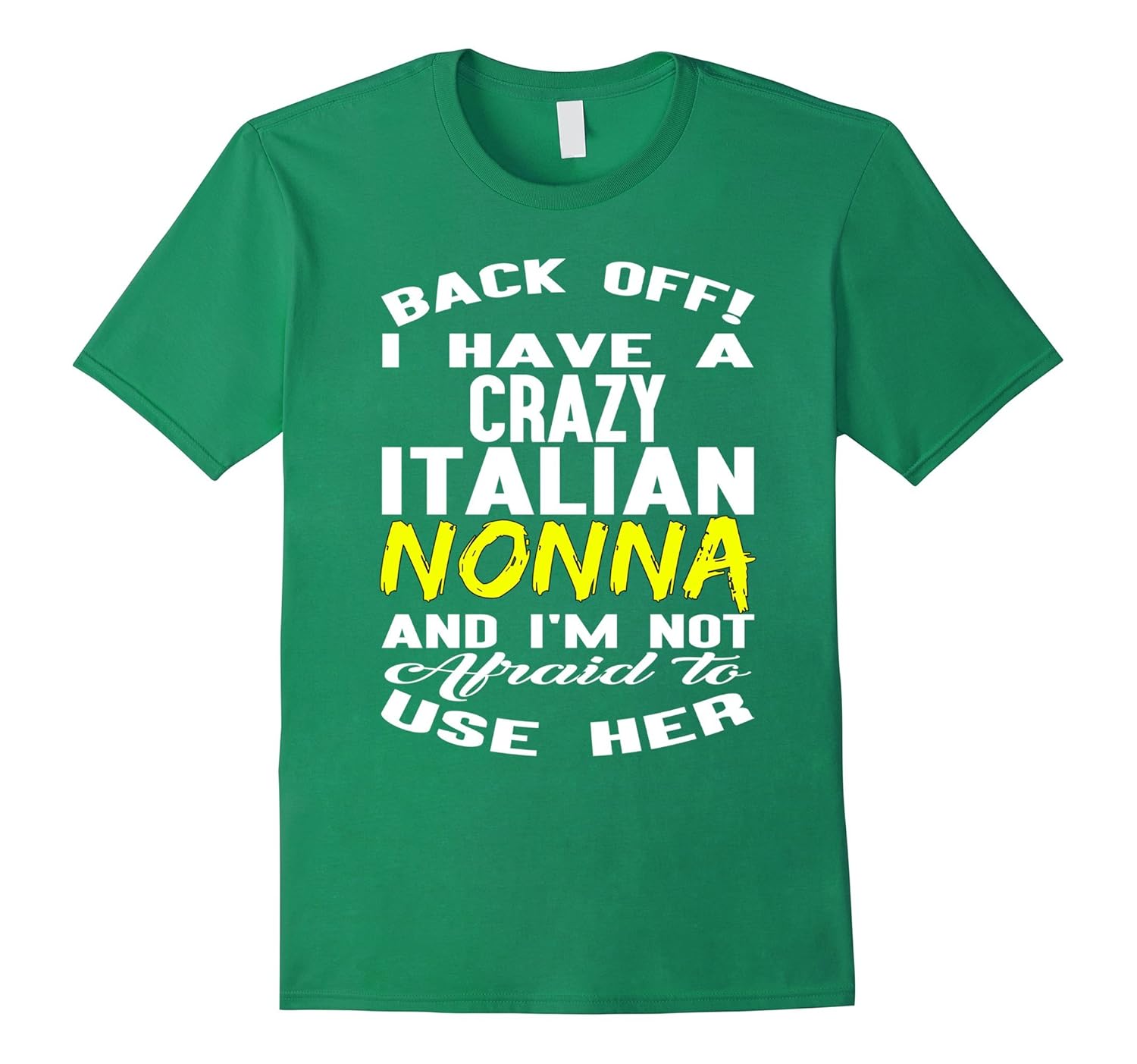 Solid colors: 100% Cotton; Heather Grey: 90% Cotton, 10% Polyester; All Other Heathers: 65% Cotton, 35% Polyester, Imported, Machine wash cold with like colors, dry low heat, Back off I have a crazy Italian nonna I”m not afraid to use her T-shirt, Lightweight, Classic fit, Double-needle sleeve and bottom hem