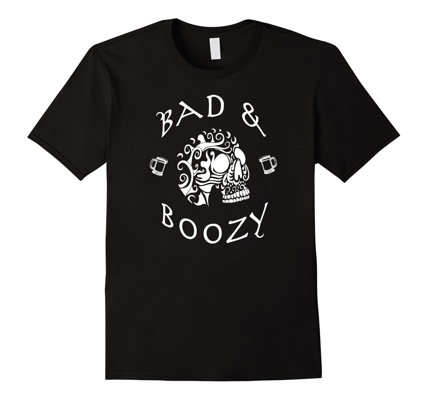 Solid colors: 100% Cotton; Heather Grey: 90% Cotton, 10% Polyester; All Other Heathers: 65% Cotton, 35% Polyester, Imported, Machine wash cold with like colors, dry low heat, Bad and; Boozy Skull T Shirt makes a perfect gift for the beer drinker of the year. Humor t shirt for a party. Lightweight, Classic fit, Double-needle sleeve and bottom hem